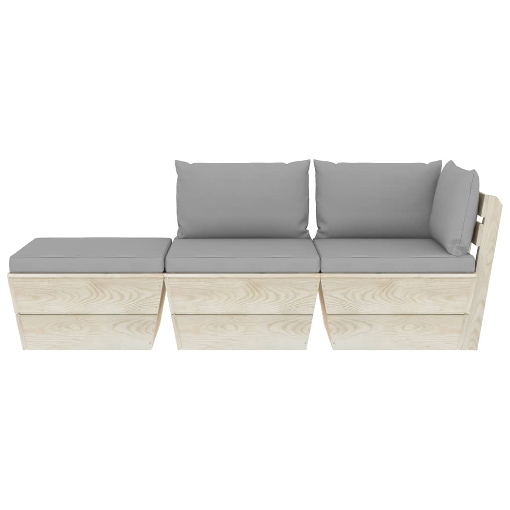 Zestaw wykonano z impregnowanego drewna świerkowego, dzięki czemu jest trwały i stabilny. Ma solidną konstrukcję, która nie wymaga zbyt wielu czynności konserwacyjnych. Za sprawą pokrowca ze 100% poliestru i grubego wyściełania poduszki na palety są miękkie i zapewniają wyjątkowy komfort. Ponadto modułowa forma umożliwia ustawienie zestawu w dowolnej aranżacji, zgodnie z własnym gustem.