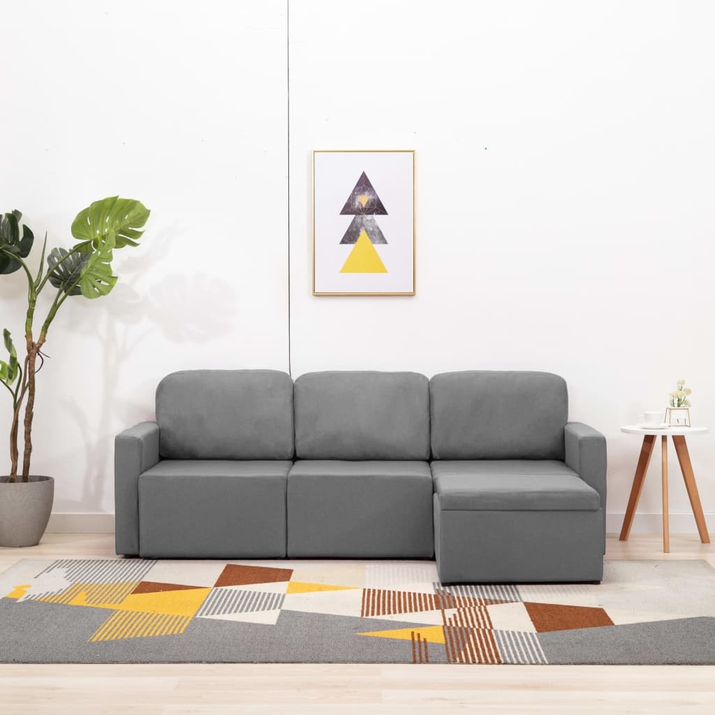 Uniwersalna sofa ma modułową konstrukcję. Możesz z łatwością łączyć sekcje modułowe w różnych konfiguracjach i zamieniać ją w kanapę, łóżko, szezlong, pojedyncze fotele lub pufy - cokolwiek chcesz! Sofa tapicerowana miękką w dotyku tkaniną z grubym wypełnieniem jest wyjątkowo wygodna i łatwa w utrzymaniu. Trzy poduszki stanowią dekoracyjny dodatek, zapewniając jednocześnie dodatkowe wsparcie.