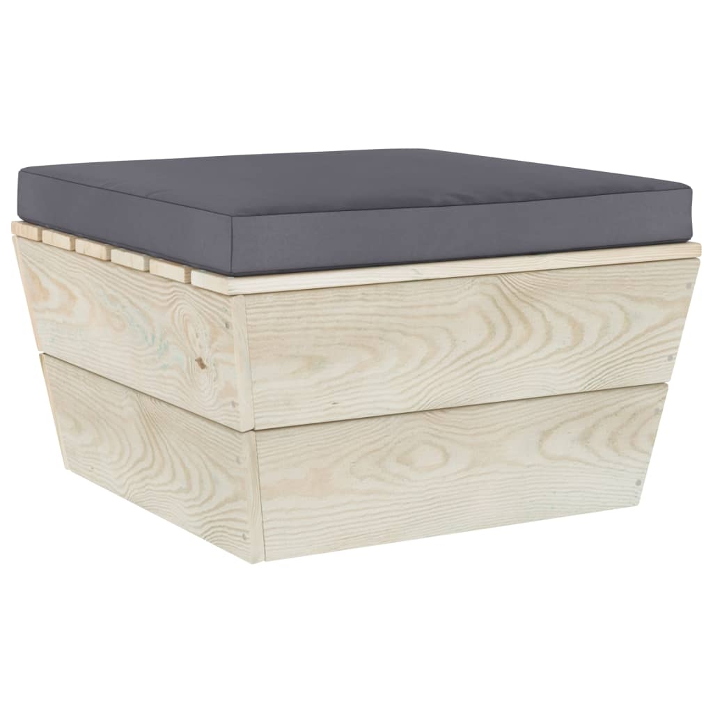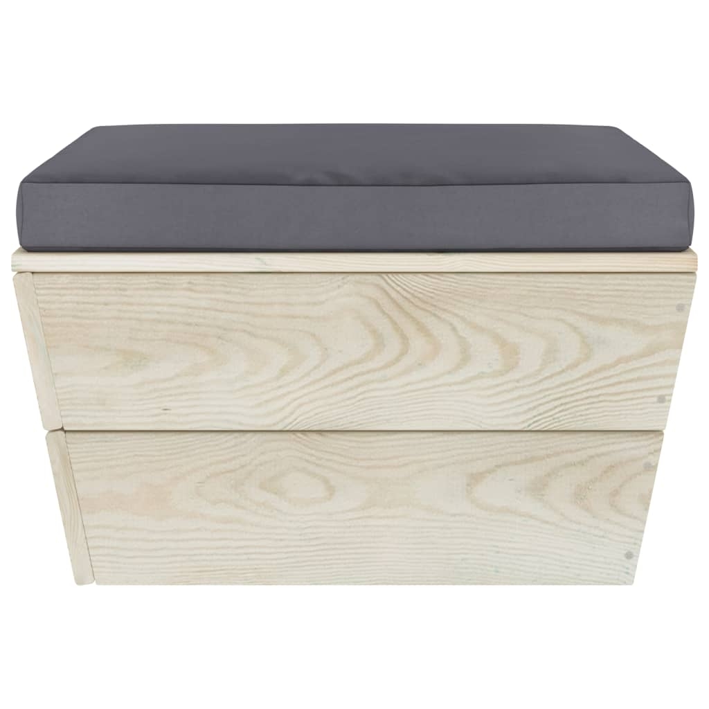 Zestaw mebli ogrodowych wykonano z impregnowanego drewna świerkowego, dzięki czemu jest trwały i stabilny. Charakteryzuje się on solidną konstrukcją i małymi wymaganiami związanymi z konserwacją. Stół z mocnym blatem sprawdzi się idealnie, aby postawić jedzenie i napoje w zasięgu ręki. Dzięki grubemu wypełnieniu i poszewkom ze 100% poliestru poduszki na palety są miękkie i zapewniają wyjątkowy komfort. Co więcej modułowa konstrukcja mebli pozwala na ustawienie ich w dowolnej aranżacji, zgodnie z własnym gustem.