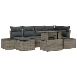 Ten zestaw sofy ogrodowej składający się z 7 elementów to świetne połączenie stylu i praktyczności, idealny do relaksu i towarzystwa na zewnątrz. Z nowoczesnym designem w szarym kolorze rattan oraz wygodnymi poduszkami, nie tylko ładnie wygląda na Twoim patio czy balkonie, ale także zapewnia komfort w długie letnie wieczory z przyjaciółmi i rodziną.