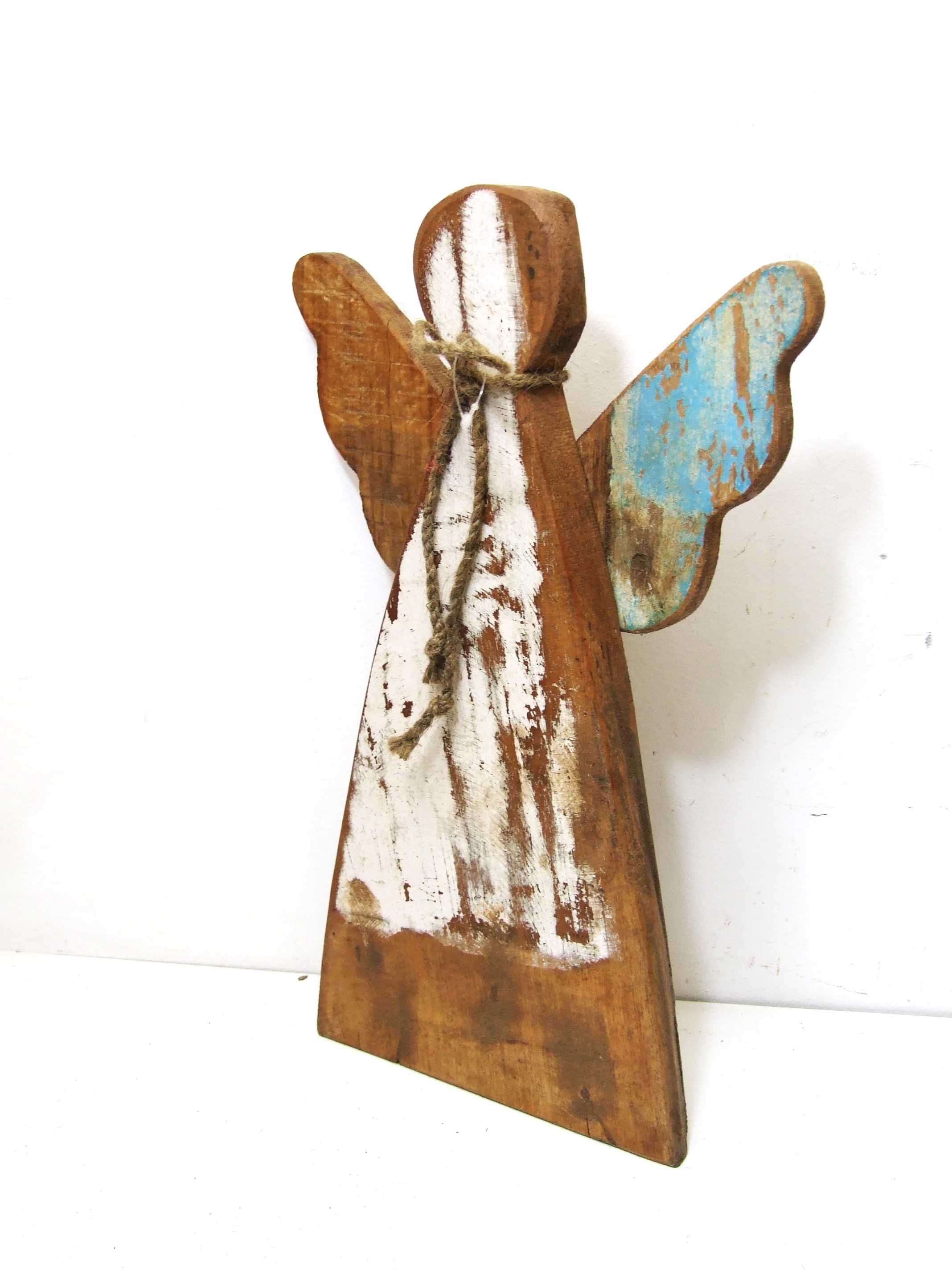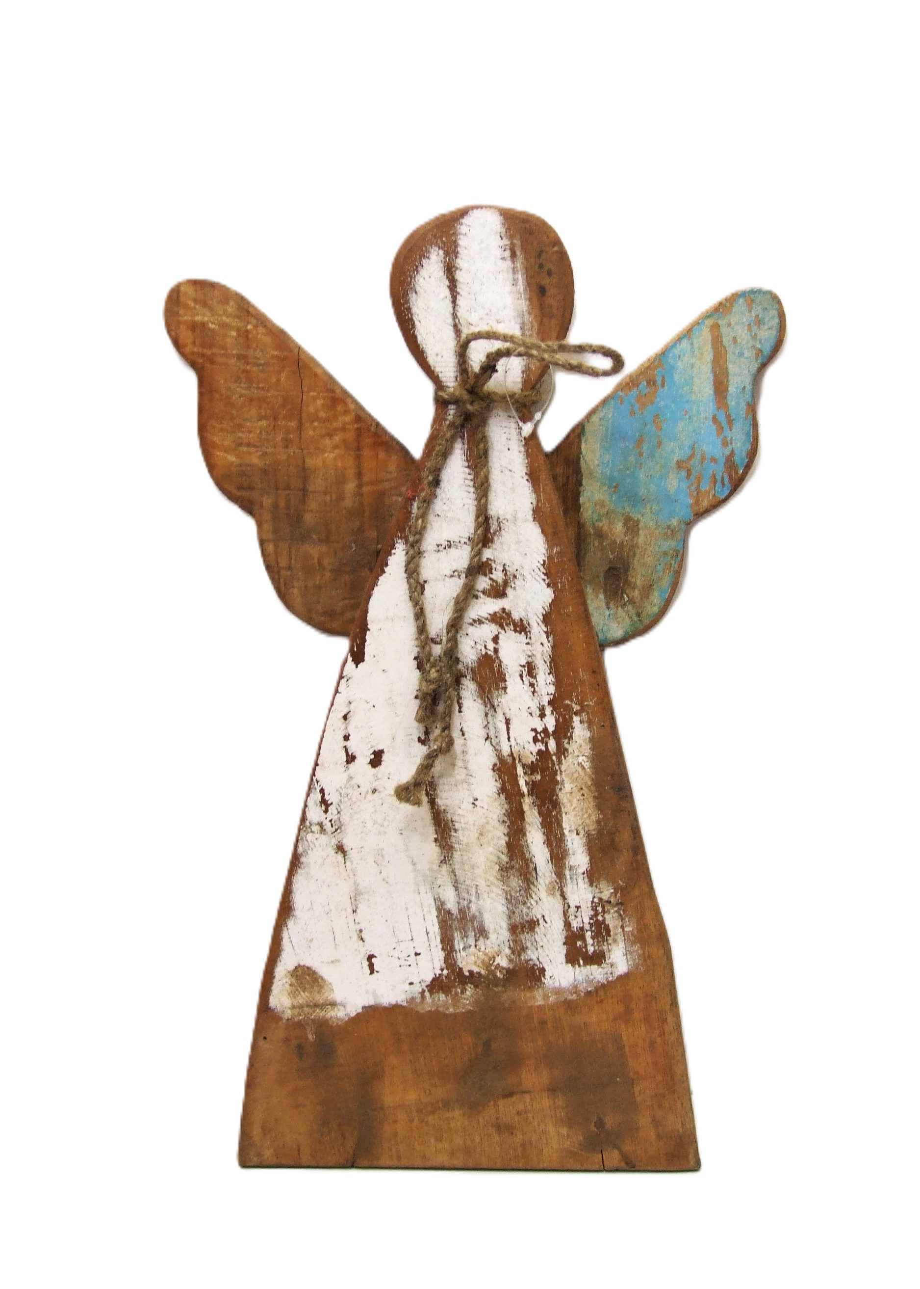 Anioł ręcznie wykonany ze starego kawałka drewna. Taka dekoracja z duszą.