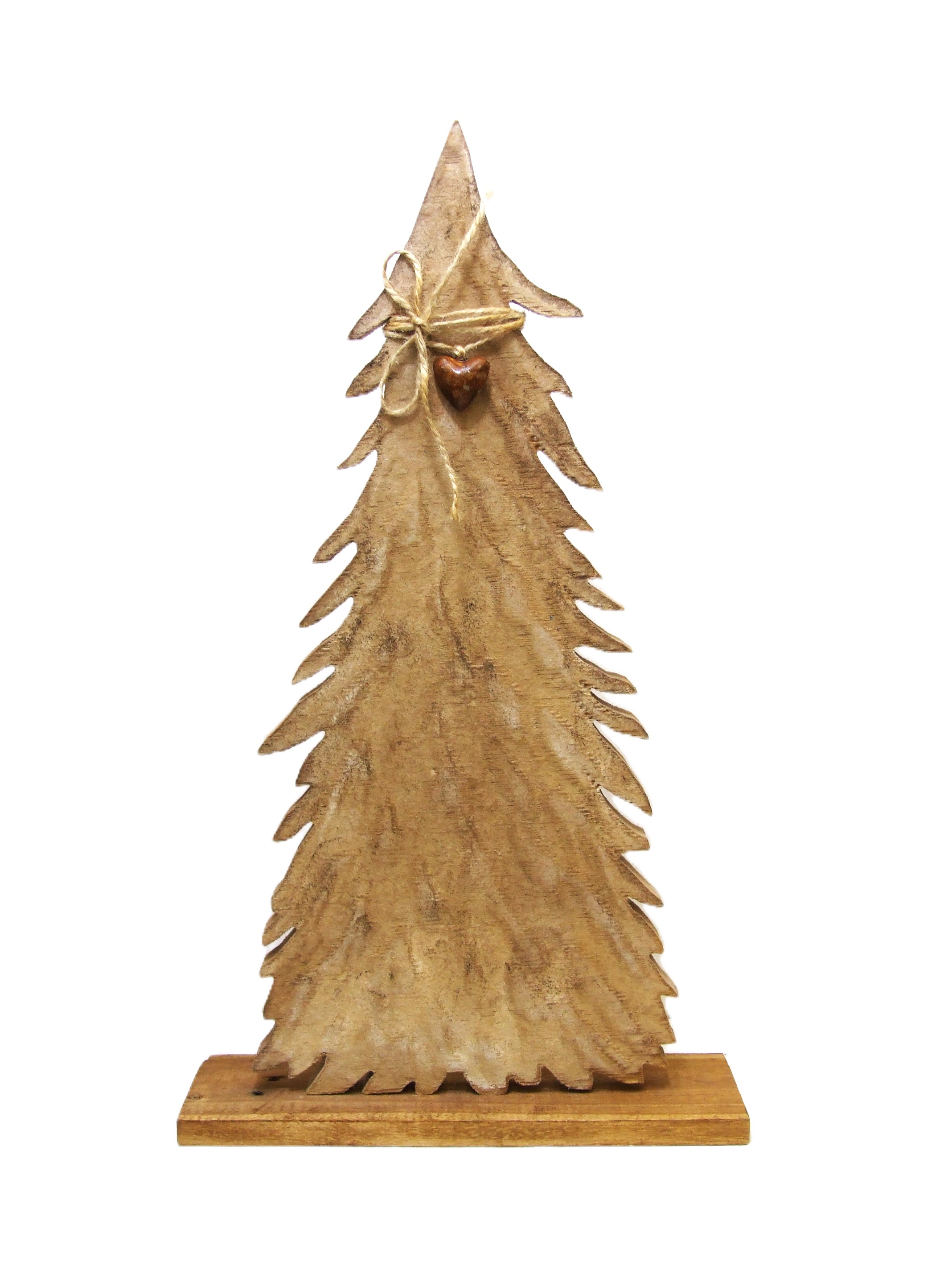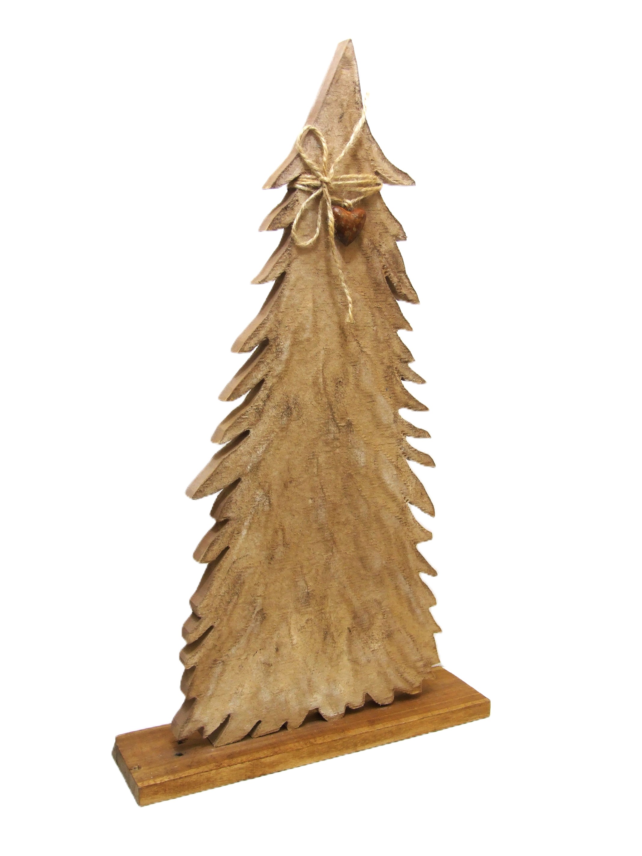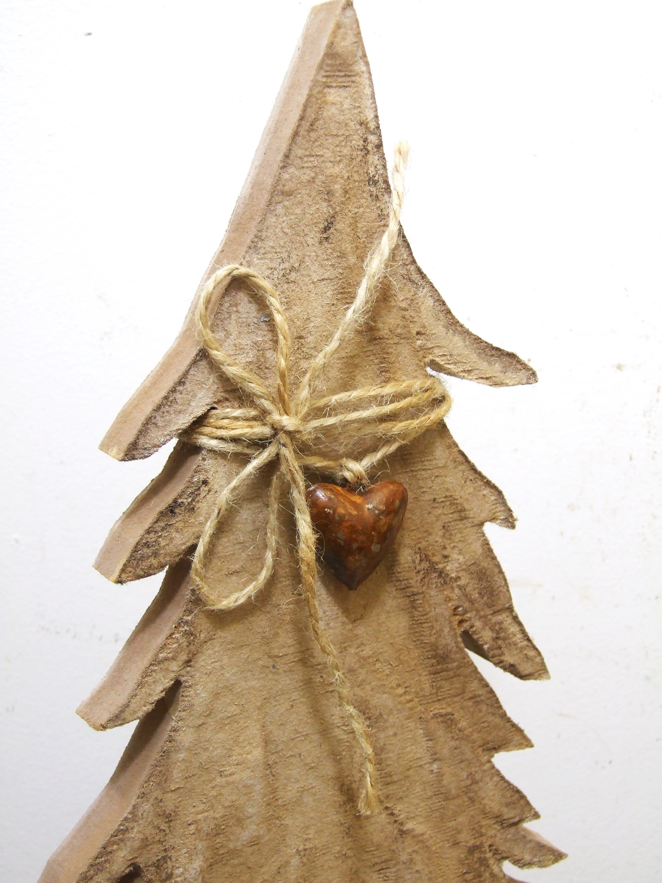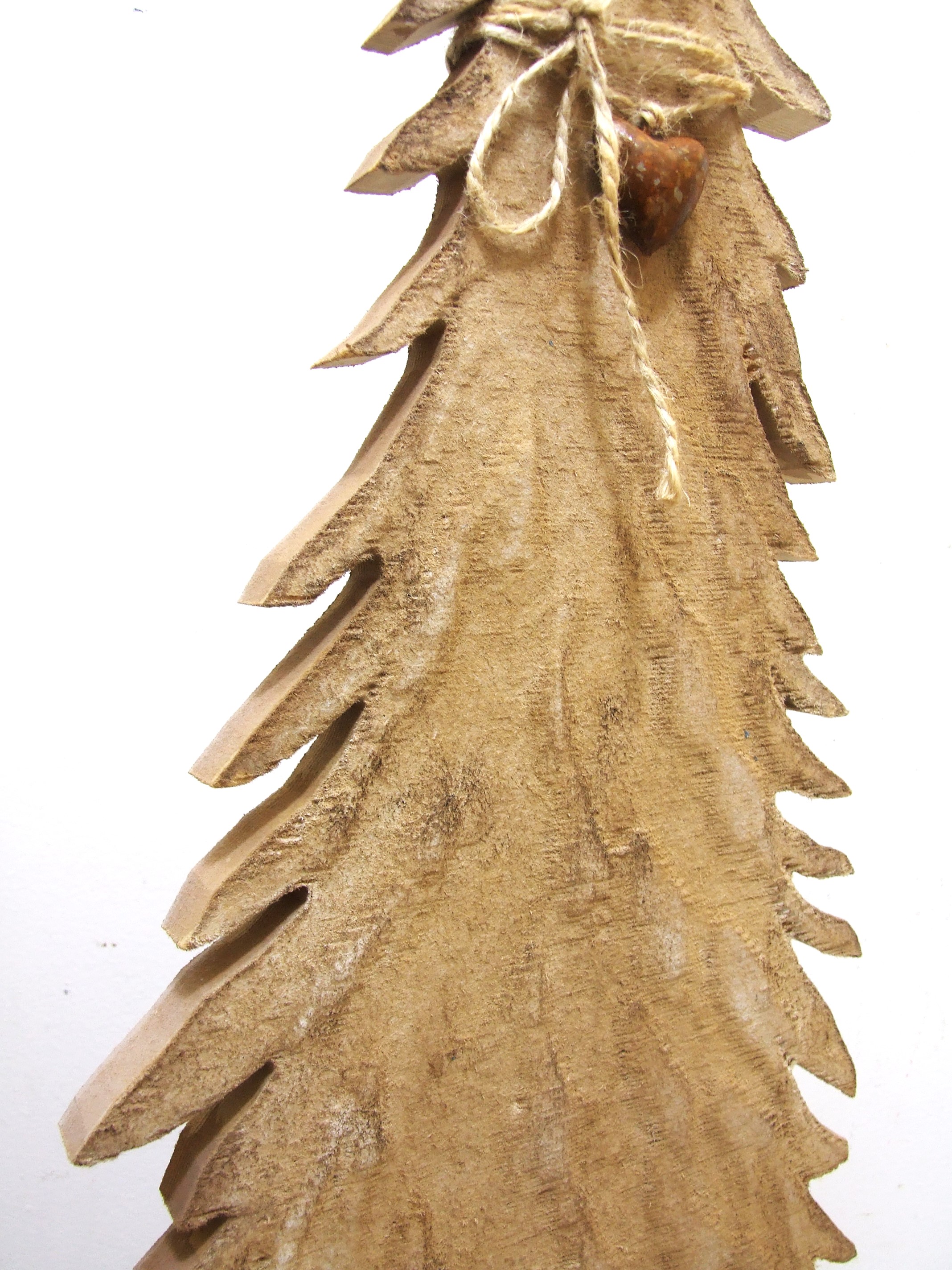 Dekoracyjna choinka z drewna w kolorze jasnym brązowym.