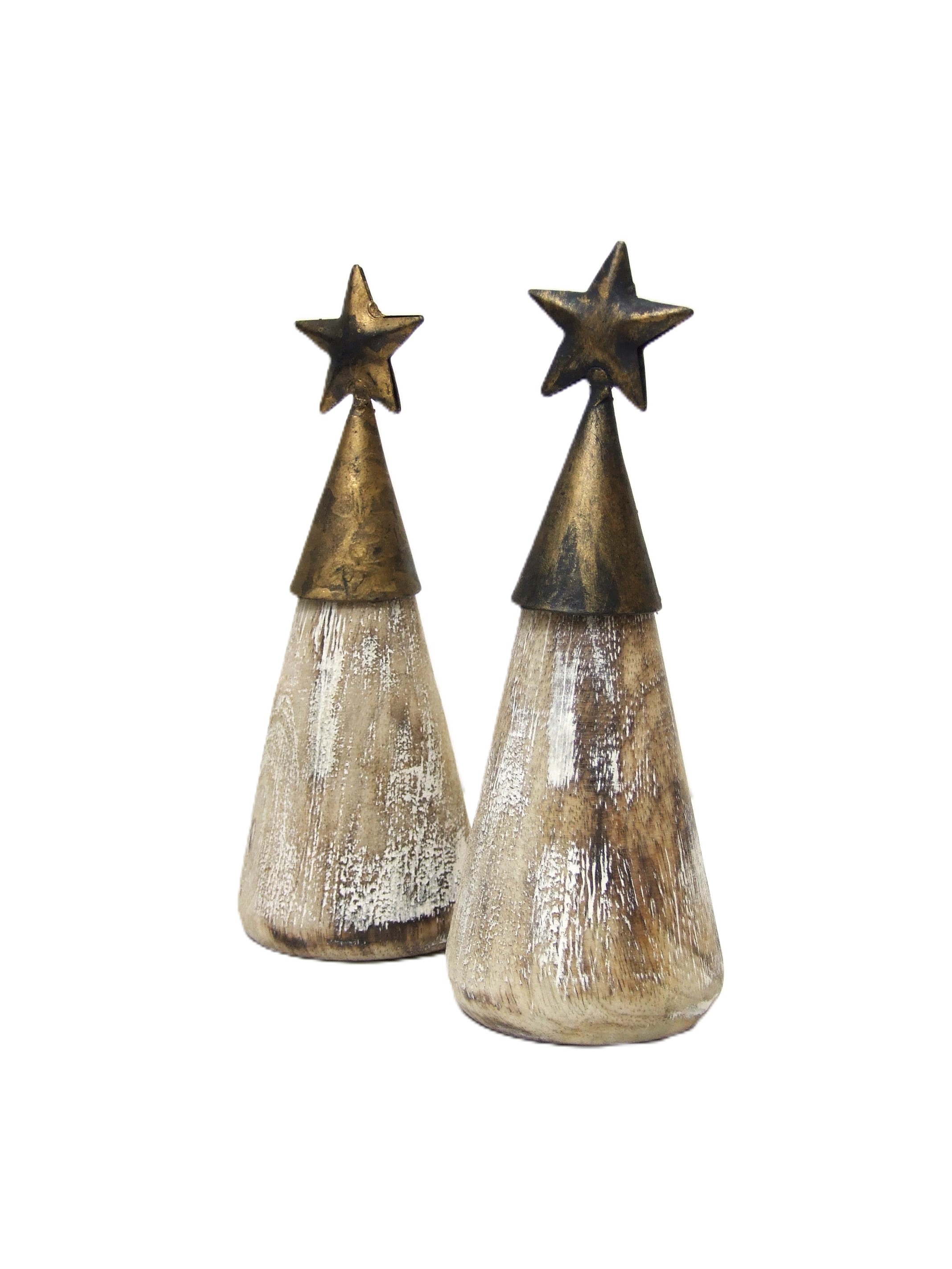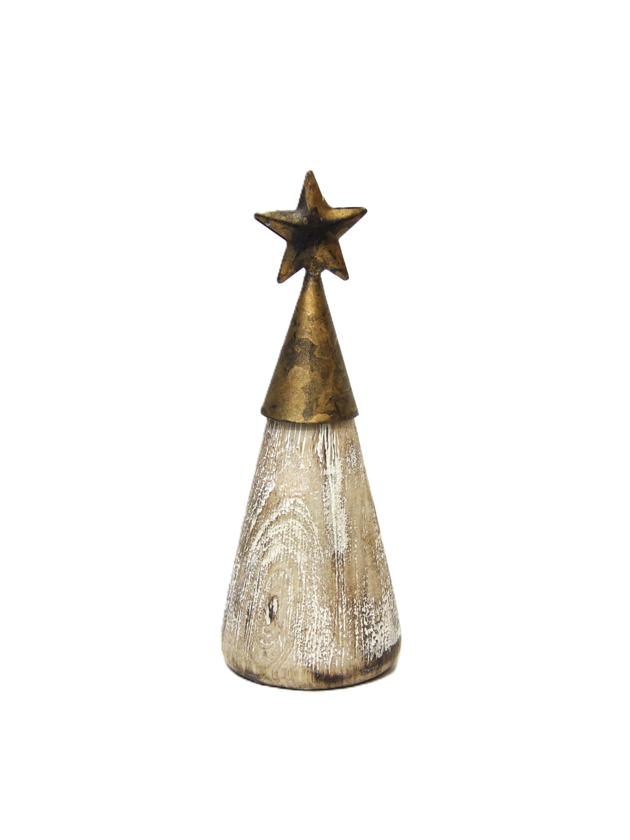 Dekoracyjna choinka z drewna mango zakończona złotą metalową Gwiazdką