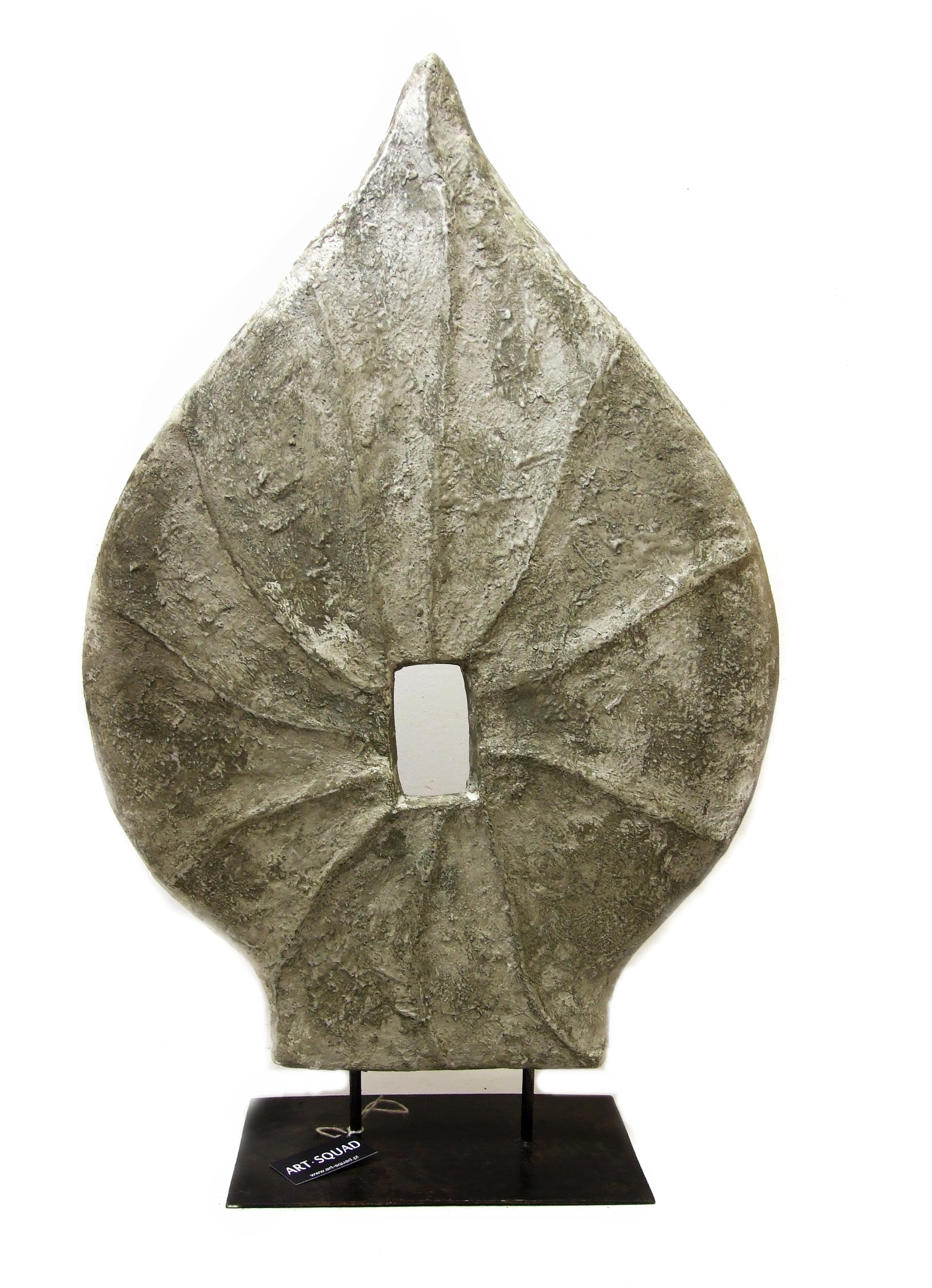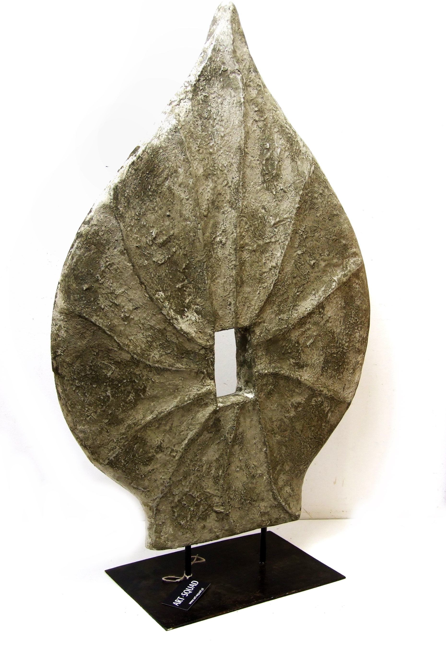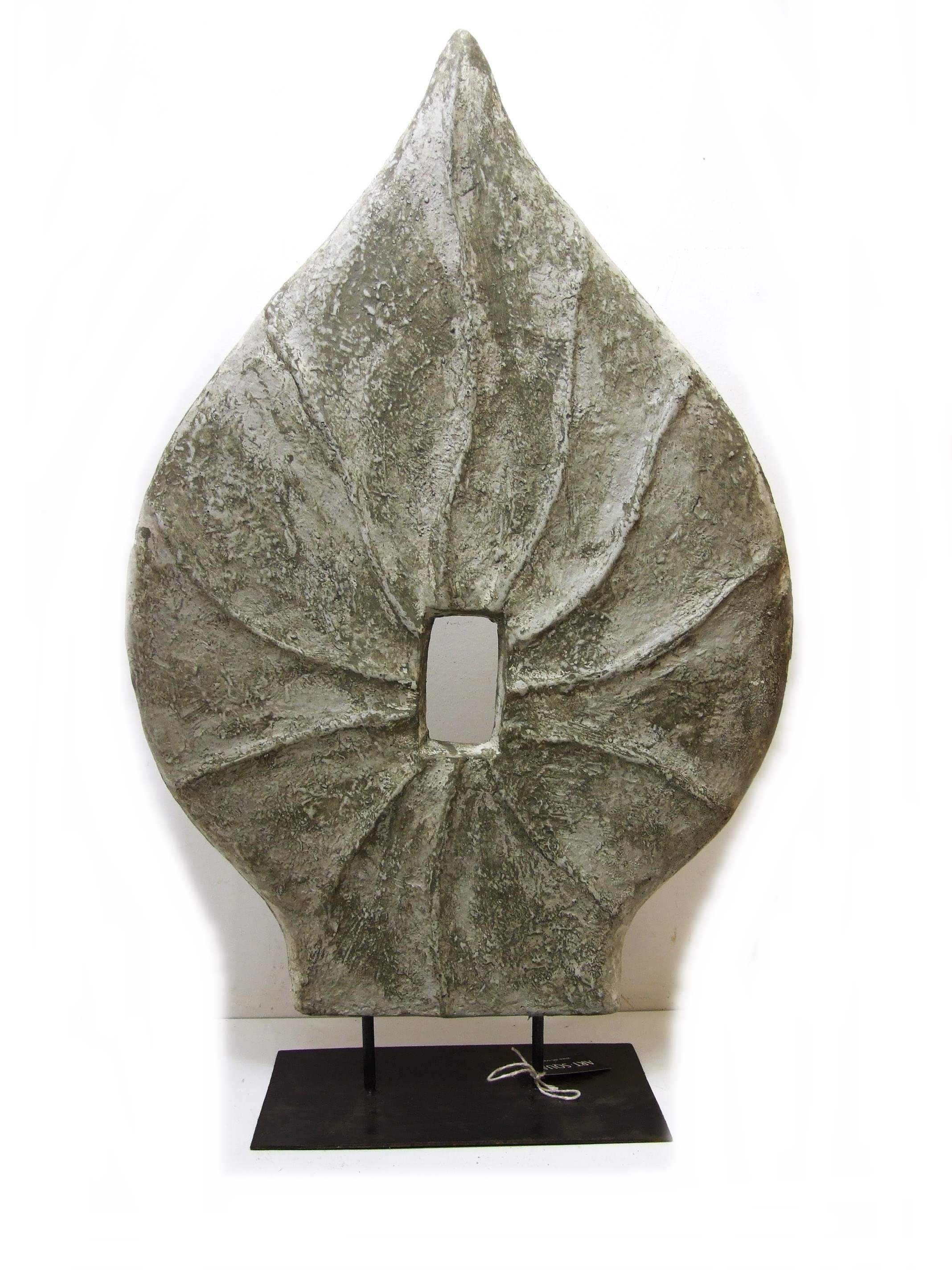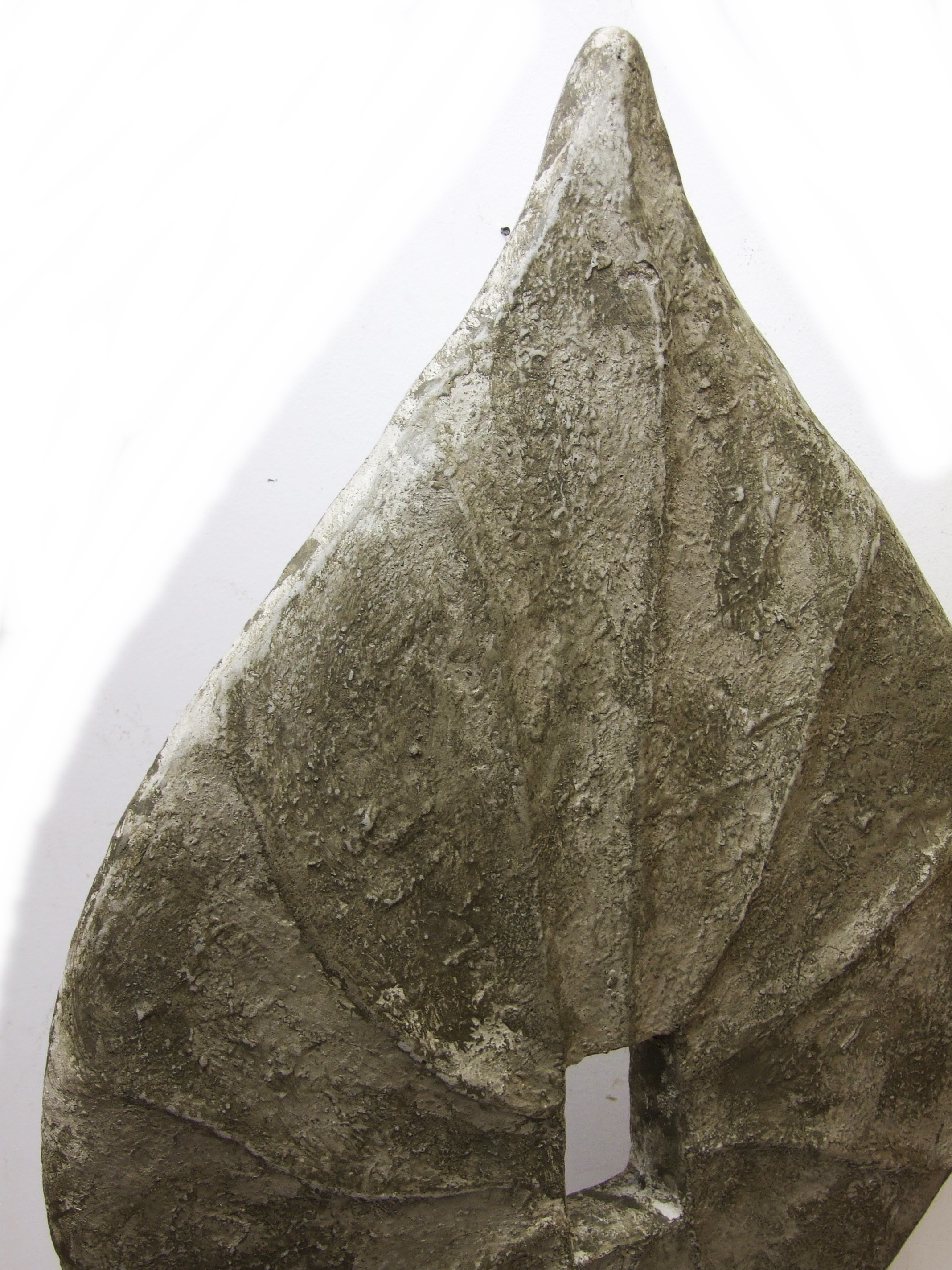 Dekoracja w formie Liścia, wykonana z betonu na metalowej podstawie.