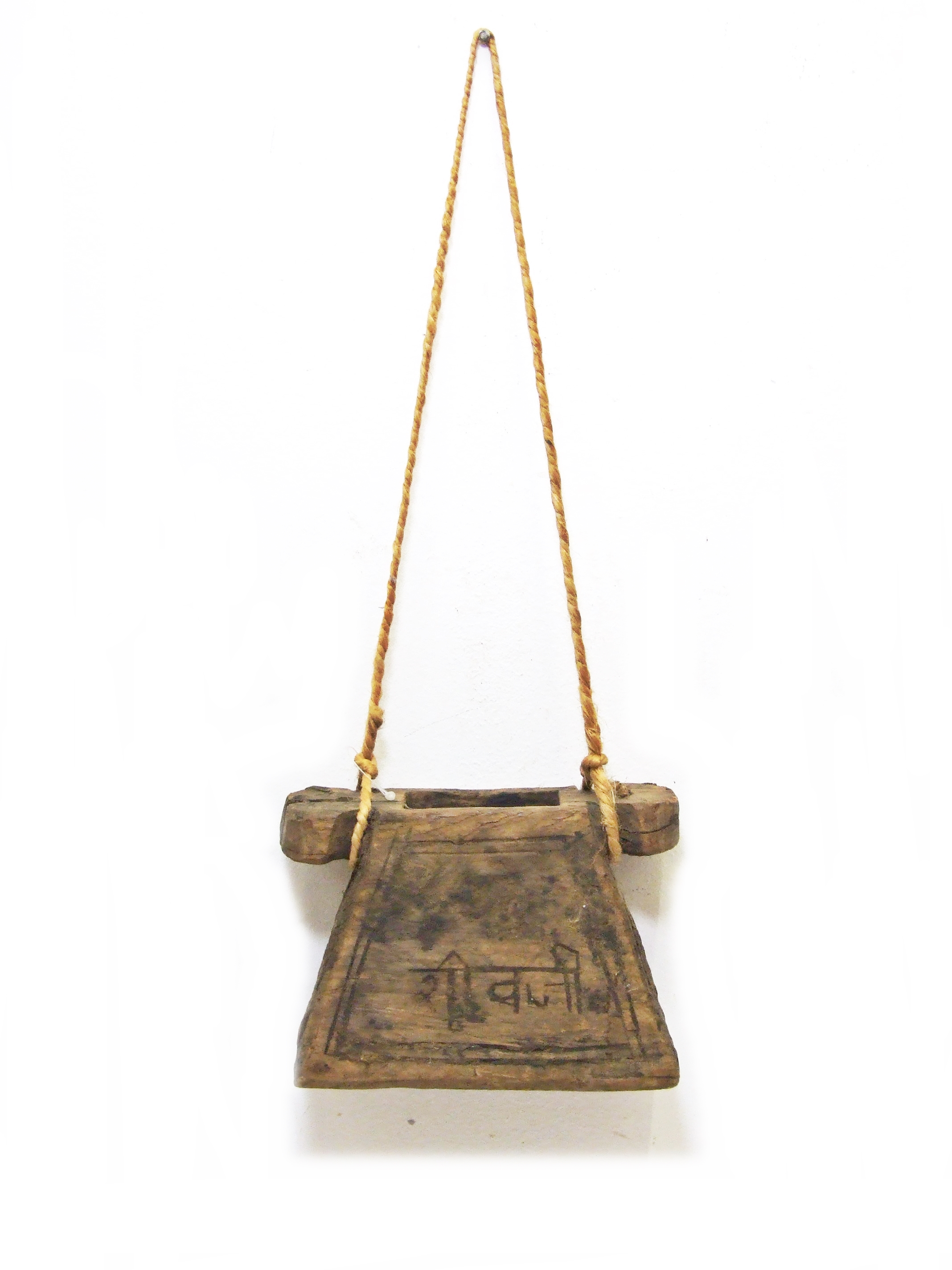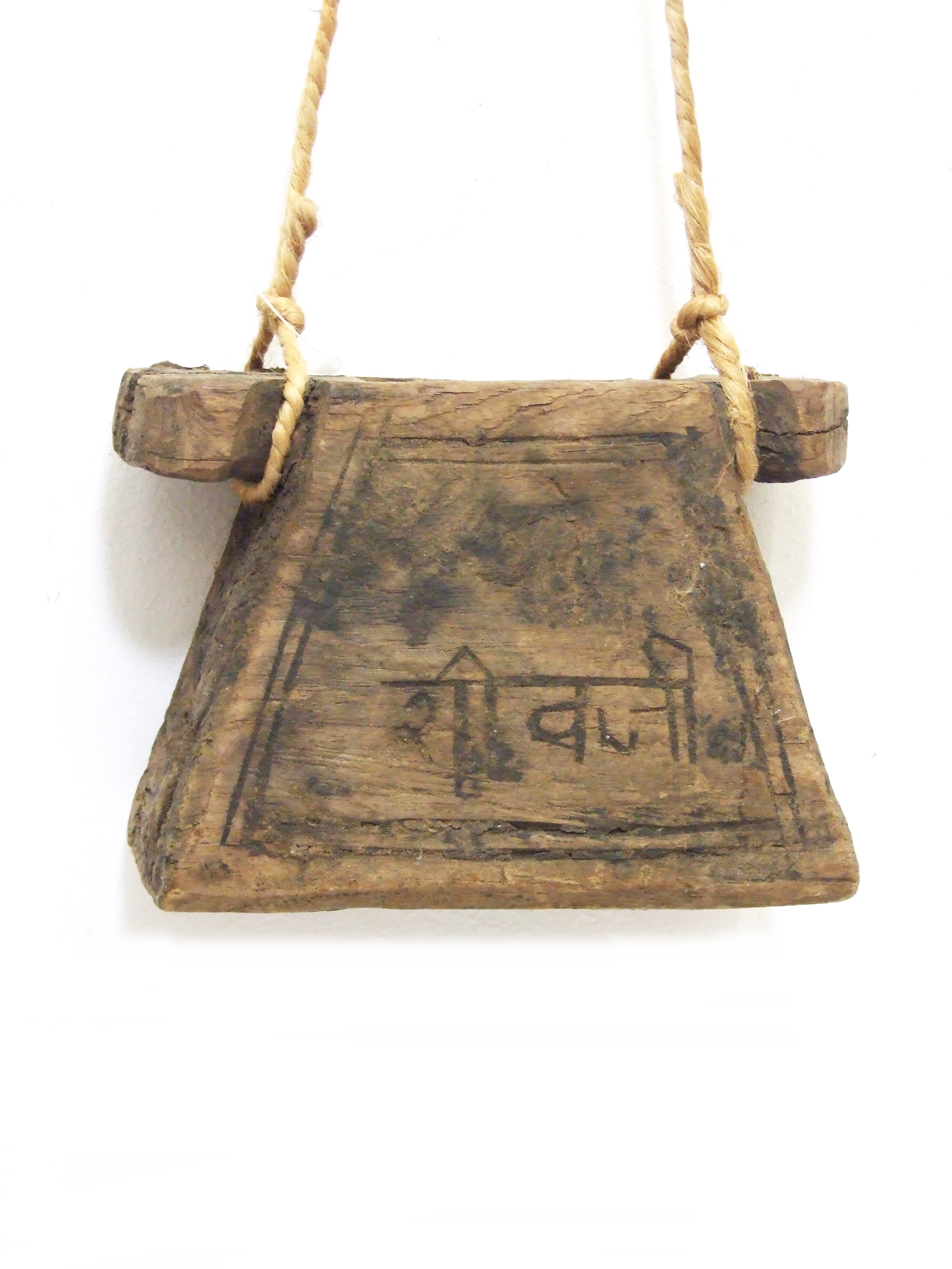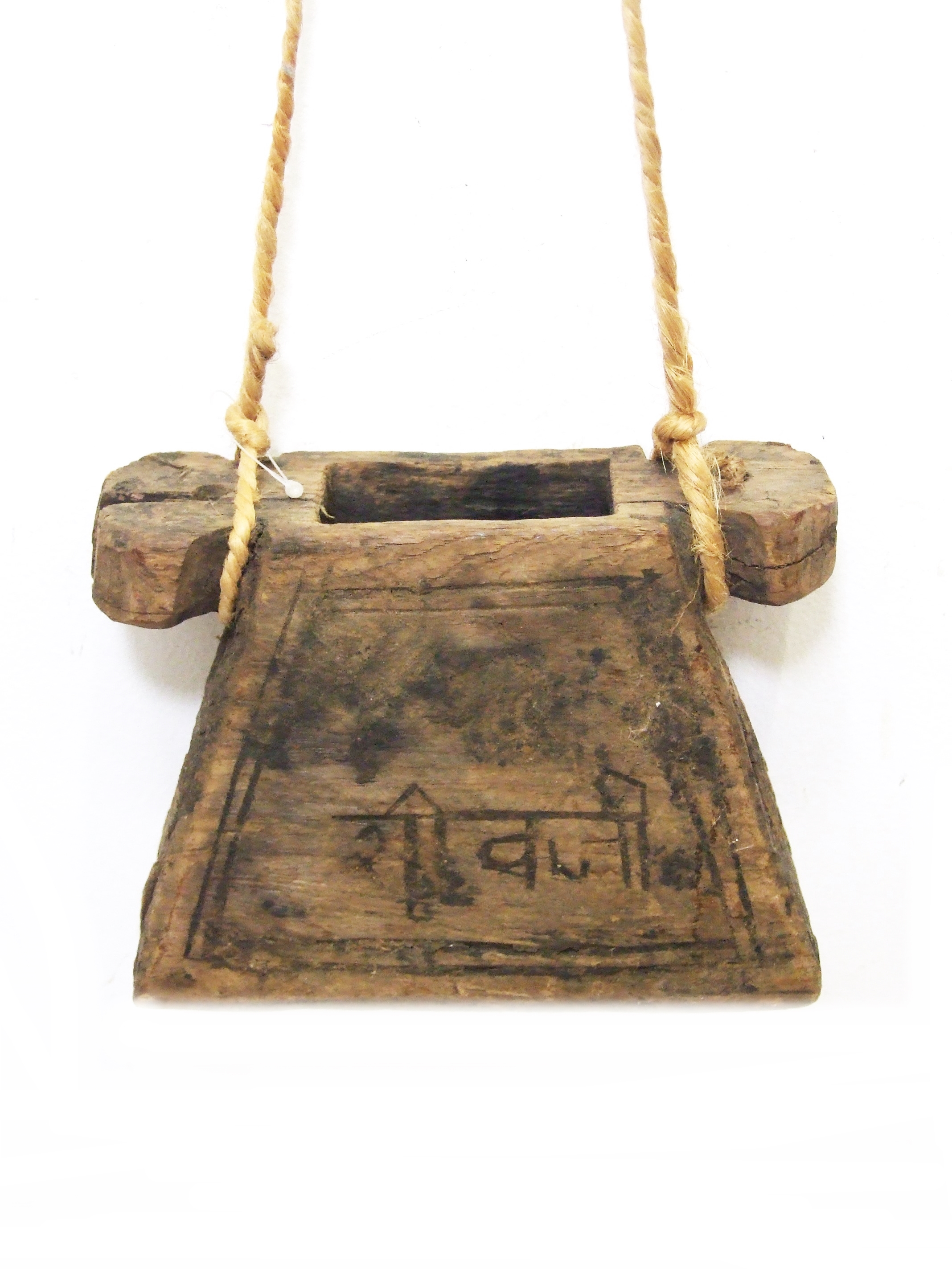 Dzwonek pasterski drewniany Vintage na sznurze 16x12cm