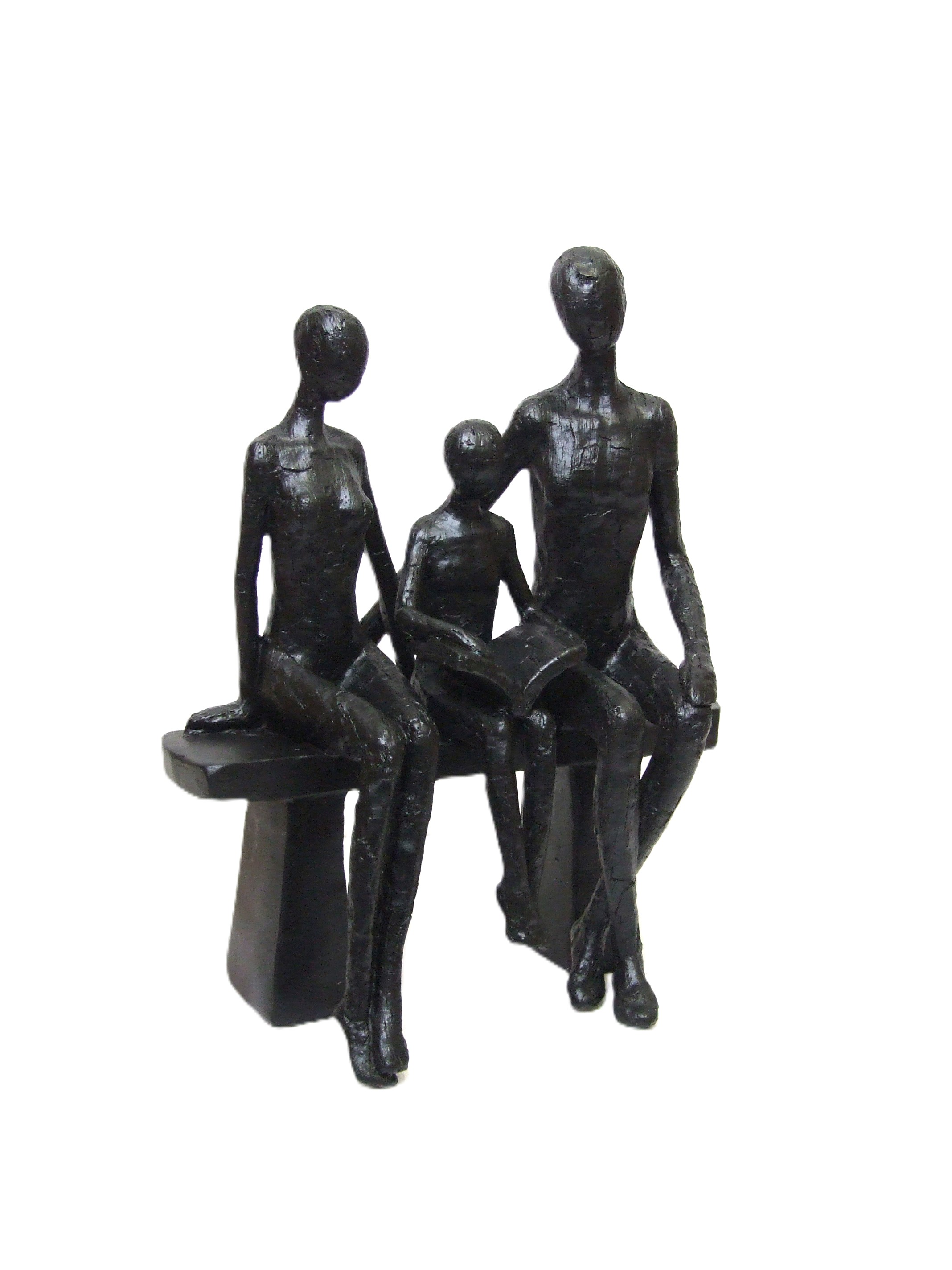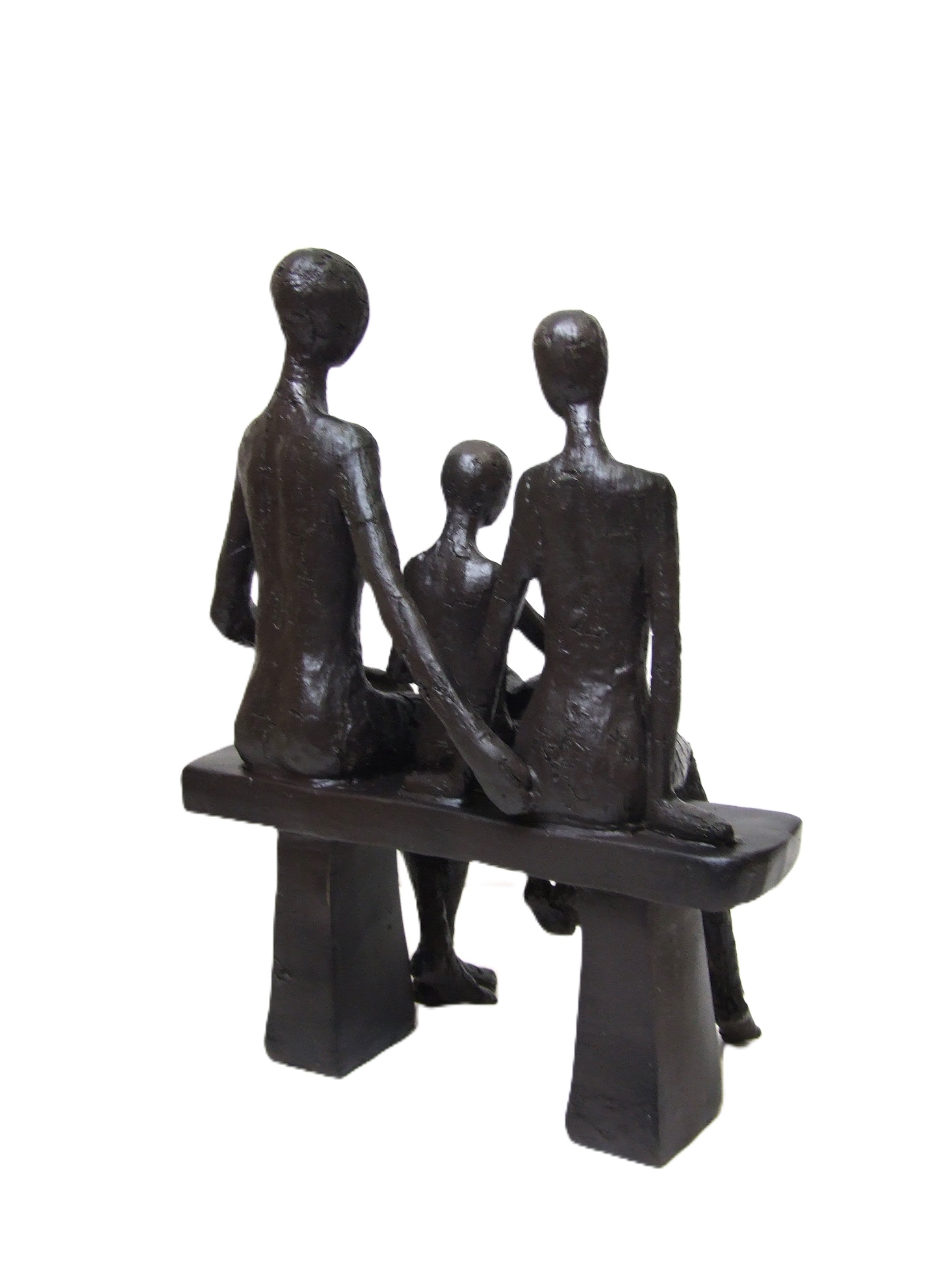 Figurka Rodzina siedząca na ławce Materiał: Polyresin / żywica syntetyczna Wymiary figurki: wys.34cm, szer.13cm, dł.26cm