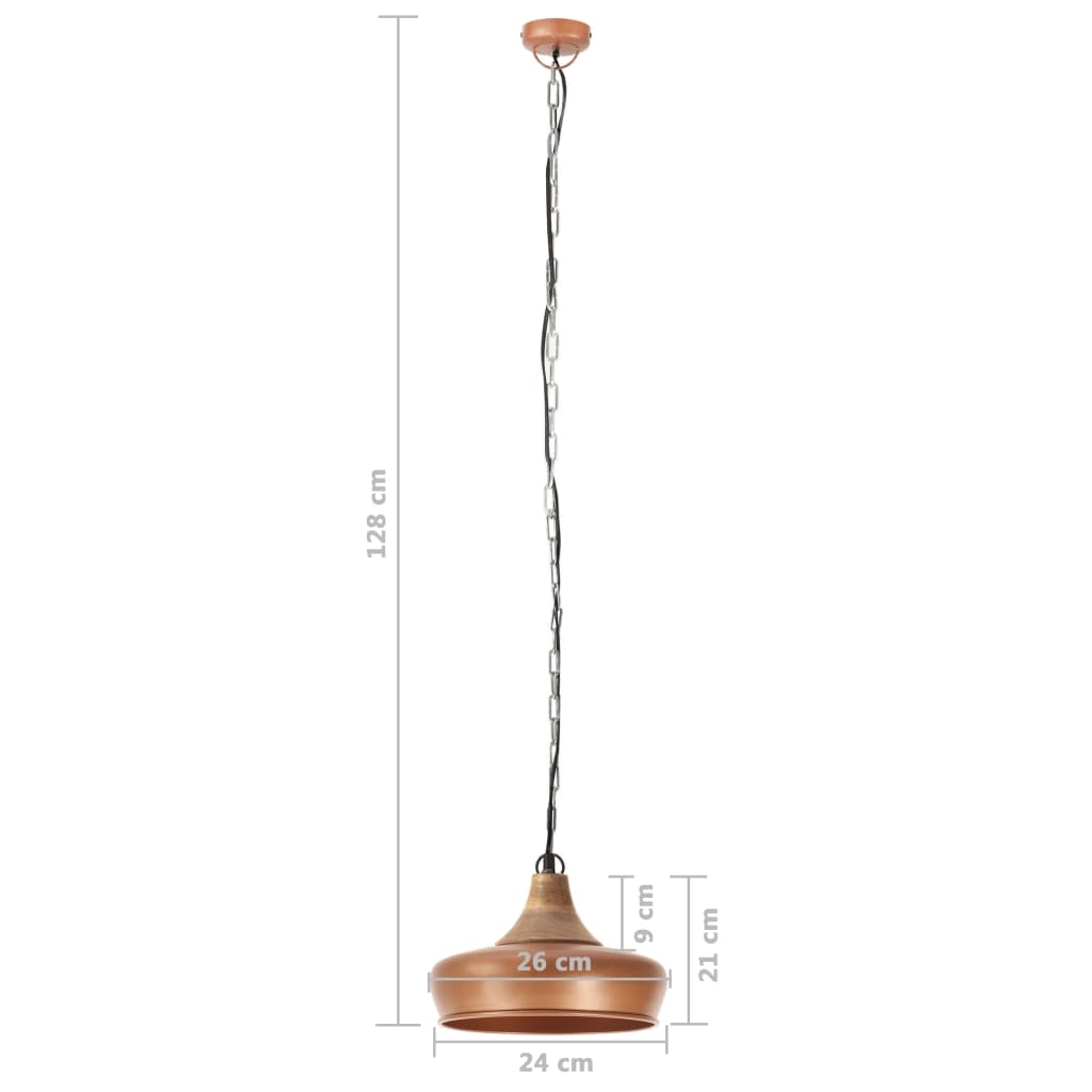 Pomalowany na kolor miedziany, żelazny klosz lampy oraz lite drewno mango o naturalnym wykończeniu będą idealnie pasować do wnętrza w stylu wiejskim lub industrialnym. Element drewniany sprawia, że wnętrze będzie jeszcze przytulniejsze. Ta lampa sufitowa zawiera oprawę E27 na żarówkę o maksymalnej mocy 25 watów. Możesz dobrać i zainstalować żarówkę E27 o dowolnej barwie światła, tworząc atmosferę relaksu i odprężenia.