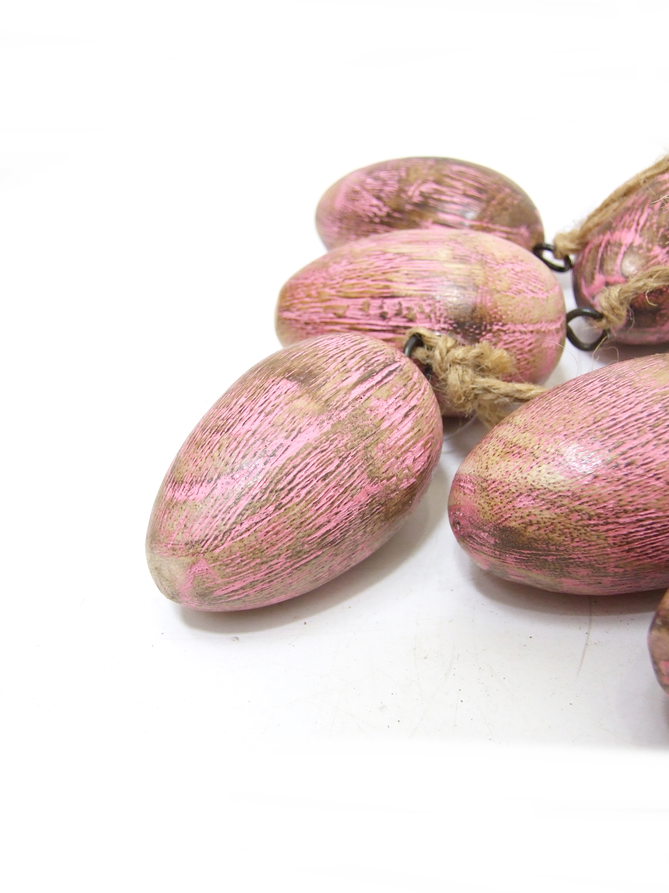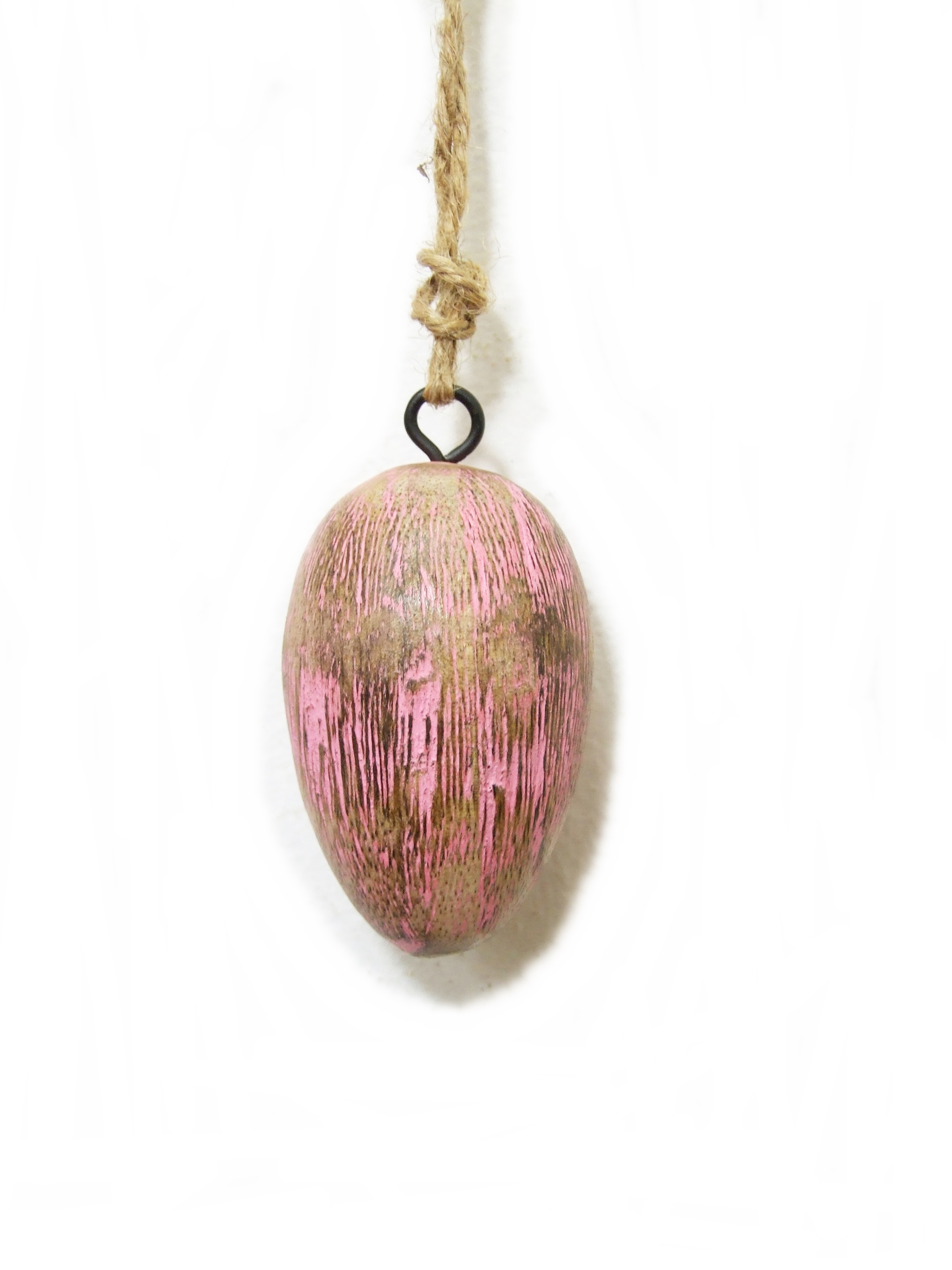 Jajo wielkanocne na sznurku, wykonane z pełnego drewna.