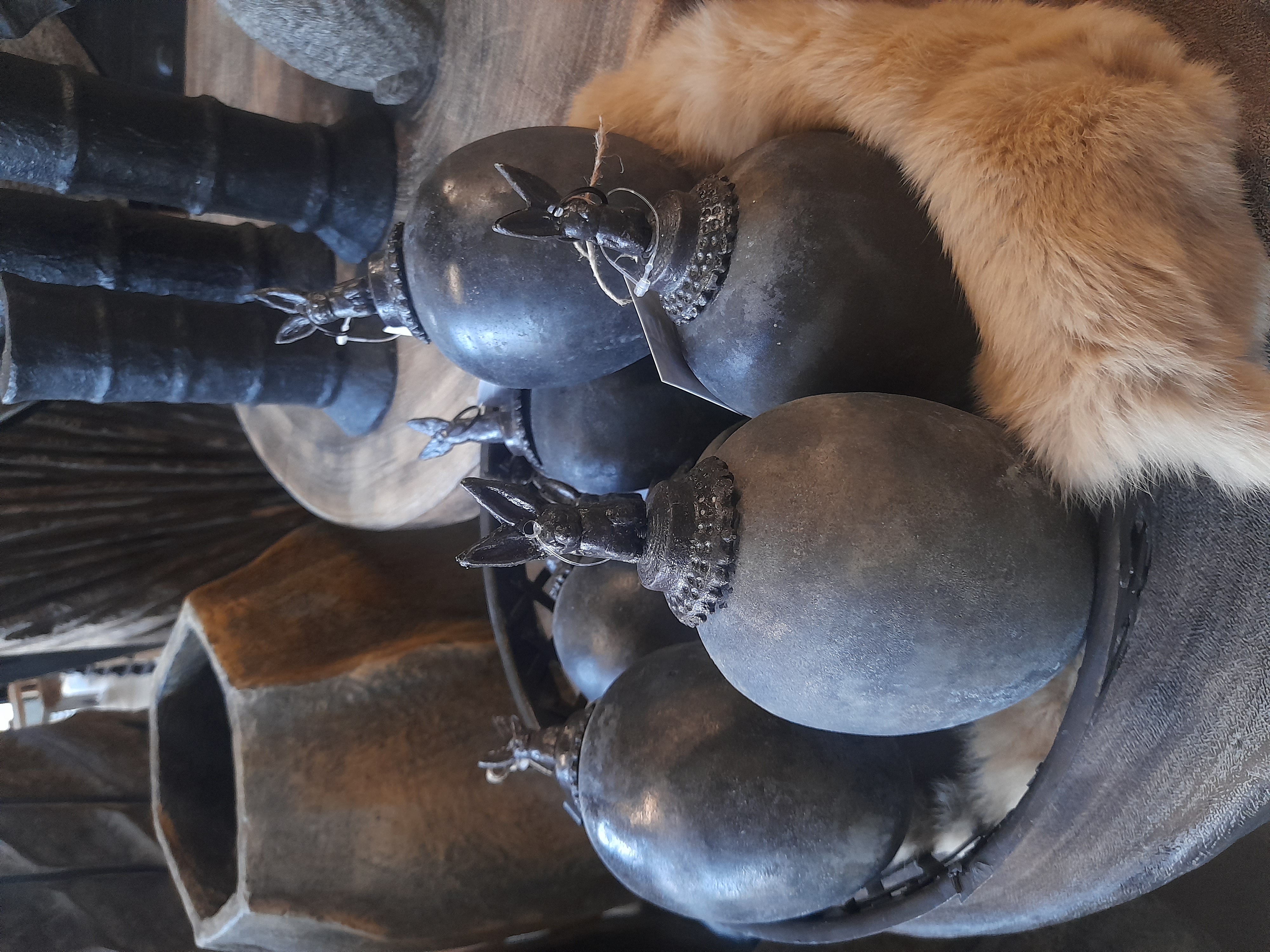 Piękne wiszące jajo wykonane z szklanej formy i metalowego dodatku