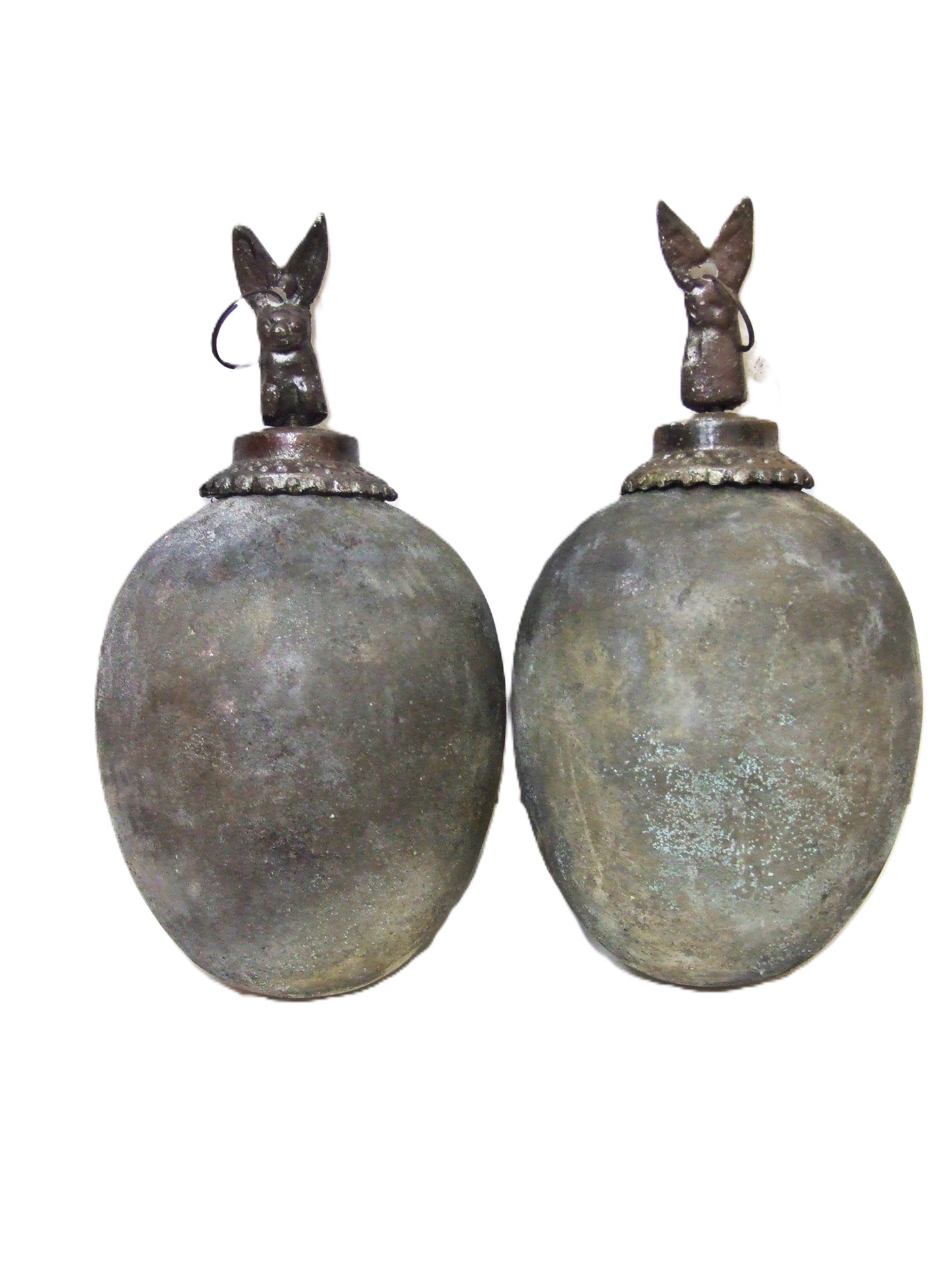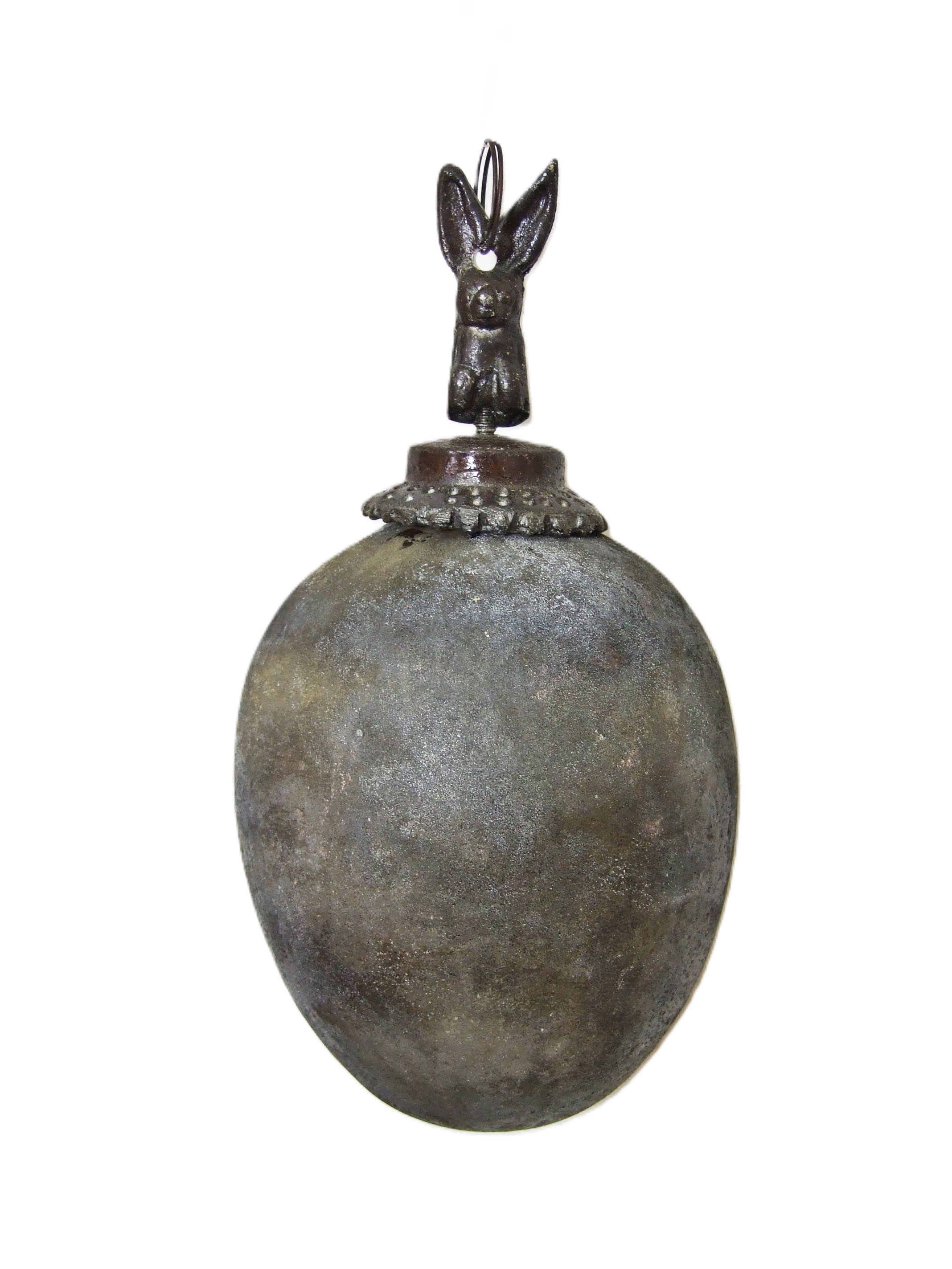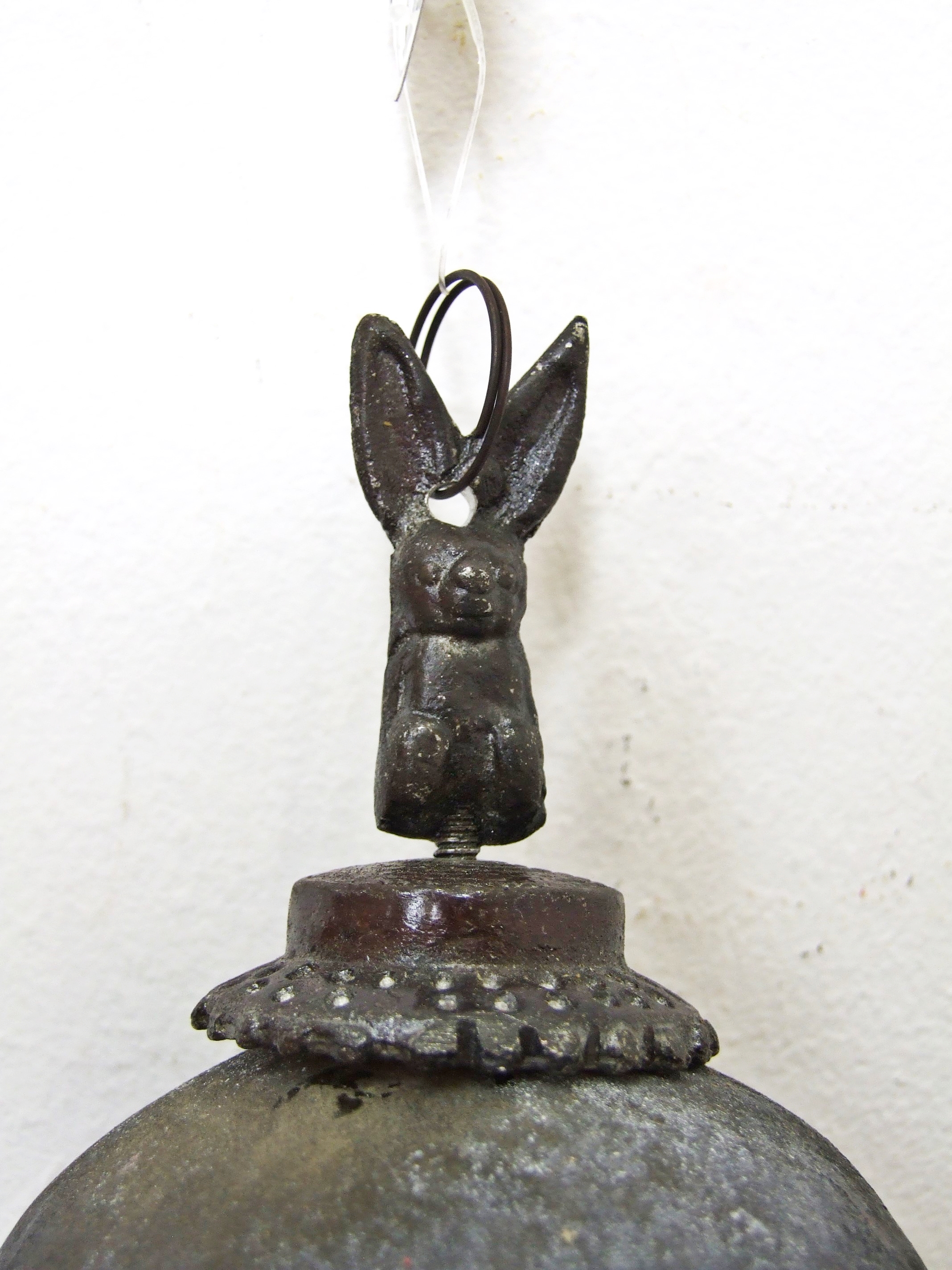 Postarzana struktura i metalowa zawieszka w kształcie zająca nadają mu wyjątkowy charakter