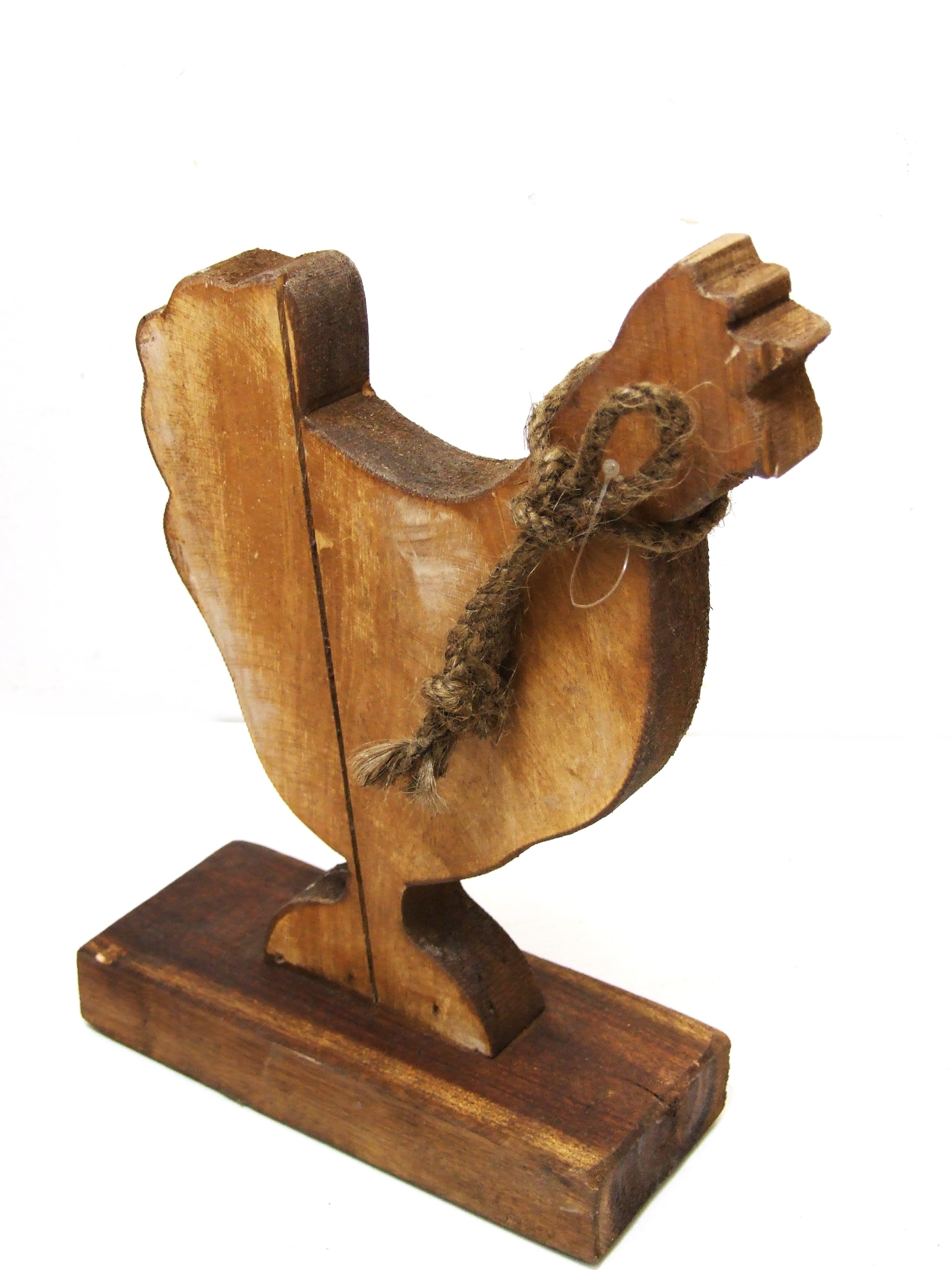 Dekoracyjna Kura/Kogut ręcznie wykonany z drewna pozyskanego w recyclingu, malowany i postarzany.