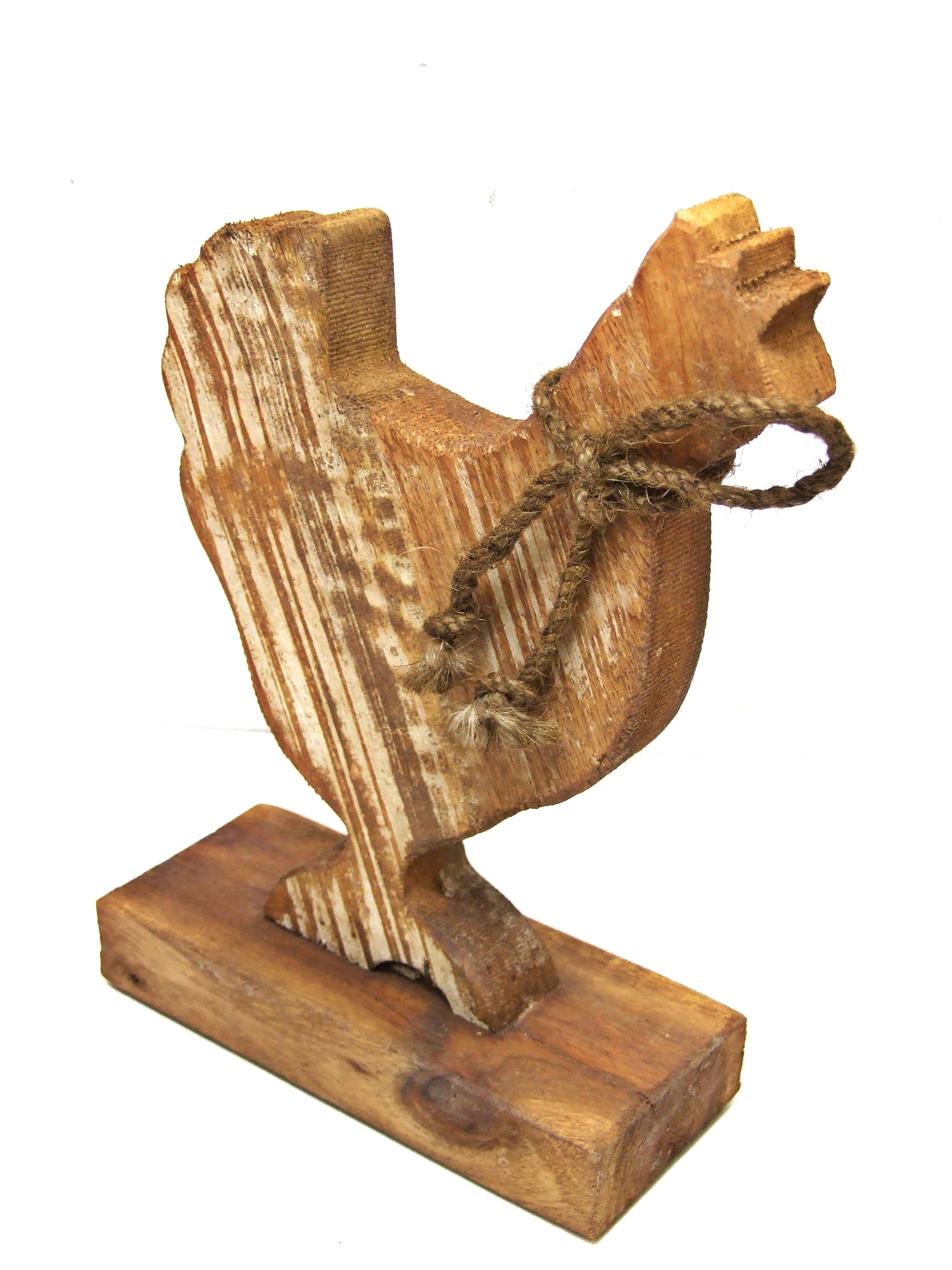 Dekoracyjna Kura/Kogut ręcznie wykonany z drewna pozyskanego w recyclingu, malowany i postarzany.