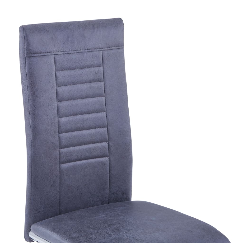 Krzesła do jadalni wykonane są z miękkiej w dotyku sztucznej skóry zamszowej i są ergonomicznie zaprojektowane dla zapewnienia maksymalnego komfortu. Wspiera je stalowa podstawa z chromowanym wykończeniem, która zapewnia stabilność i trwałość. Dzięki grubej piance na siedzisku możesz cieszyć się najwyższym komfortem.