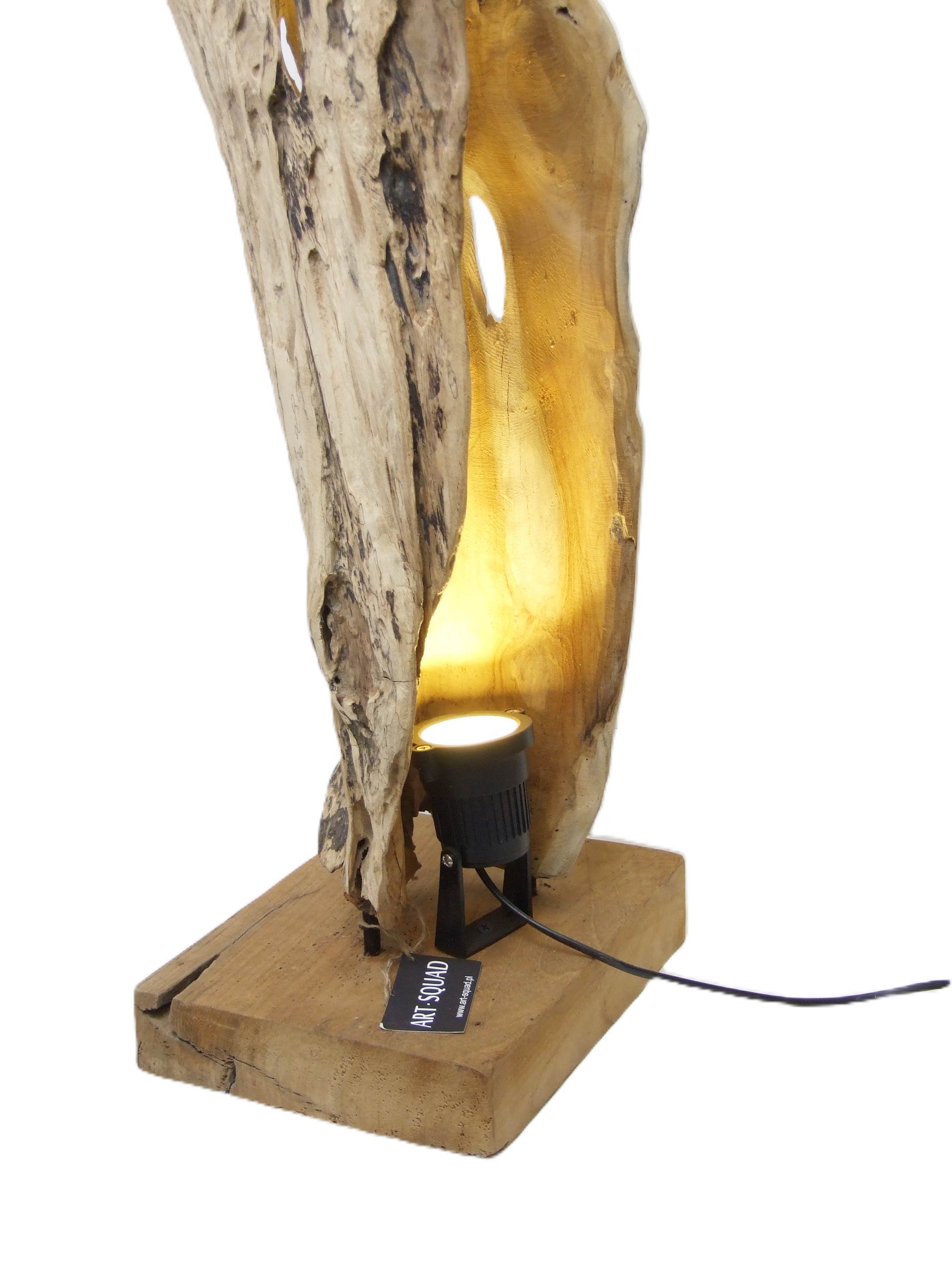 Strona główna » Lampy » Lampa Rzeźba podświetlana z kawałka drewna tekowego 65cm