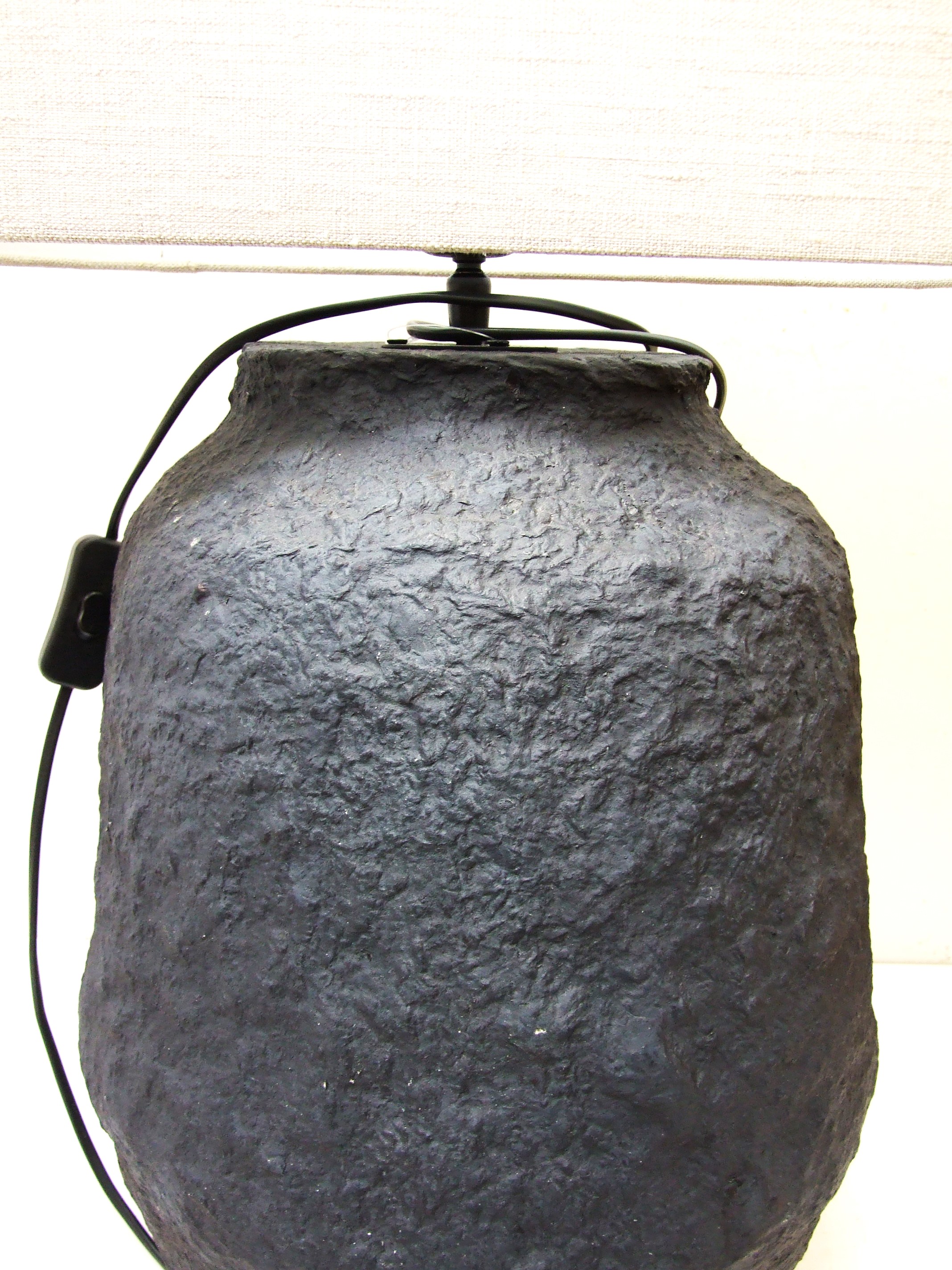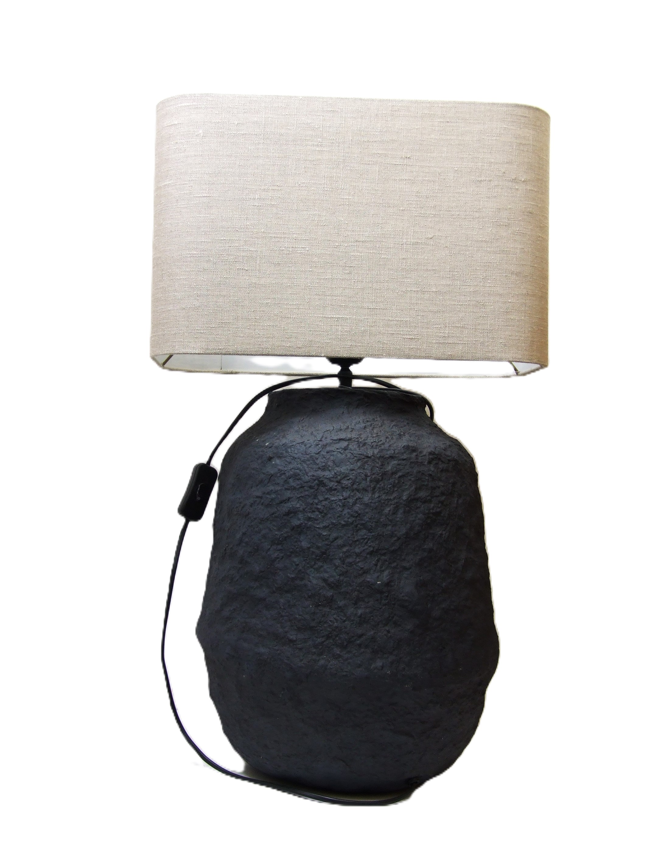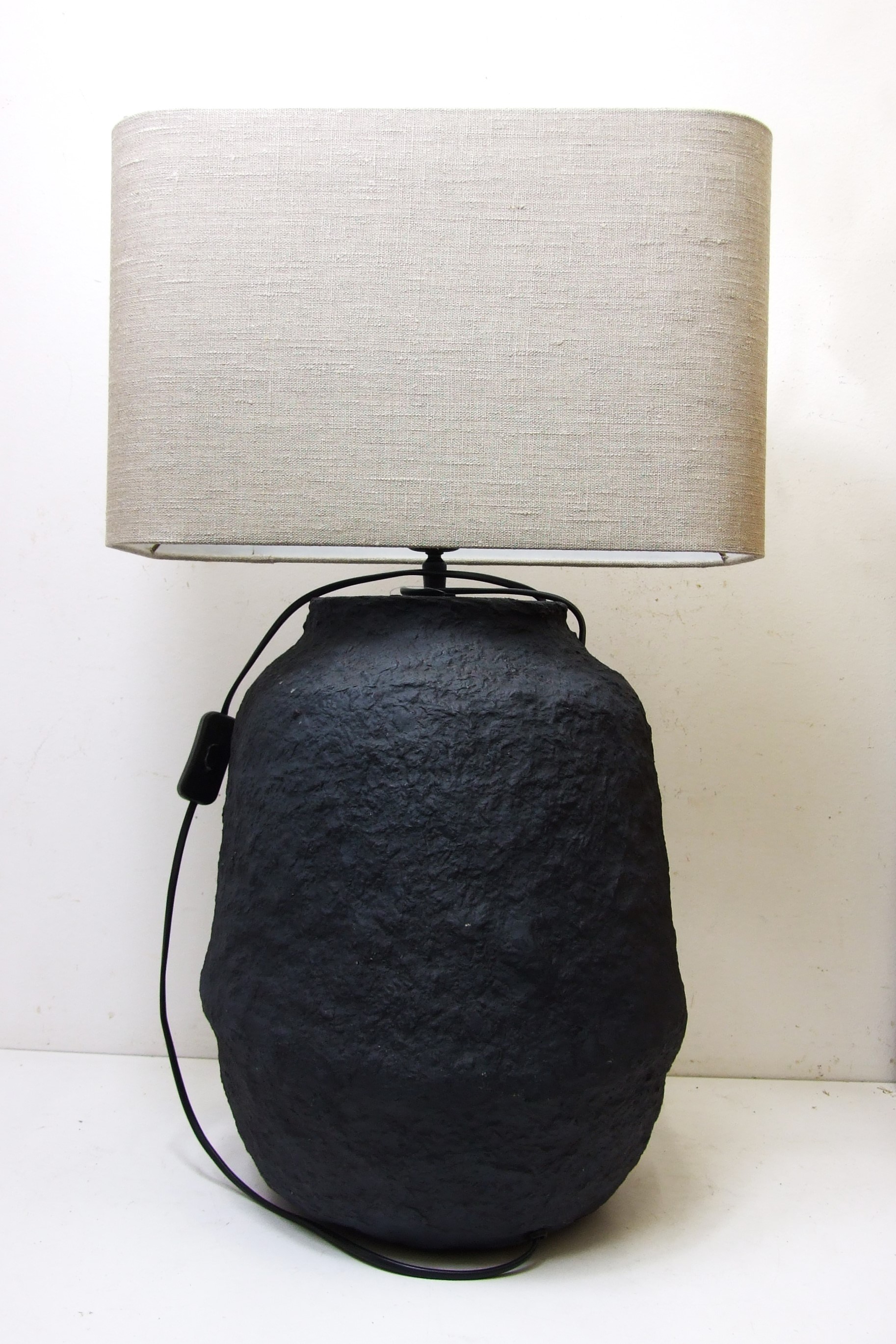 Piękna podstawa ręcznie wykonana techniką papier mâché w matowej czerni przyciąga swoją uwagę teksturą i kształtem.