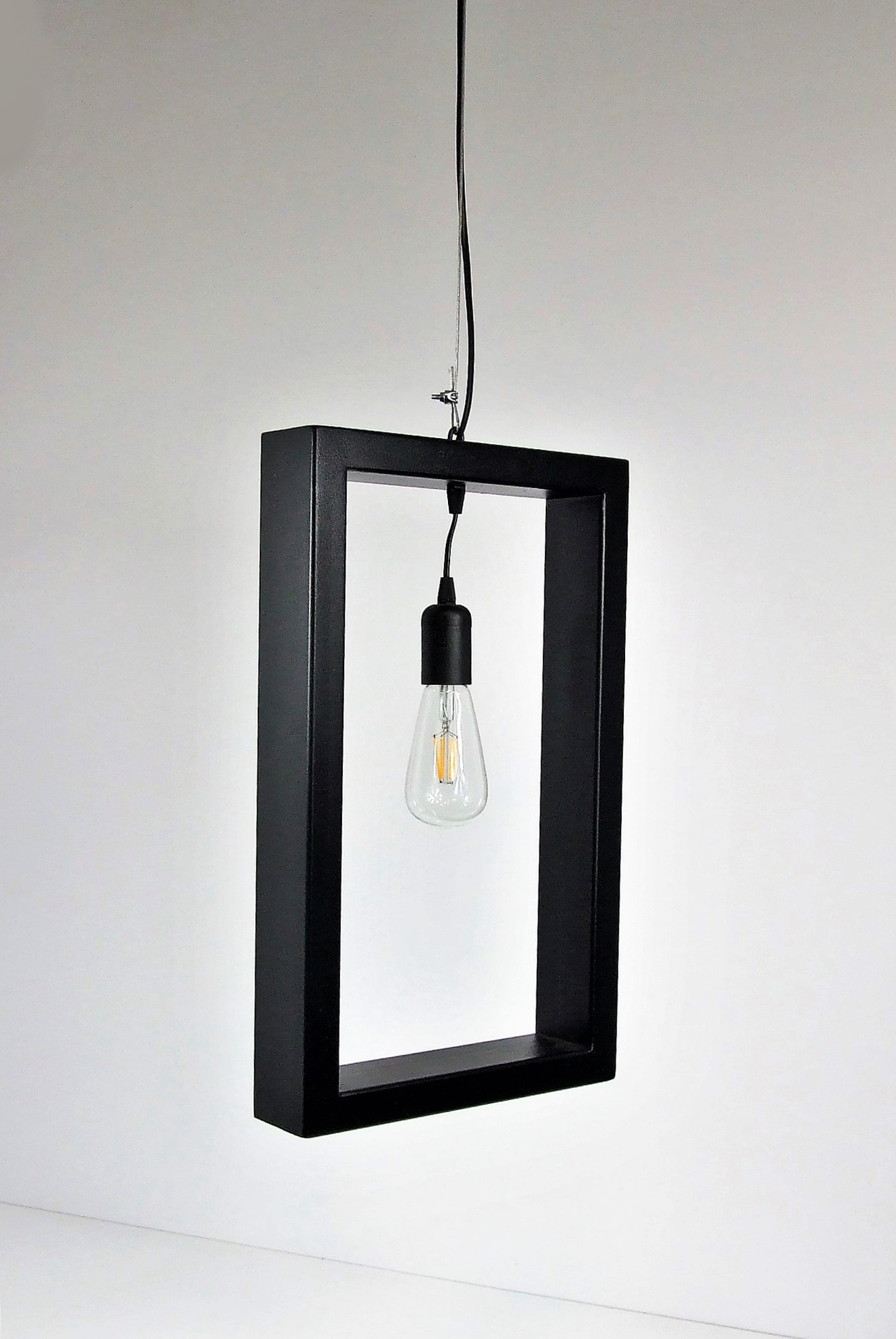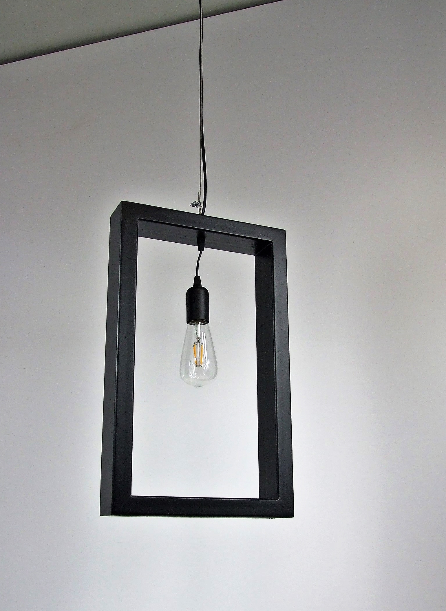 Utrzymana w minimalistycznym stylu, bardzo solidnie wykonana z grubych (3 cm) profili lampa.