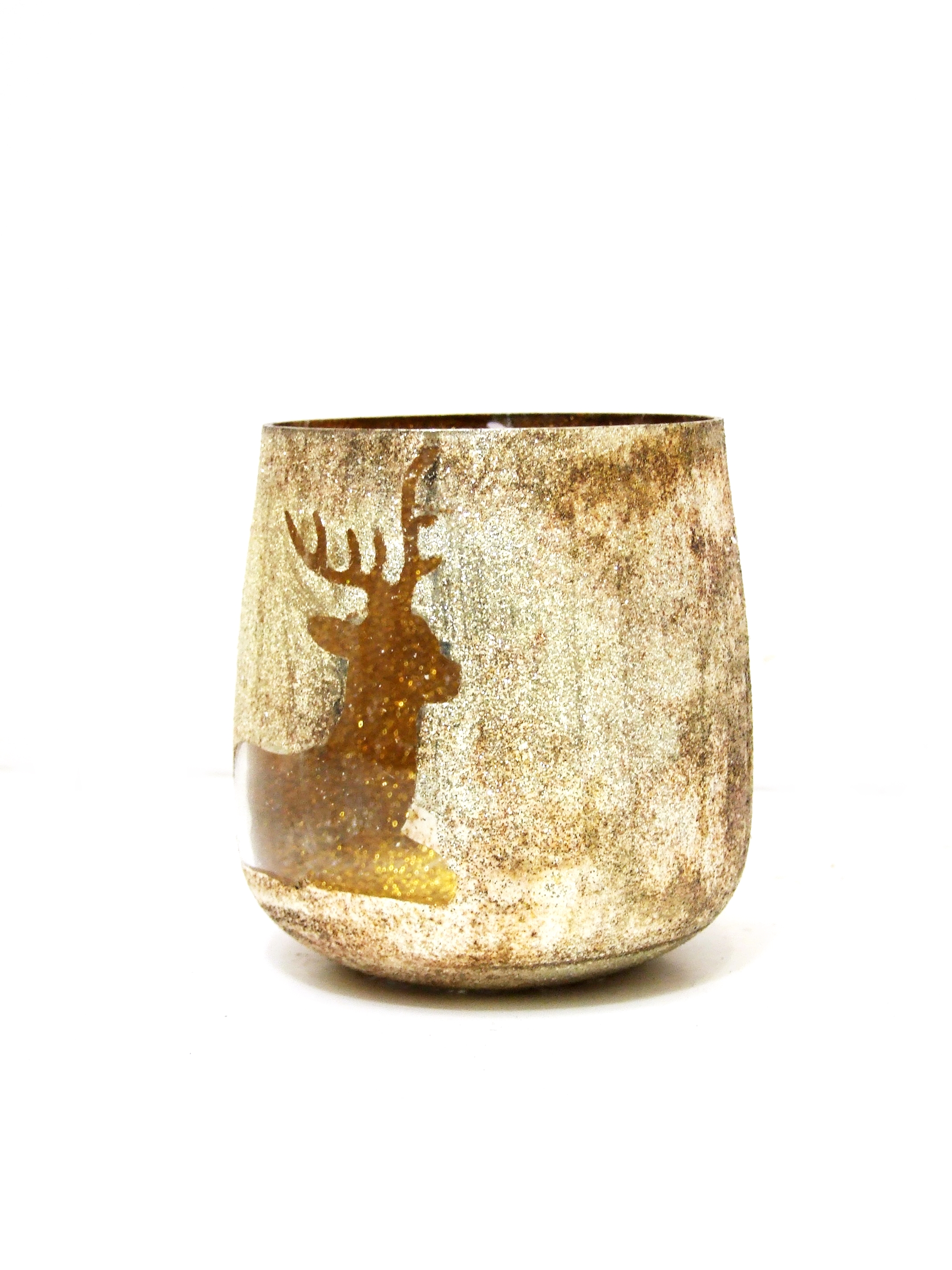 Lampion szklany Jeleń Złoty SLampion szklany Jeleń Złoty SLampion szklany Jeleń Złoty S