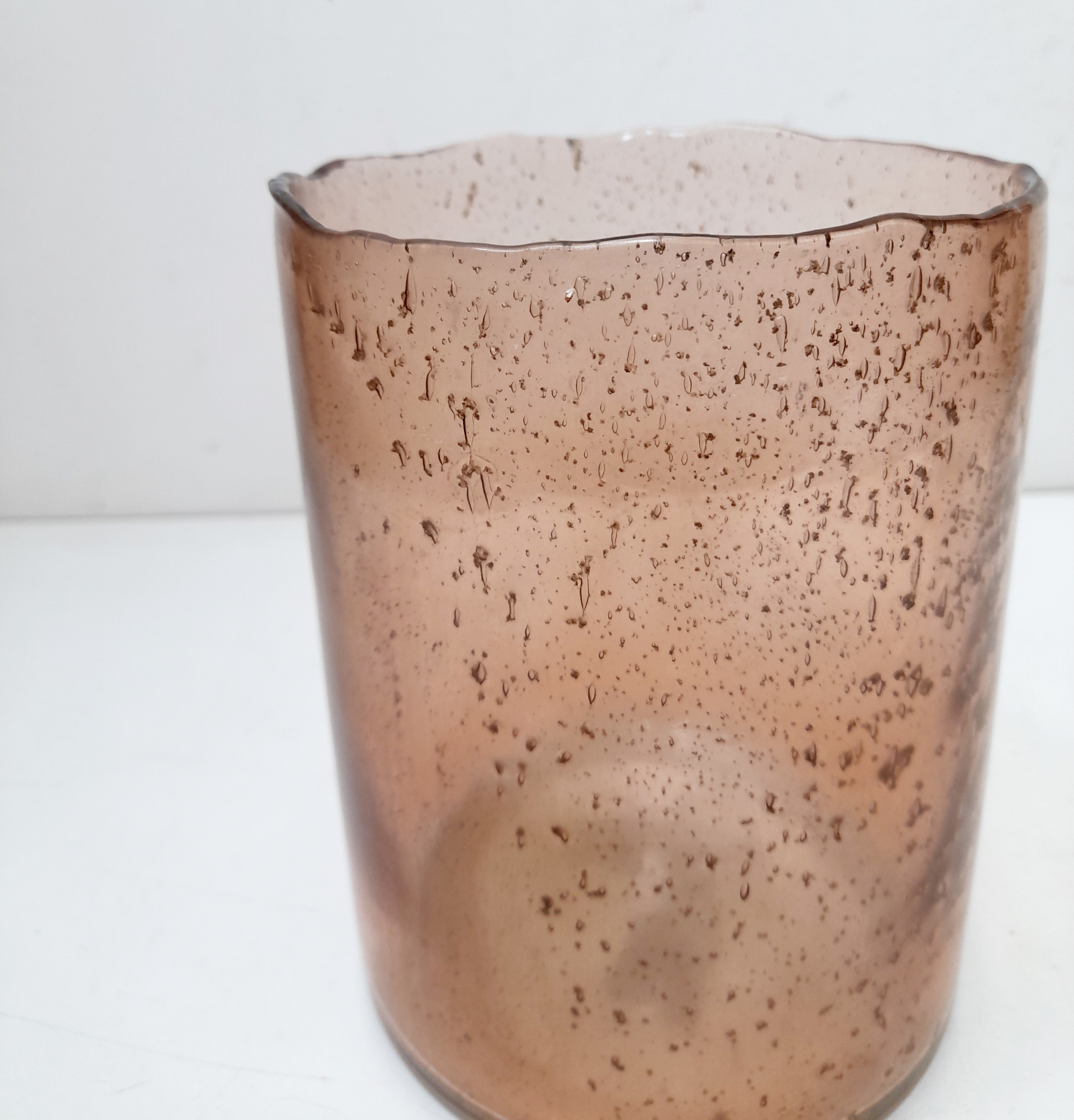 Materiał wykonania : szkło w odcieniu różowym Wymiary : wys.17cm, średn. 13cm