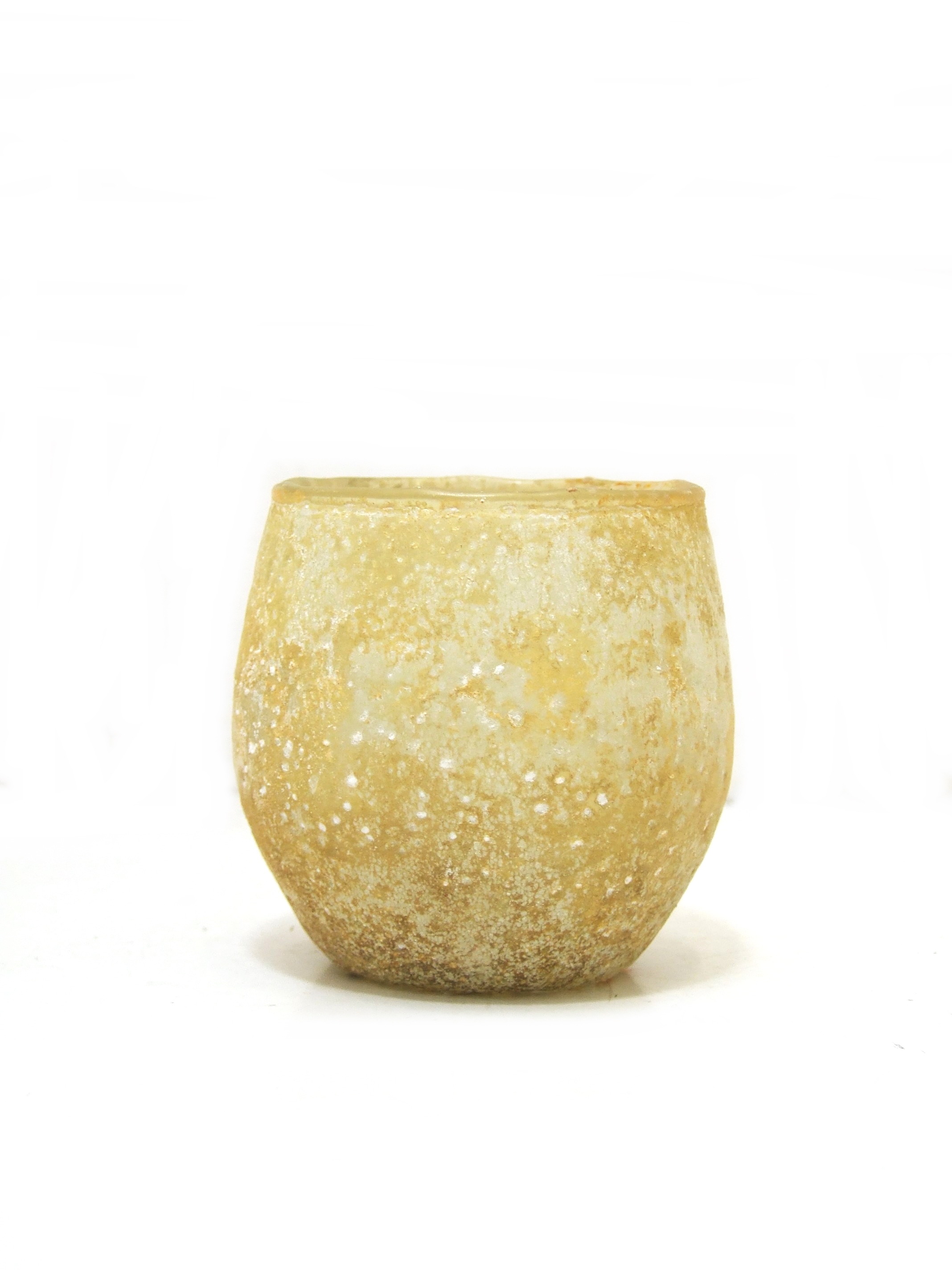 Lampion szklany na T-light  Świecznik Rustykalny Beżowy/Żółty