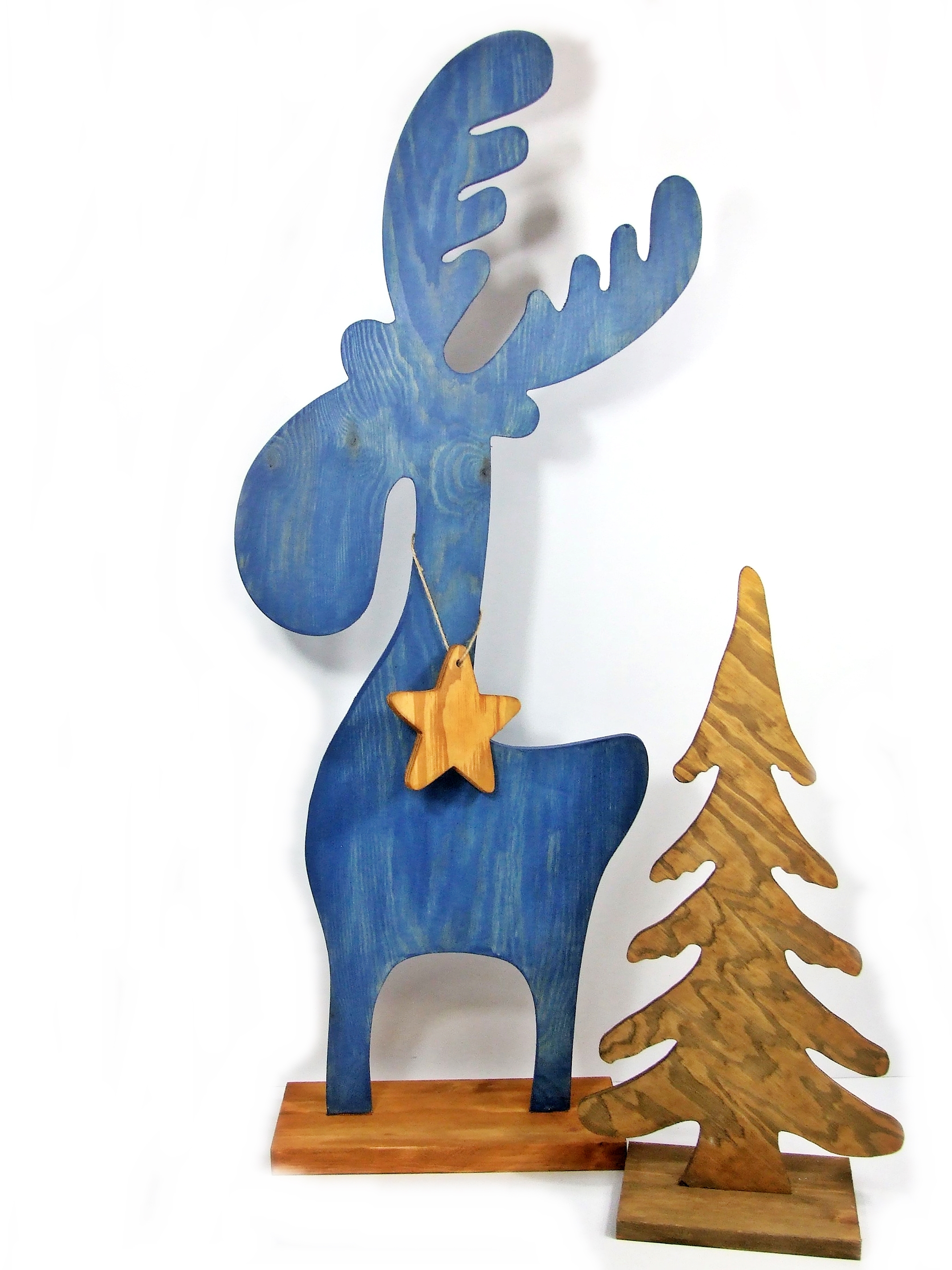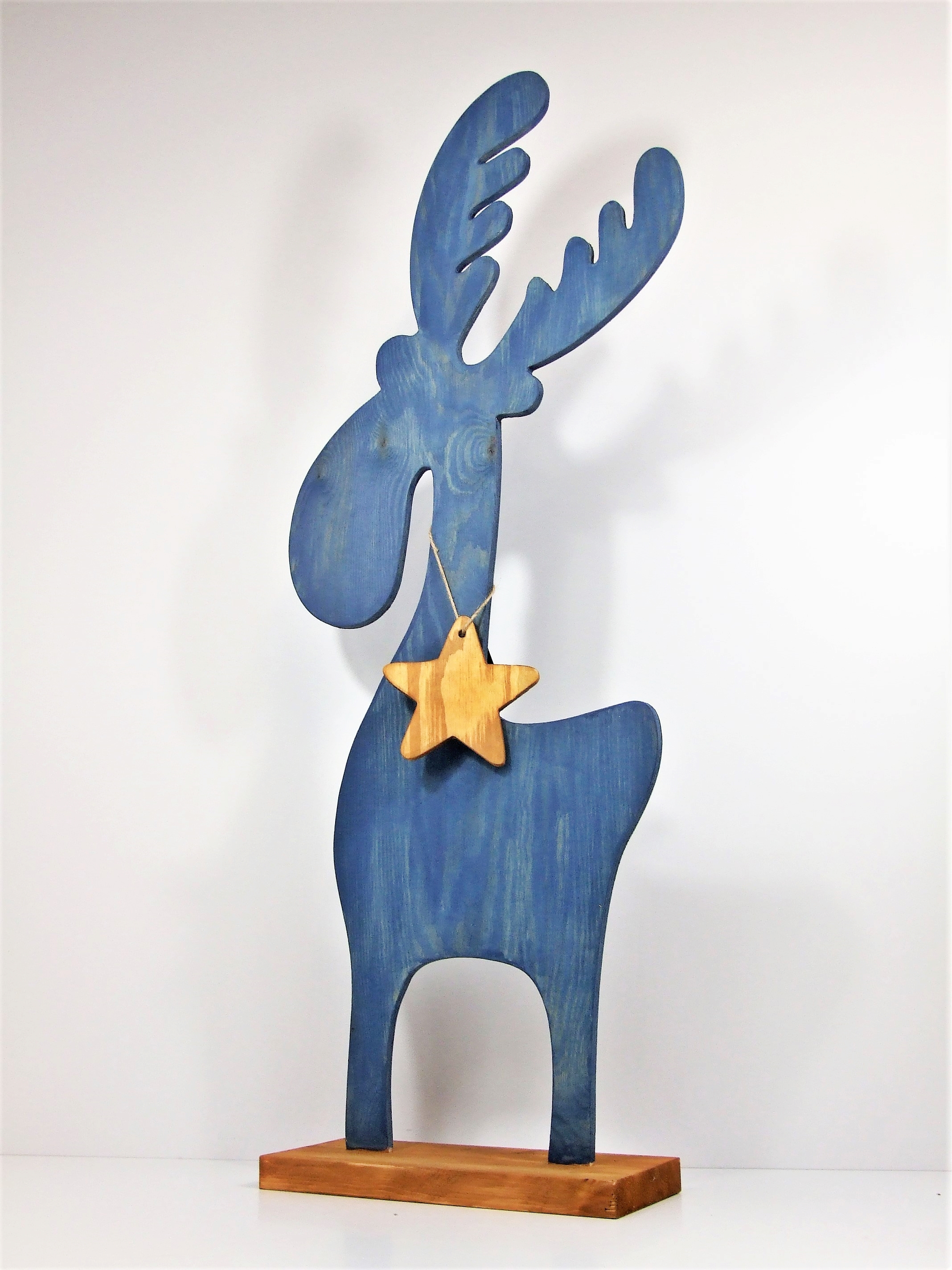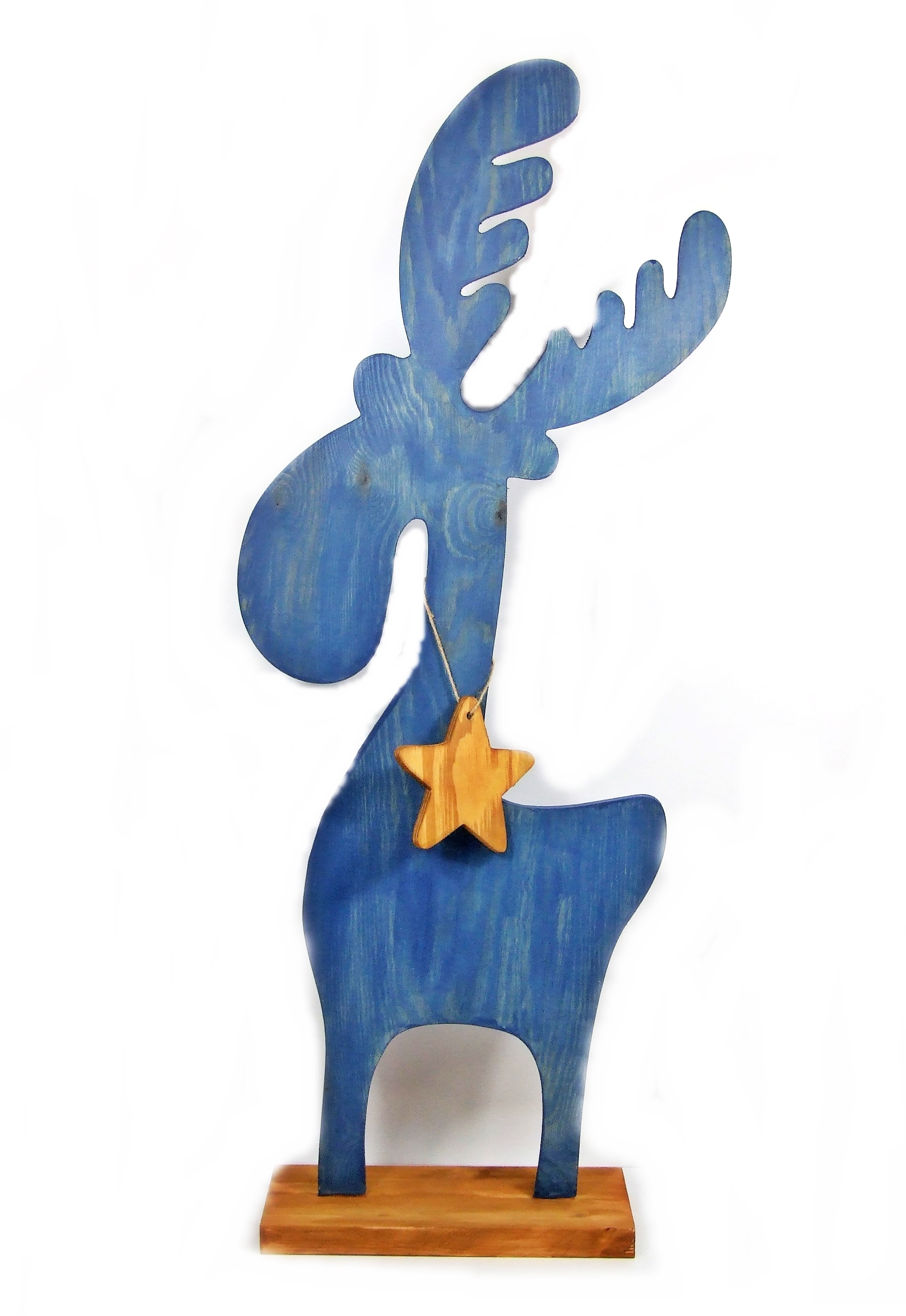Strona główna » Boże Narodzenie » Łoś drewniany dekoracja na podstawie 103cm Niebieski