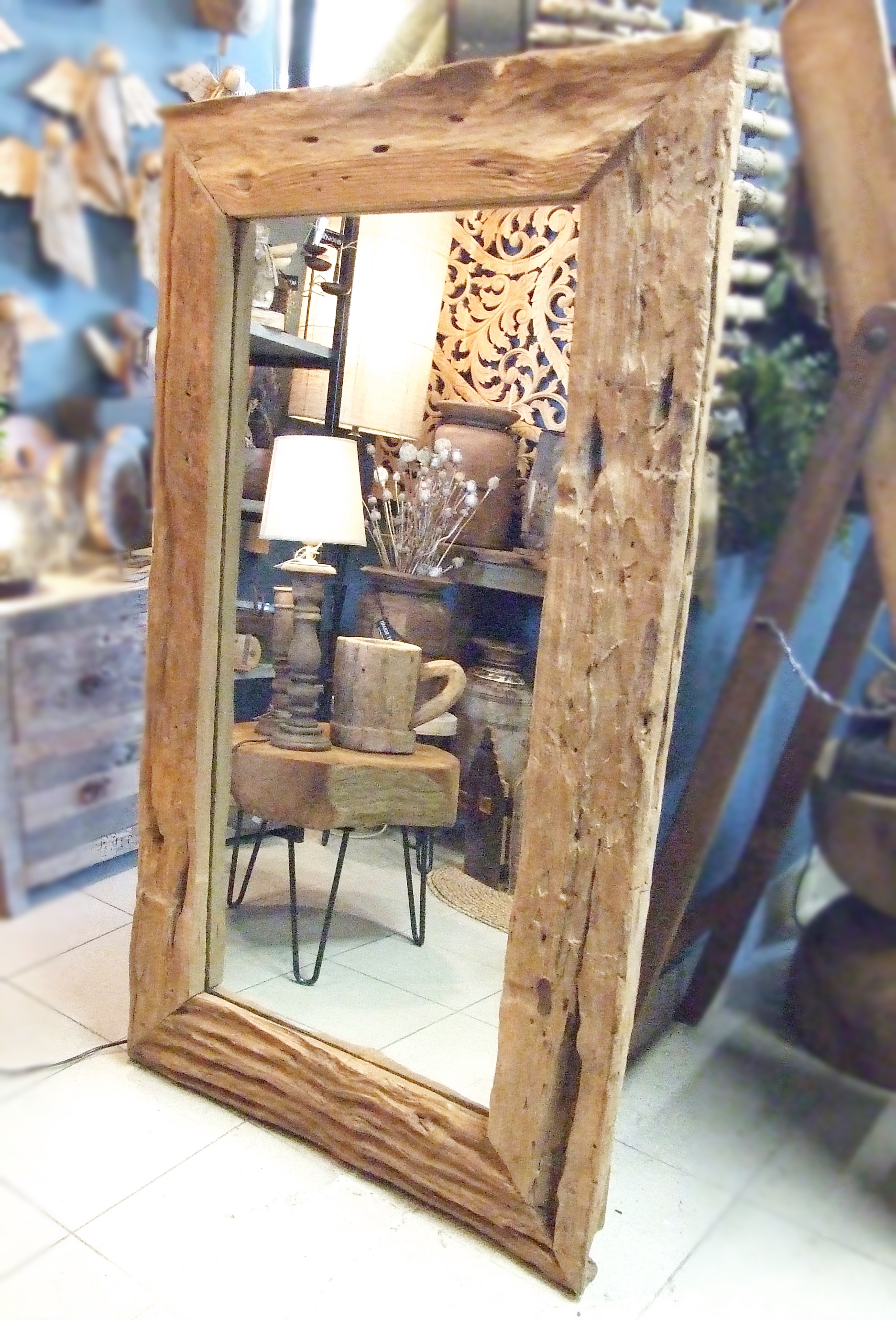Strona główna » Dodatki » Lustro z drewna tekowego 140x80cm