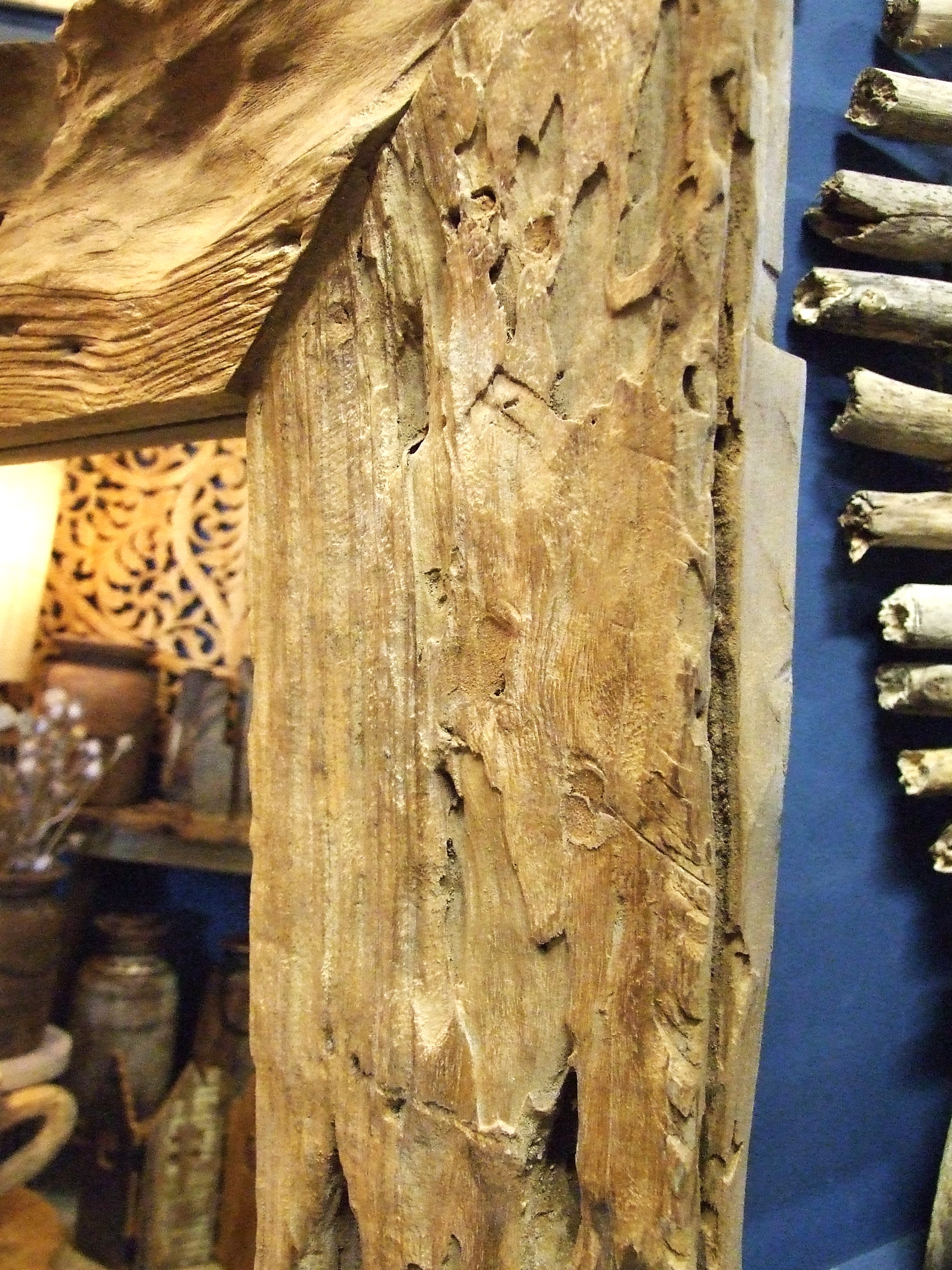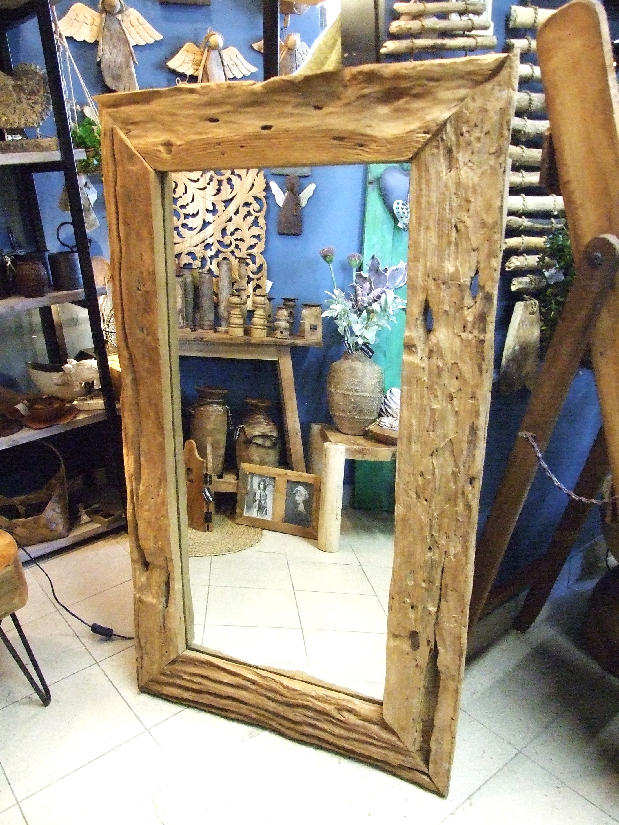 Rama ma liczne przetarcia i naturalne pęknięcia drewna, które sprawiają że jest wyjątkowy i oryginalny.