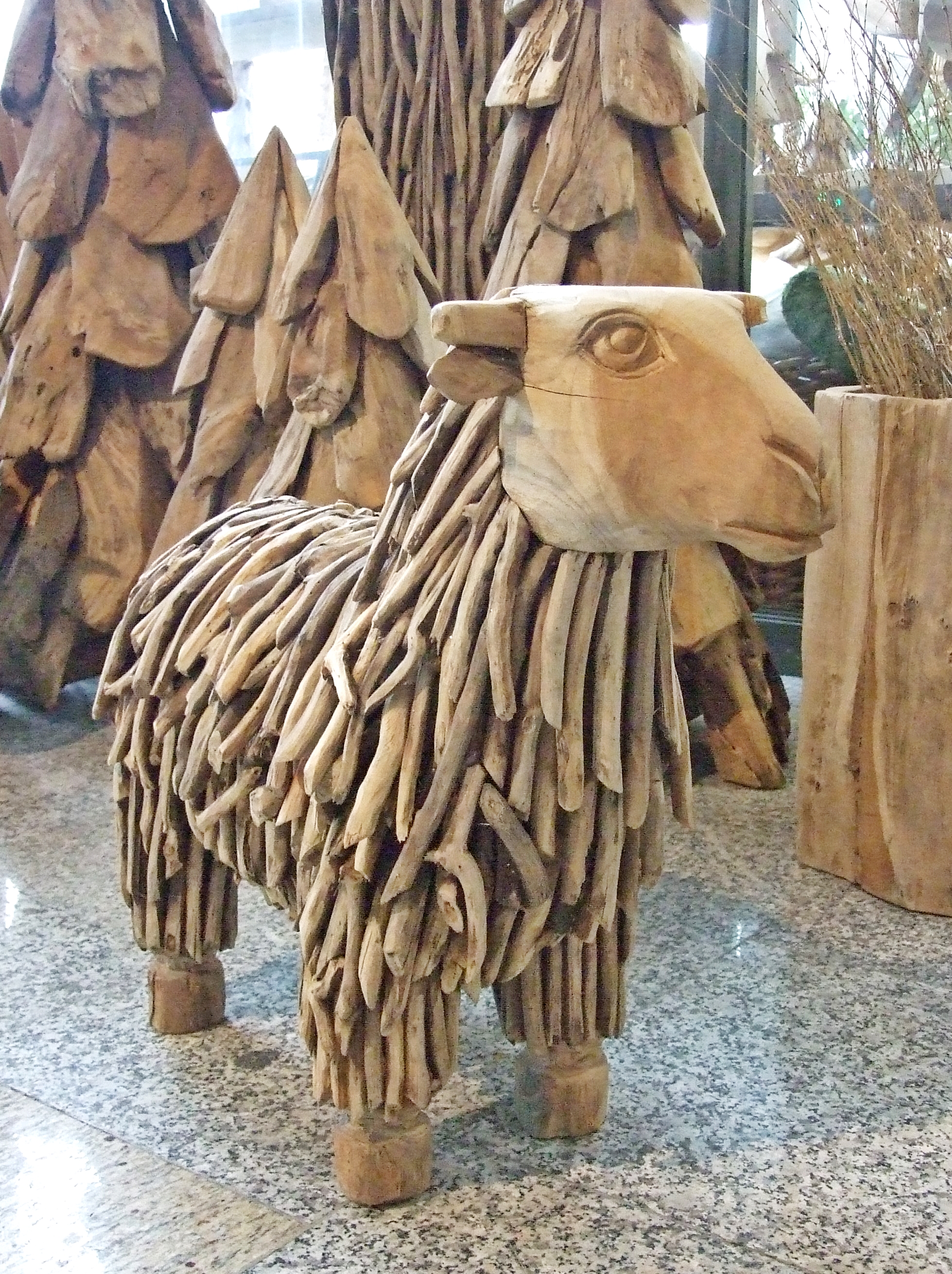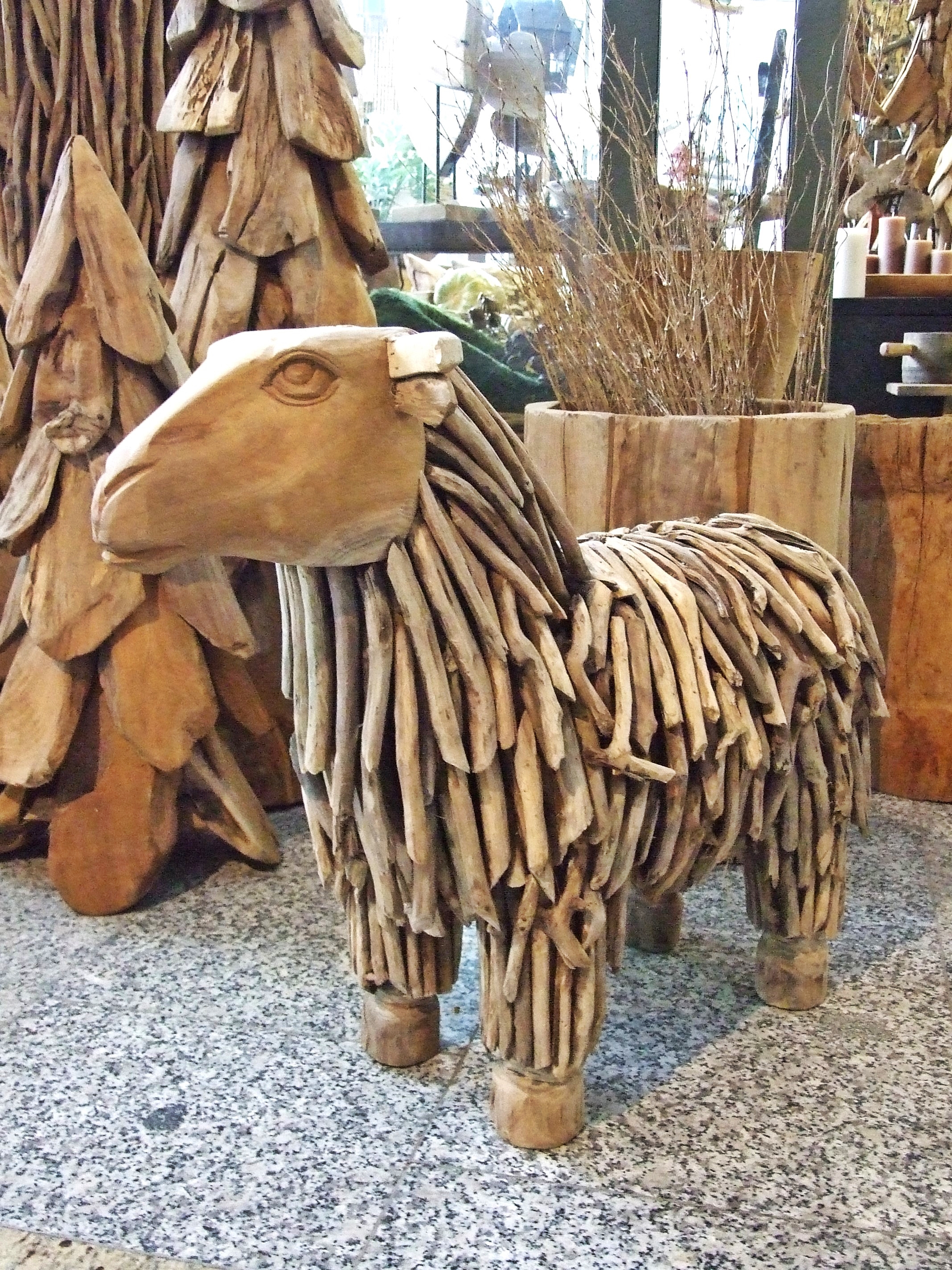 Owca rzeźbiona z pojedynczych kawałków drewna TEKOWEGO- Ręcznie wykonana
