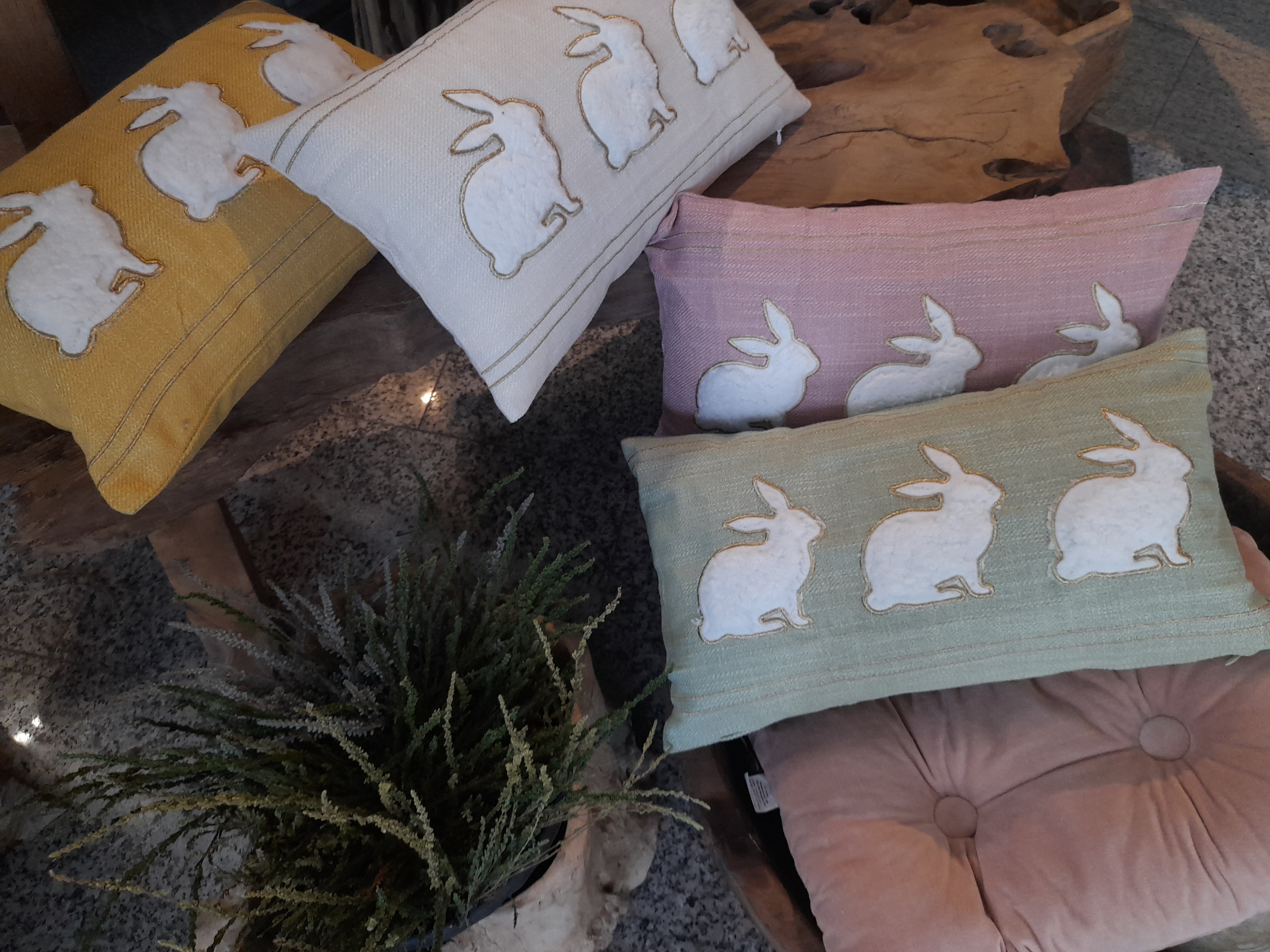 Strona główna » Tekstylia » Poduszka dekoracyjna Zajączki 48x28cm Beżowa