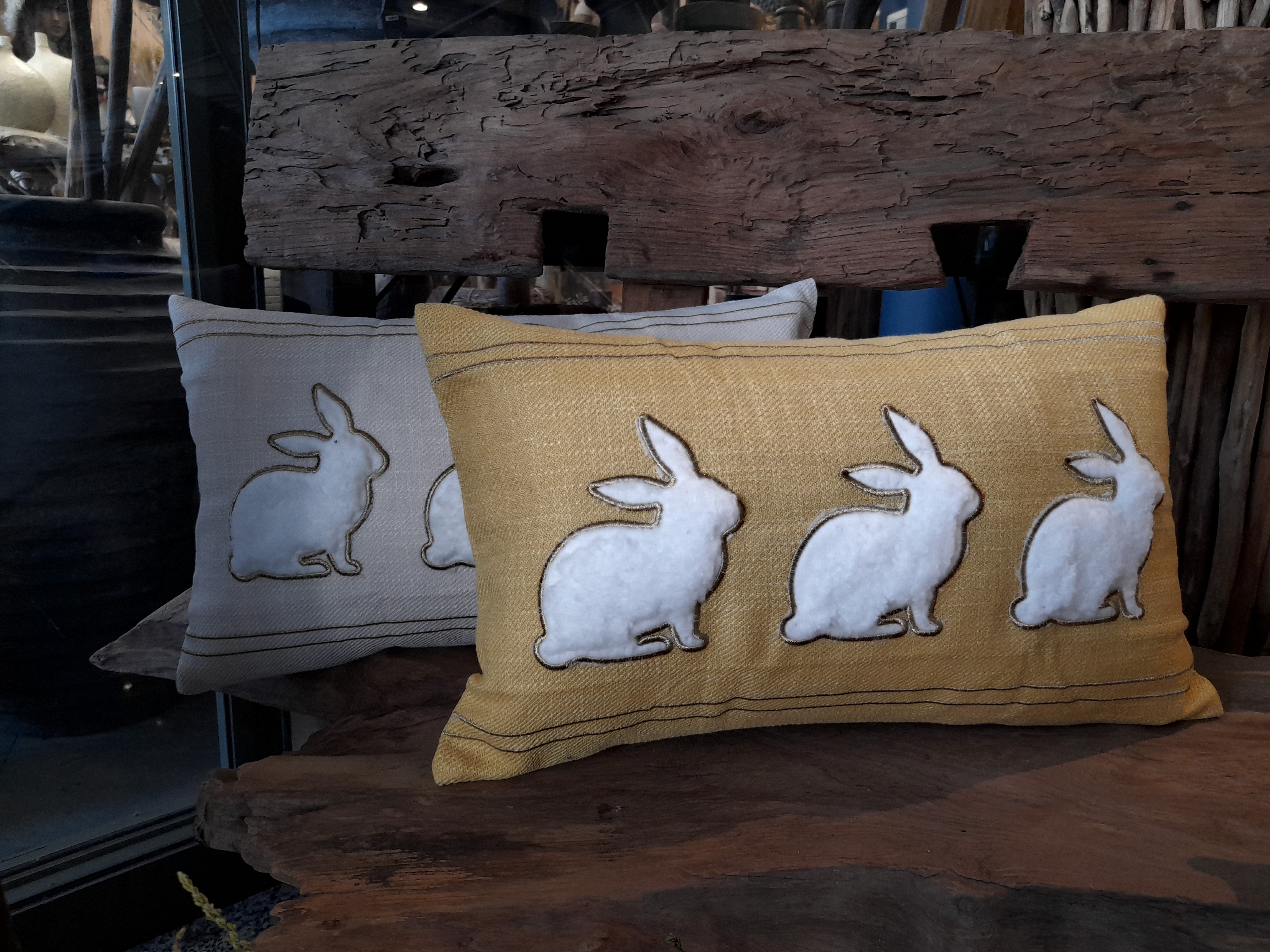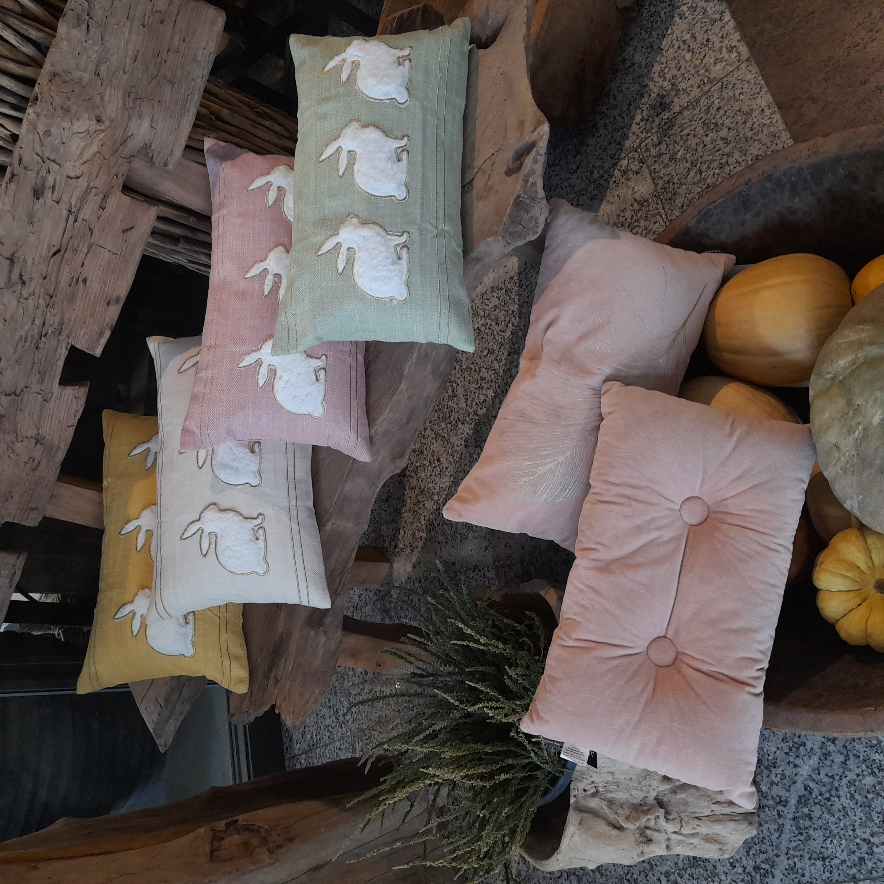 Strona główna » Tekstylia » Poduszka dekoracyjna Zajączki 48x28cm Żółta
