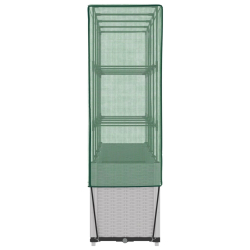 Ta podwyższona donica przykryta szklarnią zapewnia mnóstwo miejsca na rośliny oraz zawiera solidną ramę.