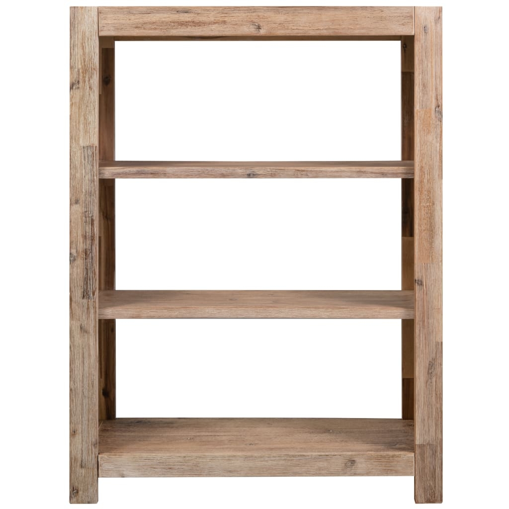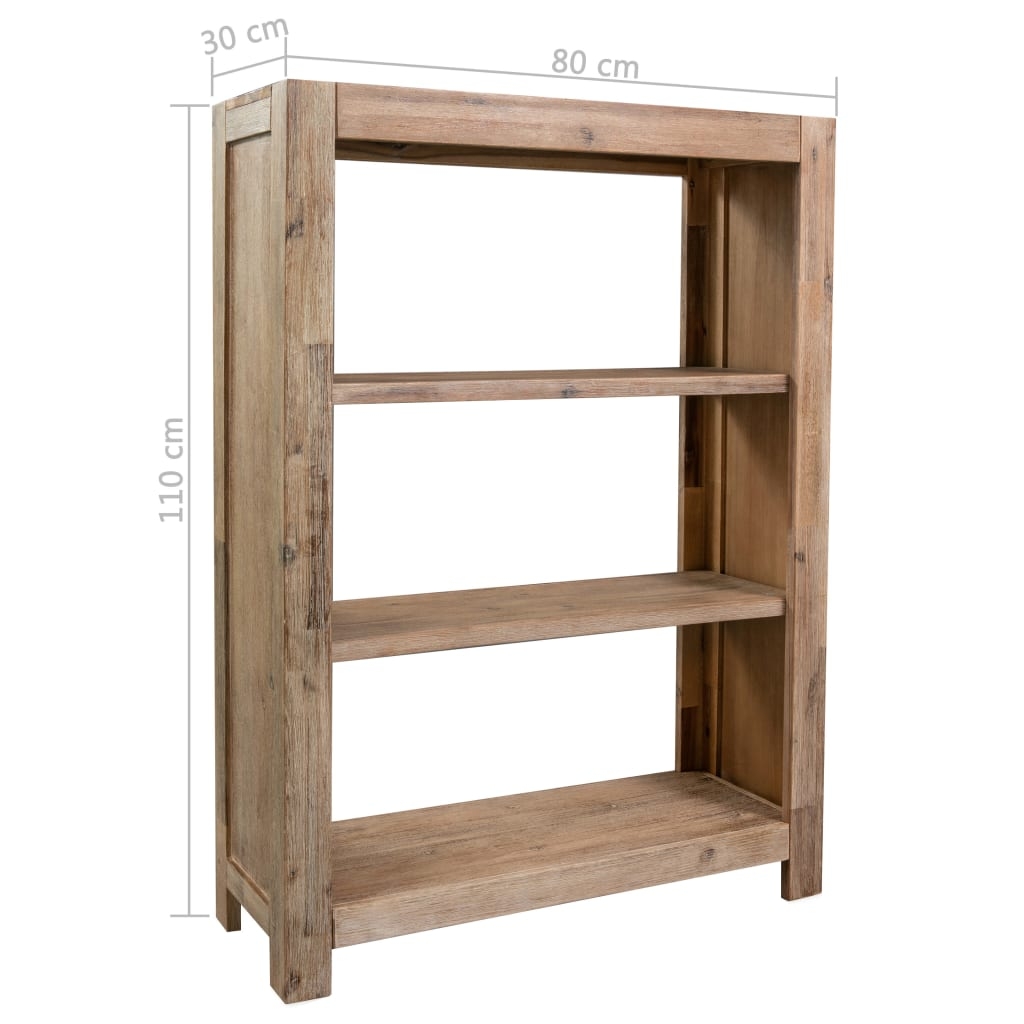 Drewnianą biblioteczkę skonstruowano z litego drewna akacjowego i MDF, co czyni ją bardzo trwałą i wytrzymałą. Szczotkowane wykończenie nadaje jej autentyczny, postarzony wygląd retro, który wprowadzi nieco tradycyjnej stylistyki do Twojego domu. Ten praktyczny regał ma 3 półki zapewniające mnóstwo miejsca do przechowywania Twojej kolekcji książek, czasopism i dokumentów w uporządkowany sposób. Dzięki prostemu, aczkolwiek ponadczasowemu wzornictwu, ta biblioteczka może być także używana do wyeksponowania bibelotów, albumów ze zdjęciami itp. Montaż jest wymagany.