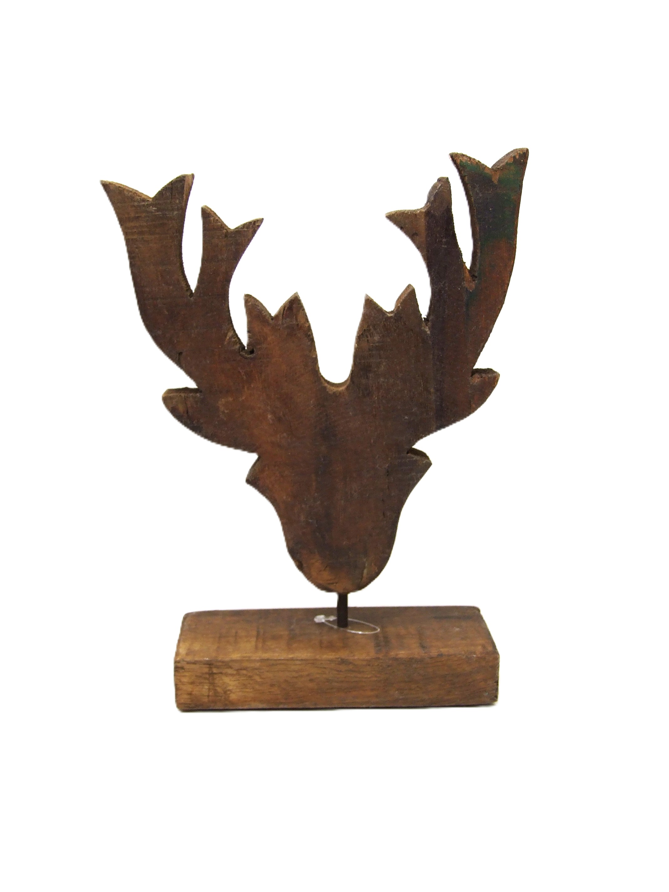 Piękna drewniana dekoracja , nie tylko na święta- poroże renifera na podstawie.
