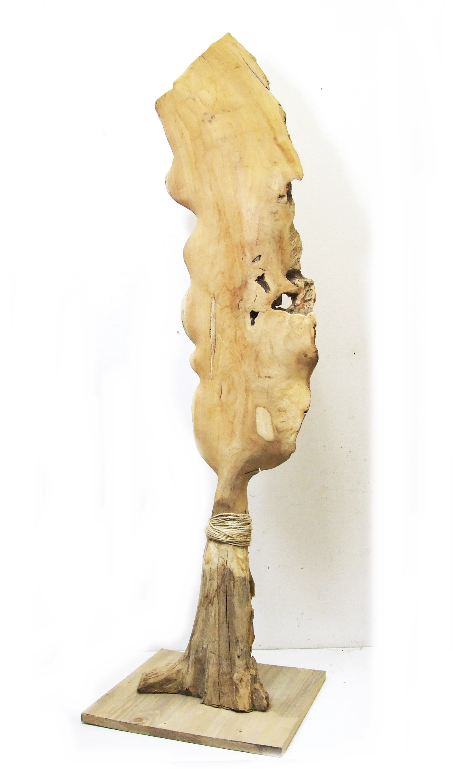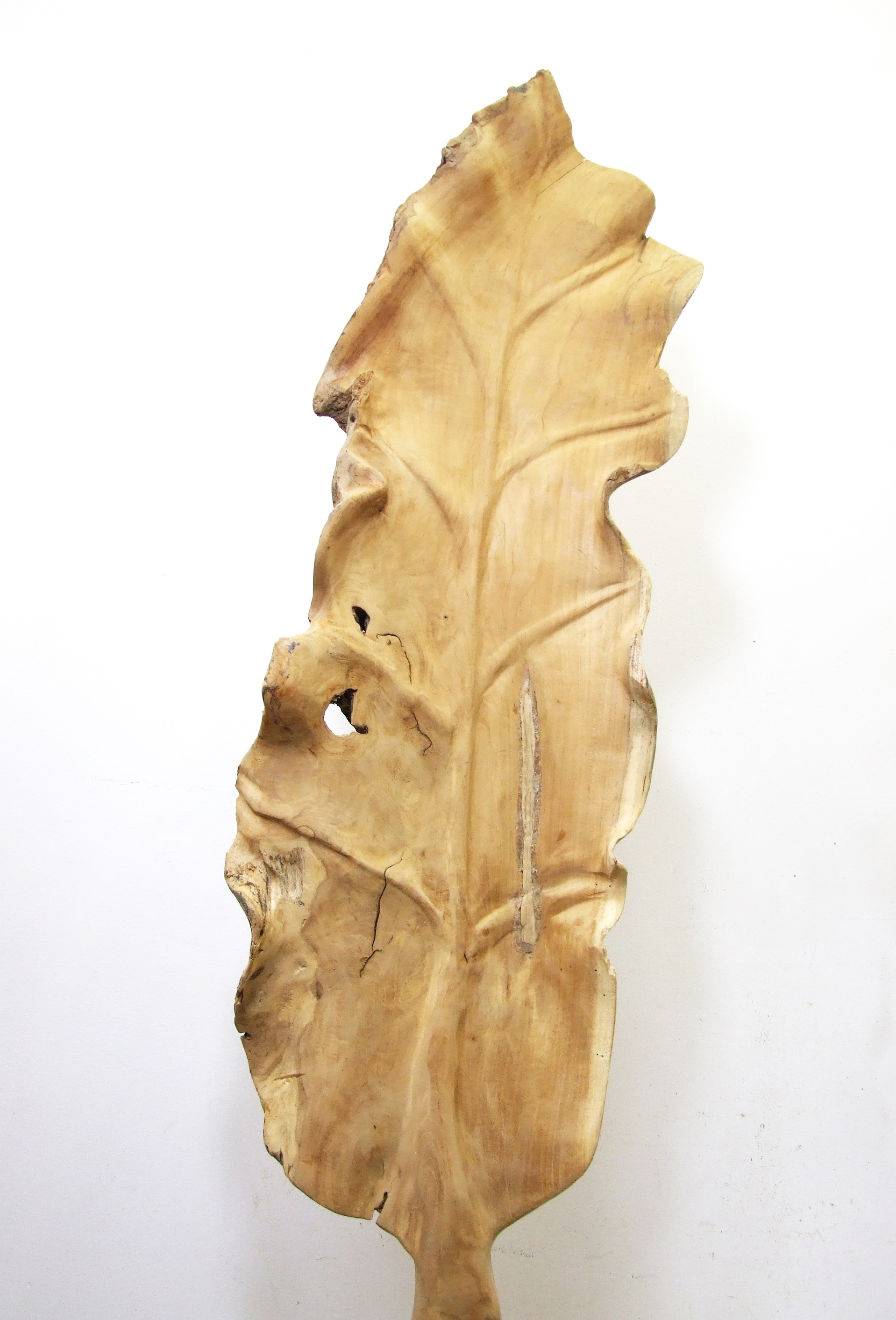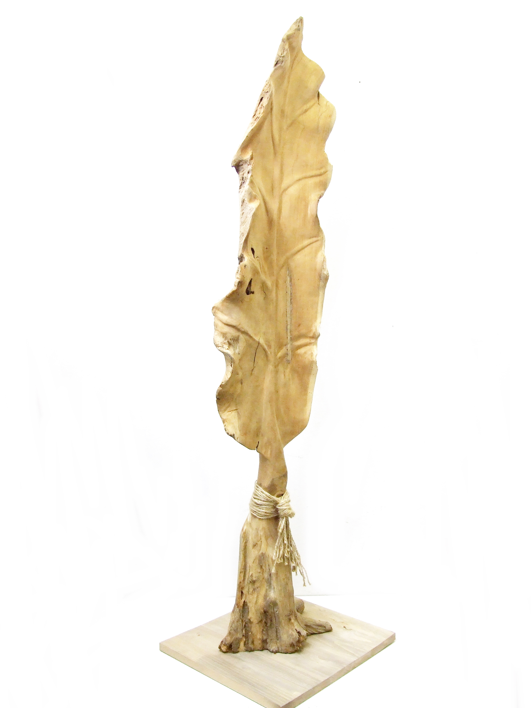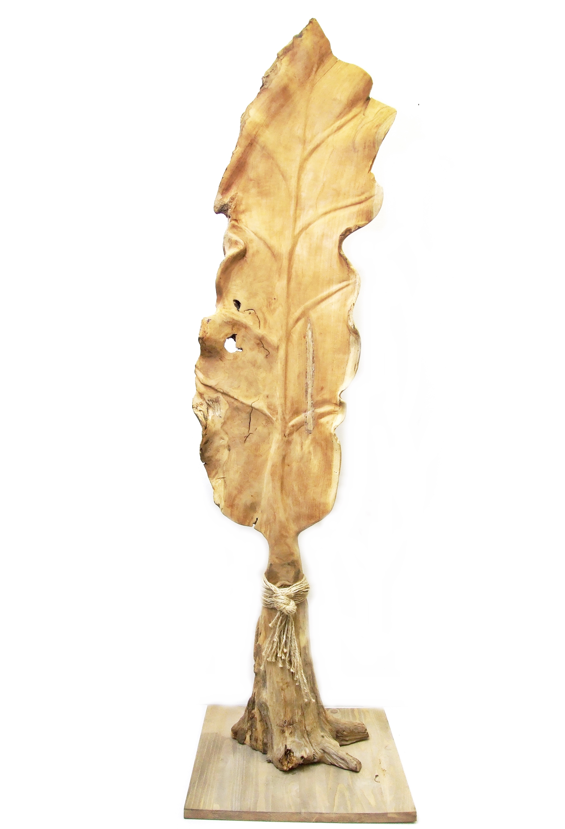 Duży spektakularny Liść wykonany z surowego drewna w postaci stojącej dekoracji.