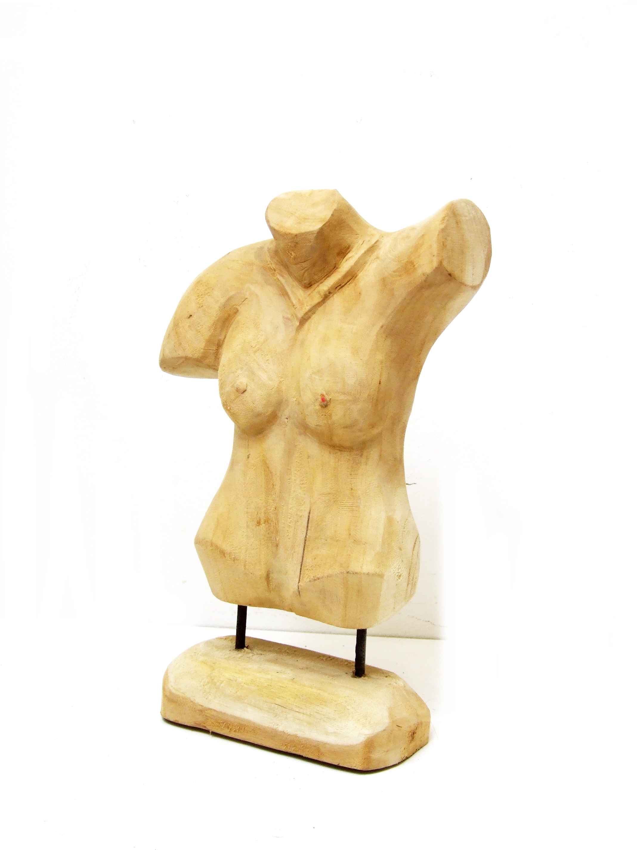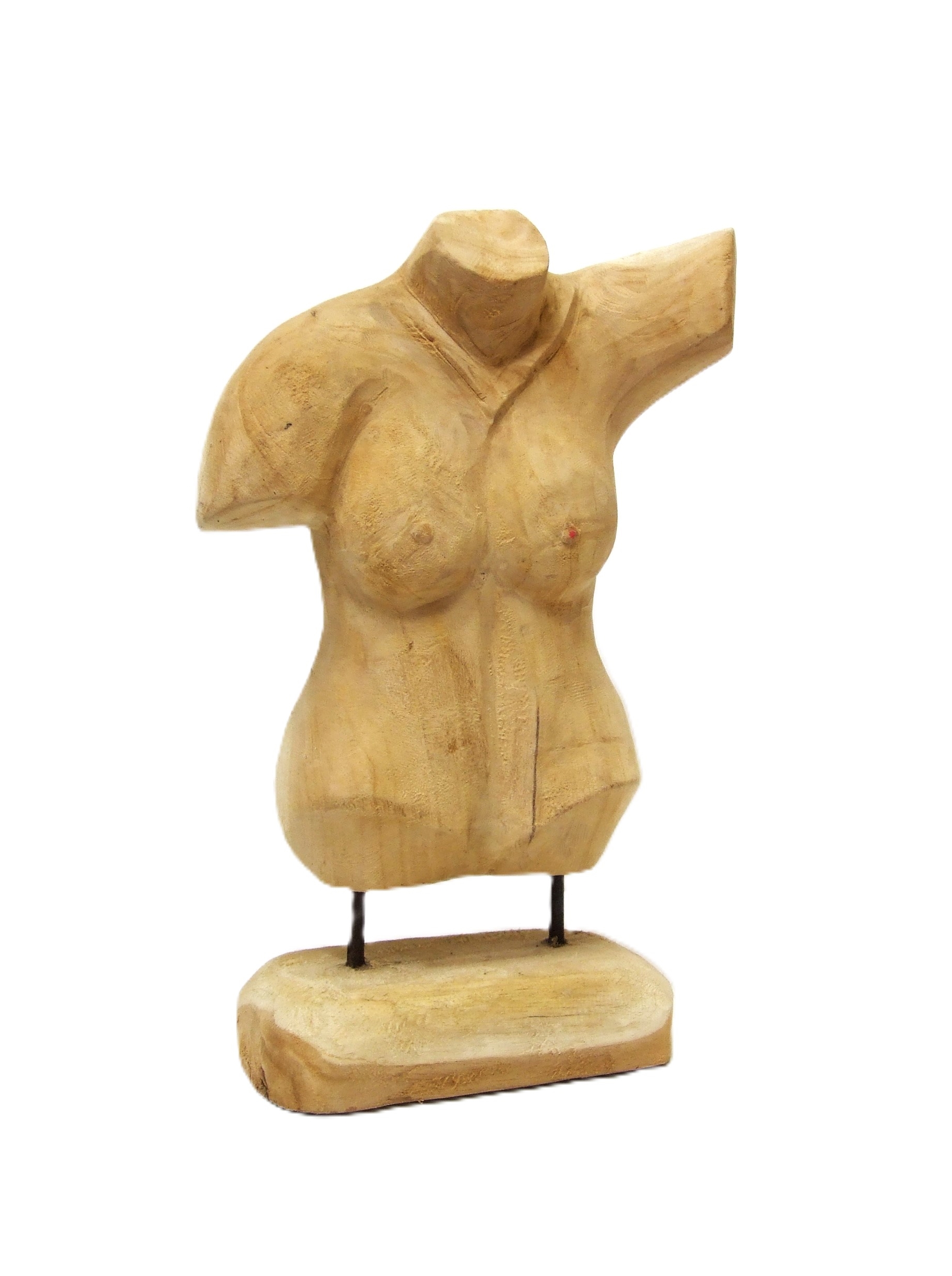 Prosta minimalistyczna rzeźba przedstawiająca rzeźbę damskie popiersie.