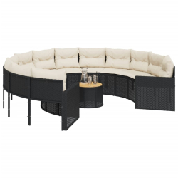 Ta sofa wypoczynkowa w formie okręgu będzie fantastycznym dodatkiem do Twojego ogrodu, tarasu lub patio, tworząc wygodną i zachęcającą przestrzeń do spotkań z rodziną i przyjaciółmi oraz relaksu na świeżym powietrzu.