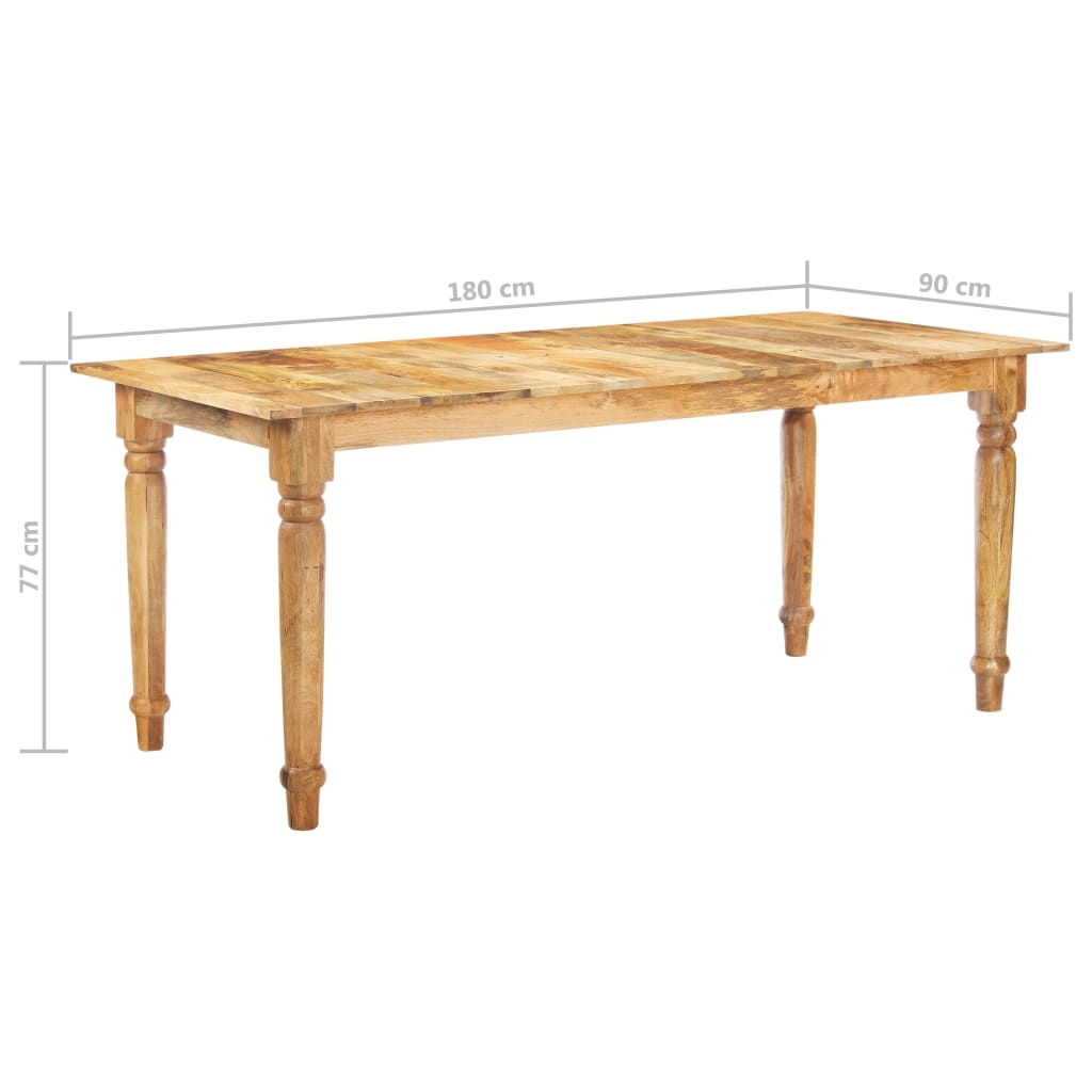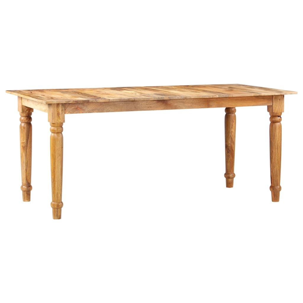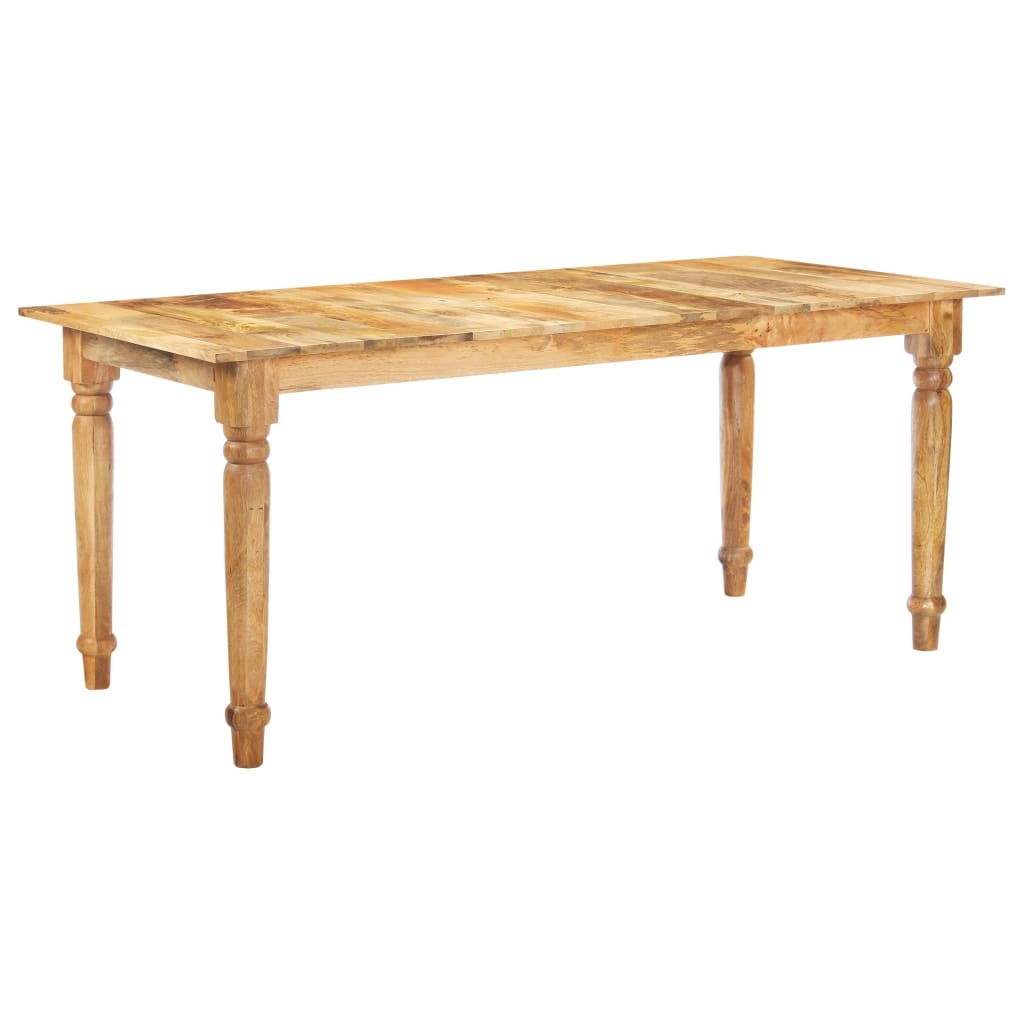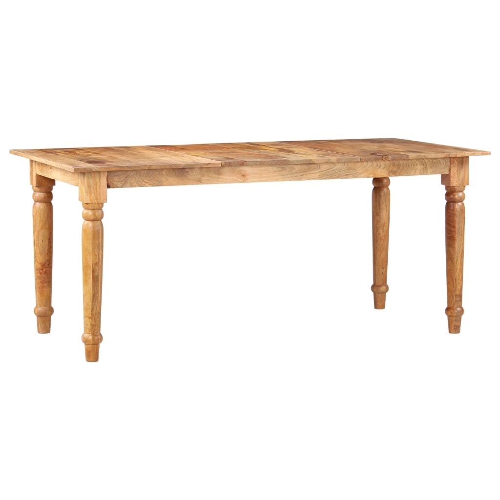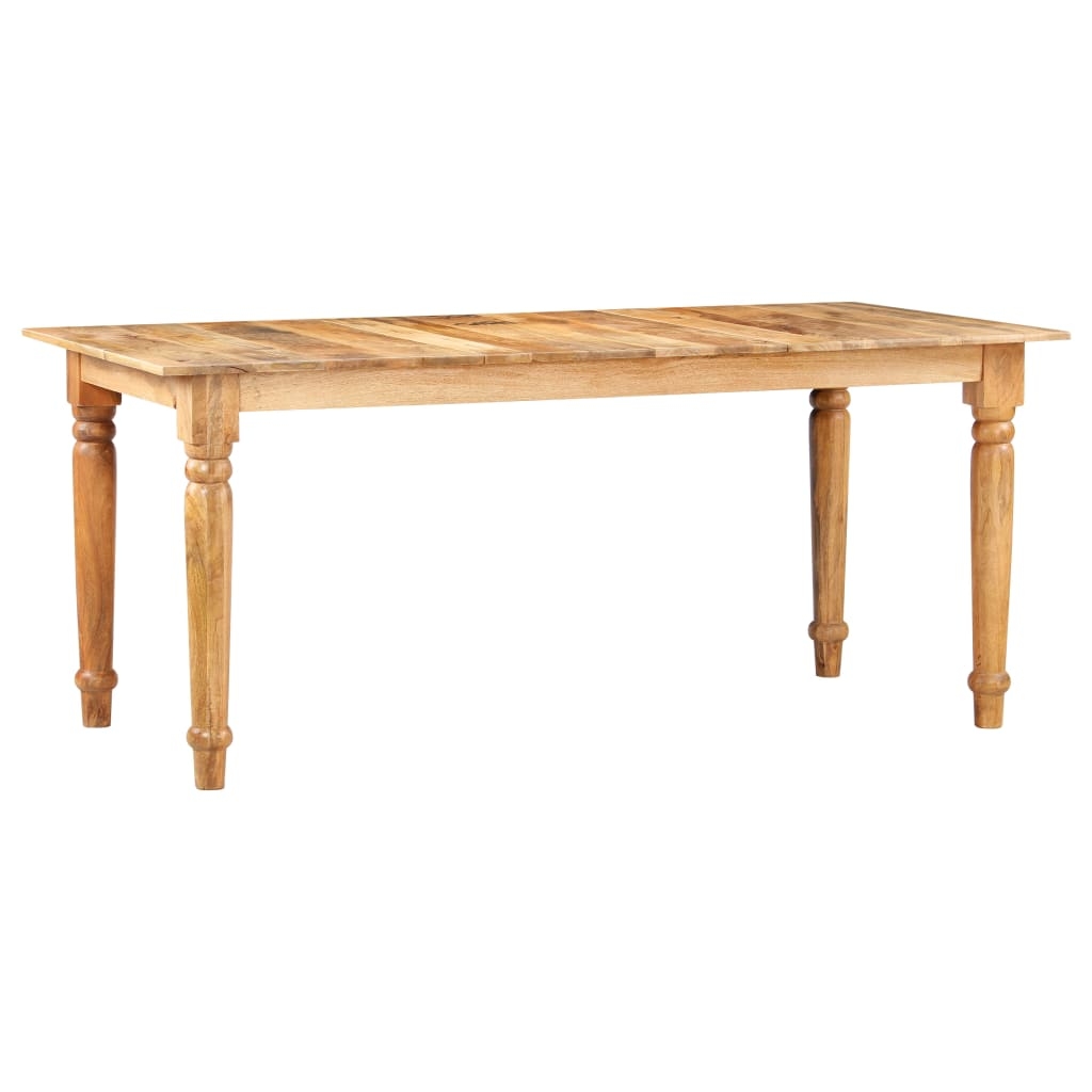 Stół jadalniany wykonany jest z litego drewna mango. Drewno mango to gęste i wytrzymałe drewno liściaste, które ma piękne brązowe lub złote smugi i kontury na swojej powierzchni. Kunszt wykonania i piękne słoje drewna sprawiają, że każdy mebel jest wyjątkowy i nieco inny od pozostałych. Dodatkowo nogi w klasycznym stylu dodają eleganckiego uroku stołowi kuchennemu, dzięki czemu będzie przyciągać wzrok w każdym pomieszczeniu. Ten produkt jest łatwy w montażu.