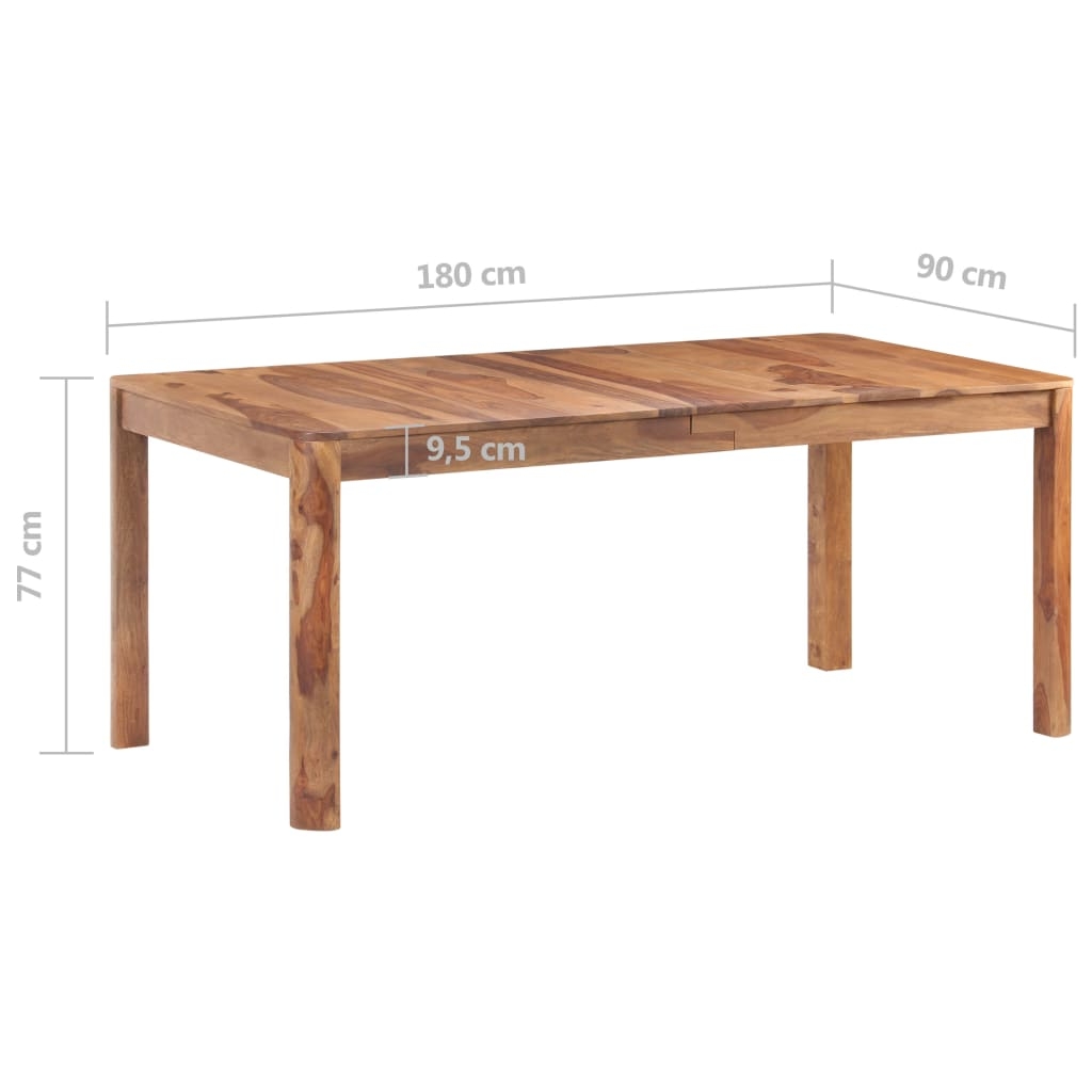 Ten stół z litego drewna sheesham jest trwały i piękny. Sheesham to tropikalne drzewo liściaste, słynące z bogatego usłojenia, znane także jako drzewo różane lub palisander. Każdy etap procesu produkcji przeprowadzany jest z największą starannością, czy to polerowanie, malowanie czy lakierowanie. Kunszt rzemieślniczy i piękne usłojenie sprawiają, że każdy mebel jest wyjątkowy i nieco inny od pozostałych. Stół ma mocny blat. Jego prosty styl sprawi, że codzienne posiłki będą wyjątkowe.