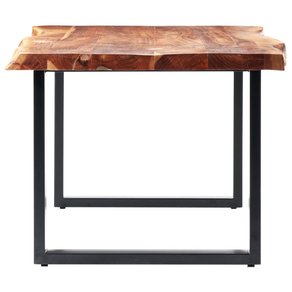 Ten stół jadalniany wykonano z litego, tropikalnego drewna akacjowego, więc jego krawędzie są prawdziwe. Naturalne krawędzie, które oddają sylwetkę drzewa, podkreślają piękno stołu. Dodatkowo stalowe nogi dodają mu industrialnego uroku i przyczyniają się do solidności konstrukcji. Każdy etap procesu produkcji jest wykonywany z najwyższą starannością, czy to polerowanie, malowanie czy lakierowanie. Stół z kłody drewna jest łatwy w montażu.