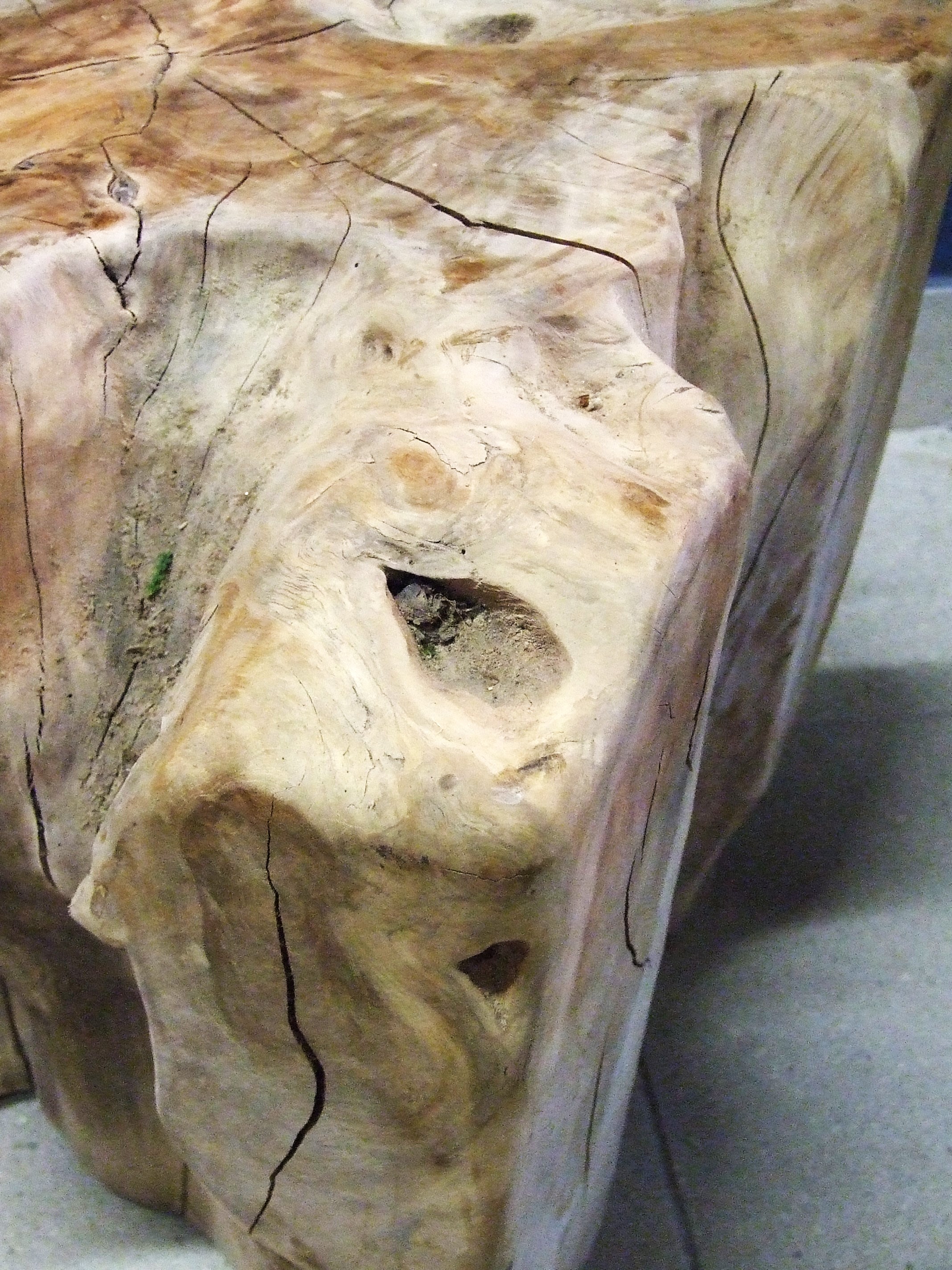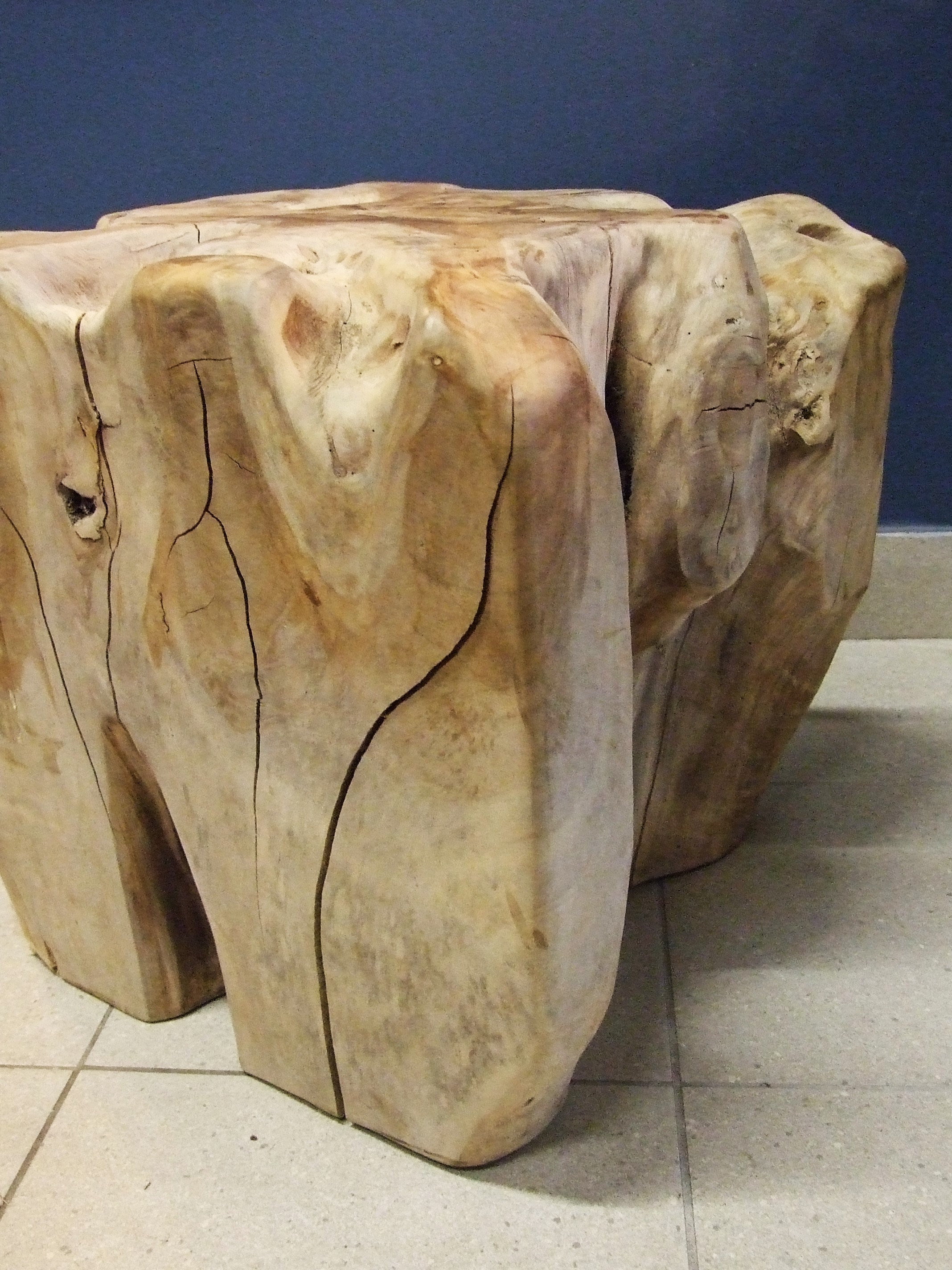 Piękny stolik kawowy wykonany z indywidualnego kawałka korzenia egzotycznego drewna tekowego.