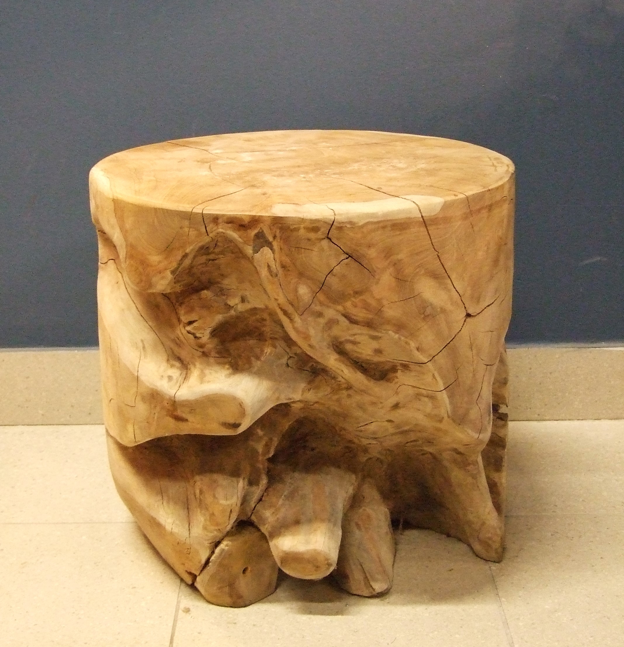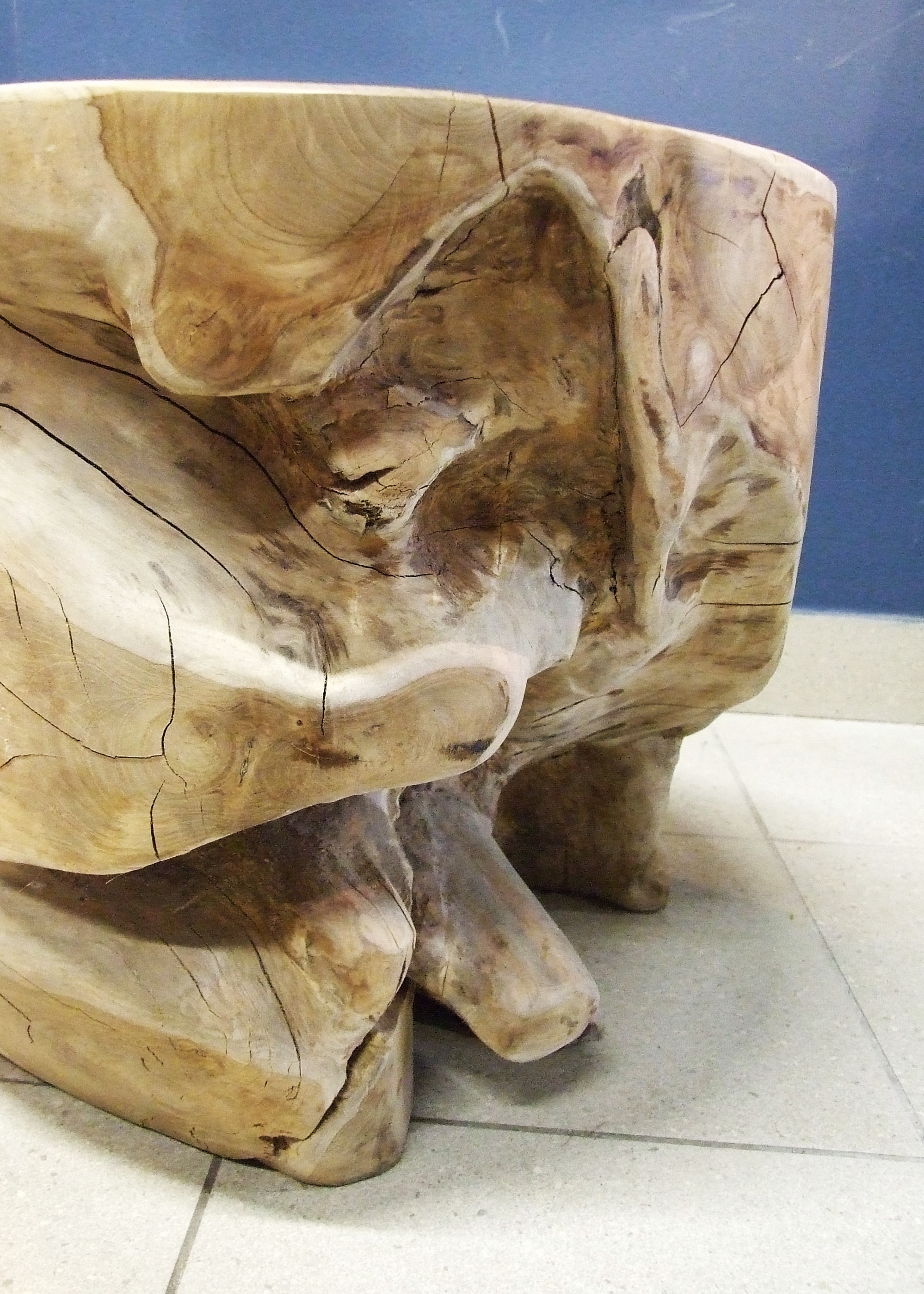 Piękny stolik kawowy wykonany z indywidualnego kawałka korzenia egzotycznego drewna tekowego.