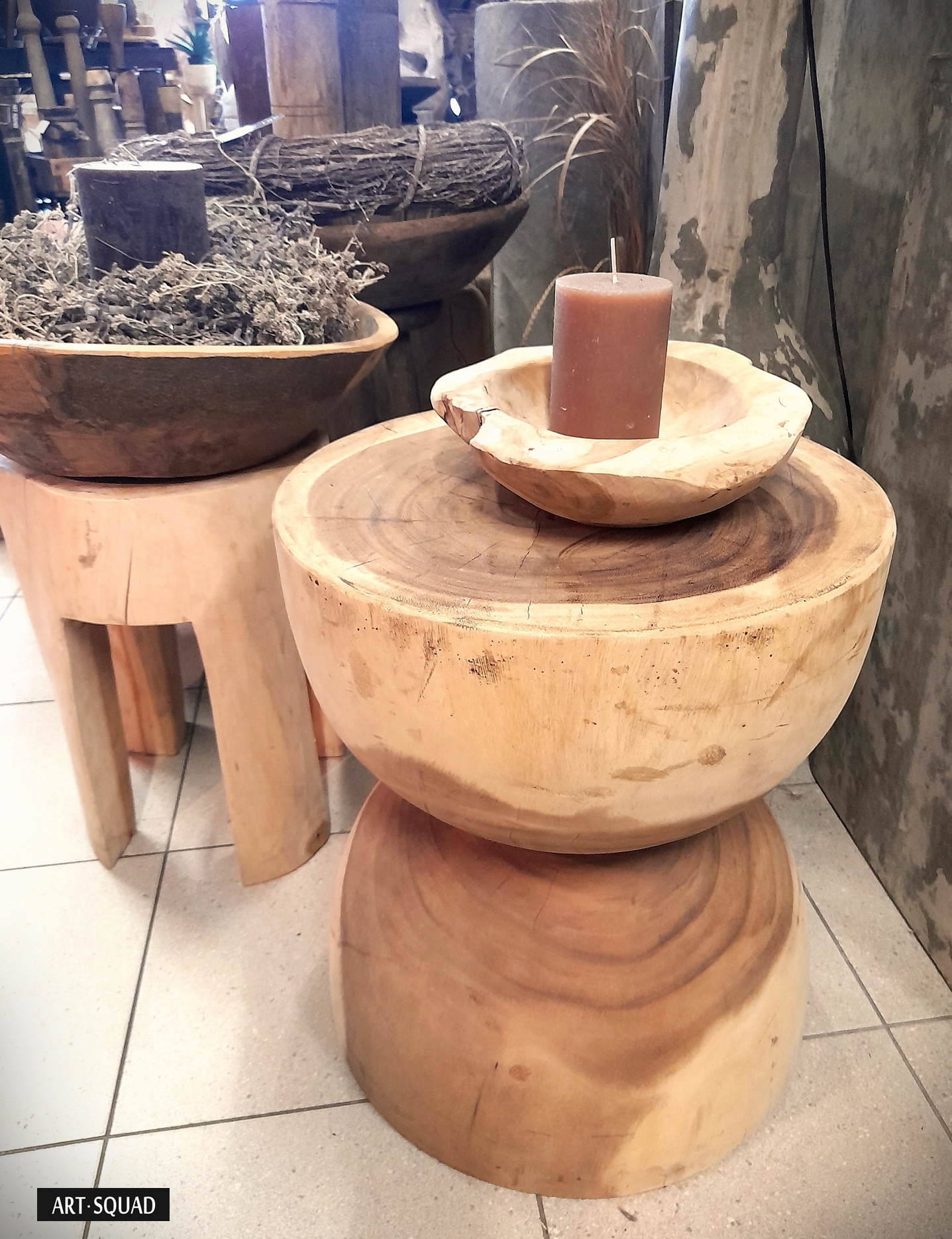 Piękny stolik lub donica w starym stylu wykonany z egzotycznego drewna tekowego.