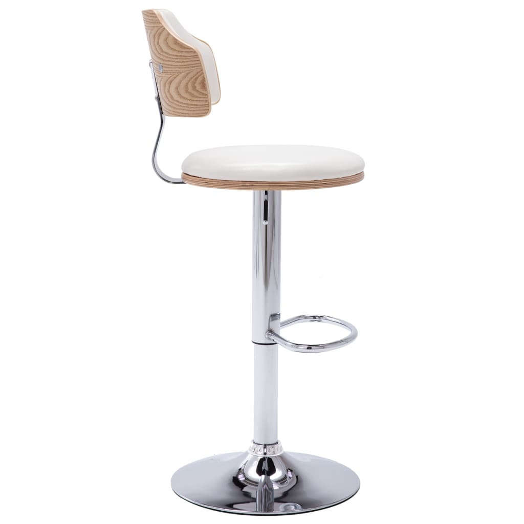 Siedzisko i oparcie tapicerowane wysokiej jakości, sztuczną skórą zapewniają komfort siedzenia. Rama z giętego drewna dodaje wyjątkowego piękna i stylu, a mocna podstawa z żelaza sprawia, że stołki są bardzo solidne i trwałe. Praktyczny podnośnik gazowy umożliwia regulację wysokości siedziska, zapewniając wygodę. Wbudowany podnóżek oferuje również dodatkowe podparcie podczas siedzenia.