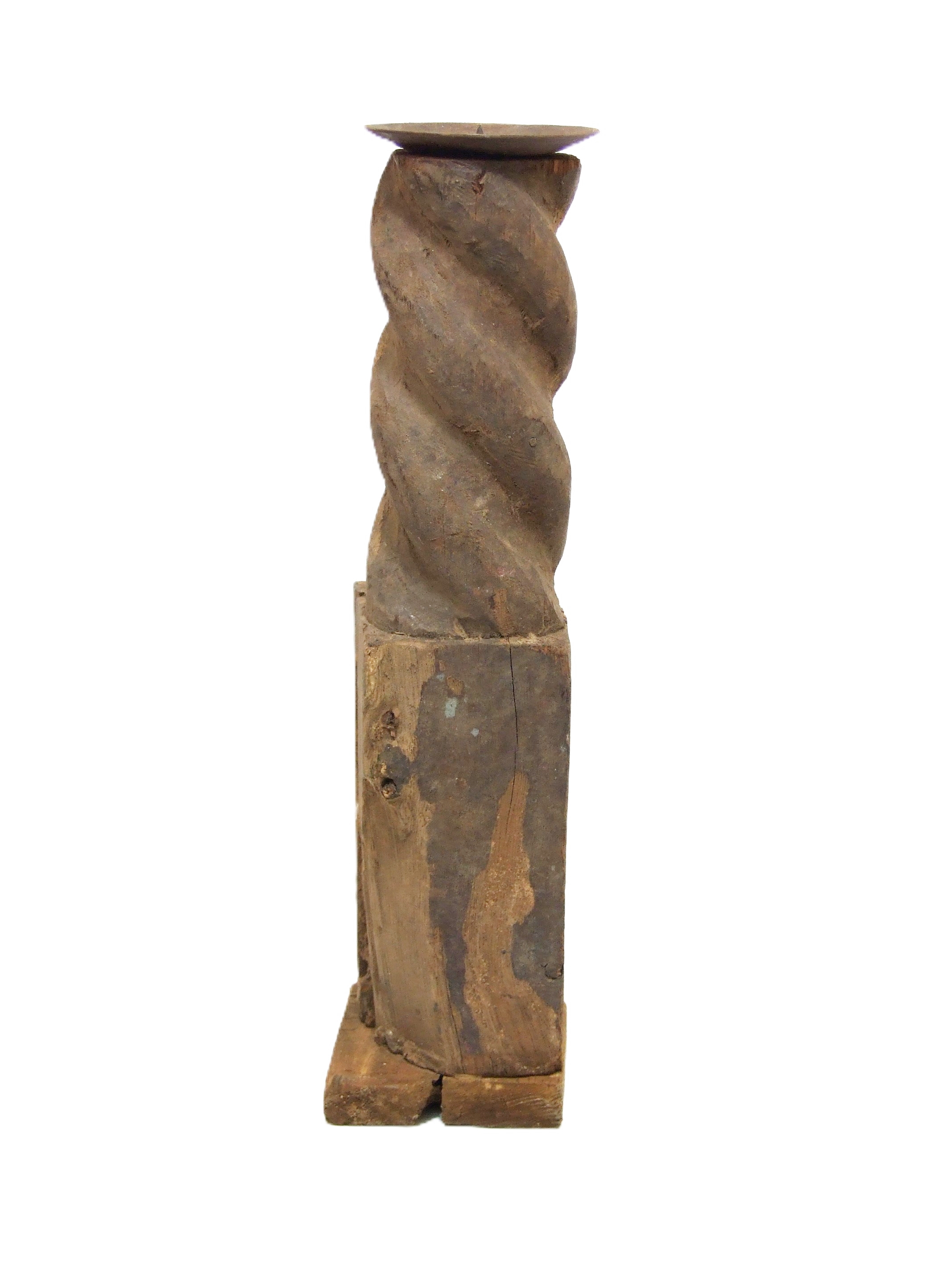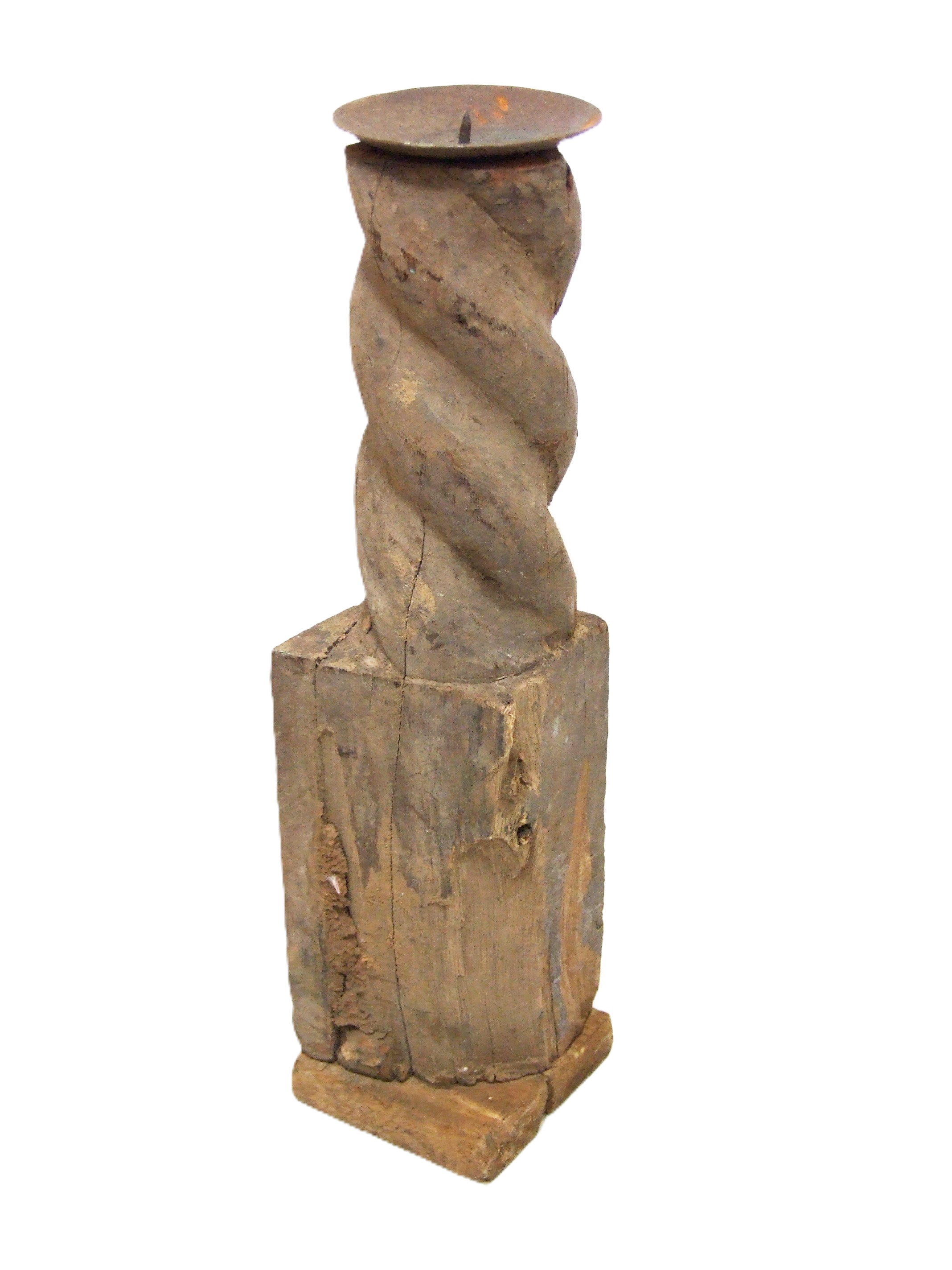 Klimatyczny Świecznik wykonany ze starego drewna z elementami starego metalu.
