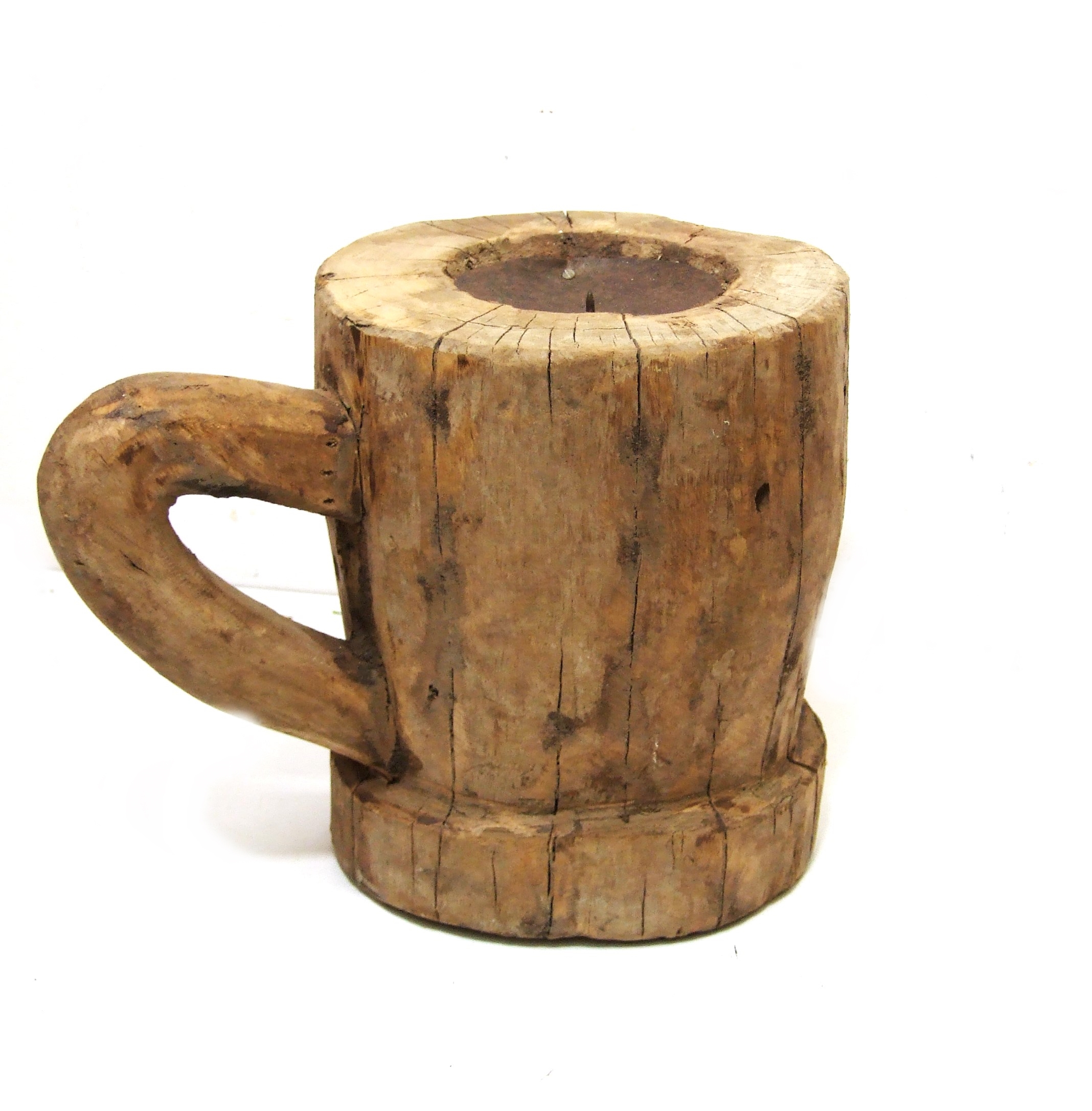 Klimatyczny Świecznik wykonany ze starego drewna z elementami starego metalu.