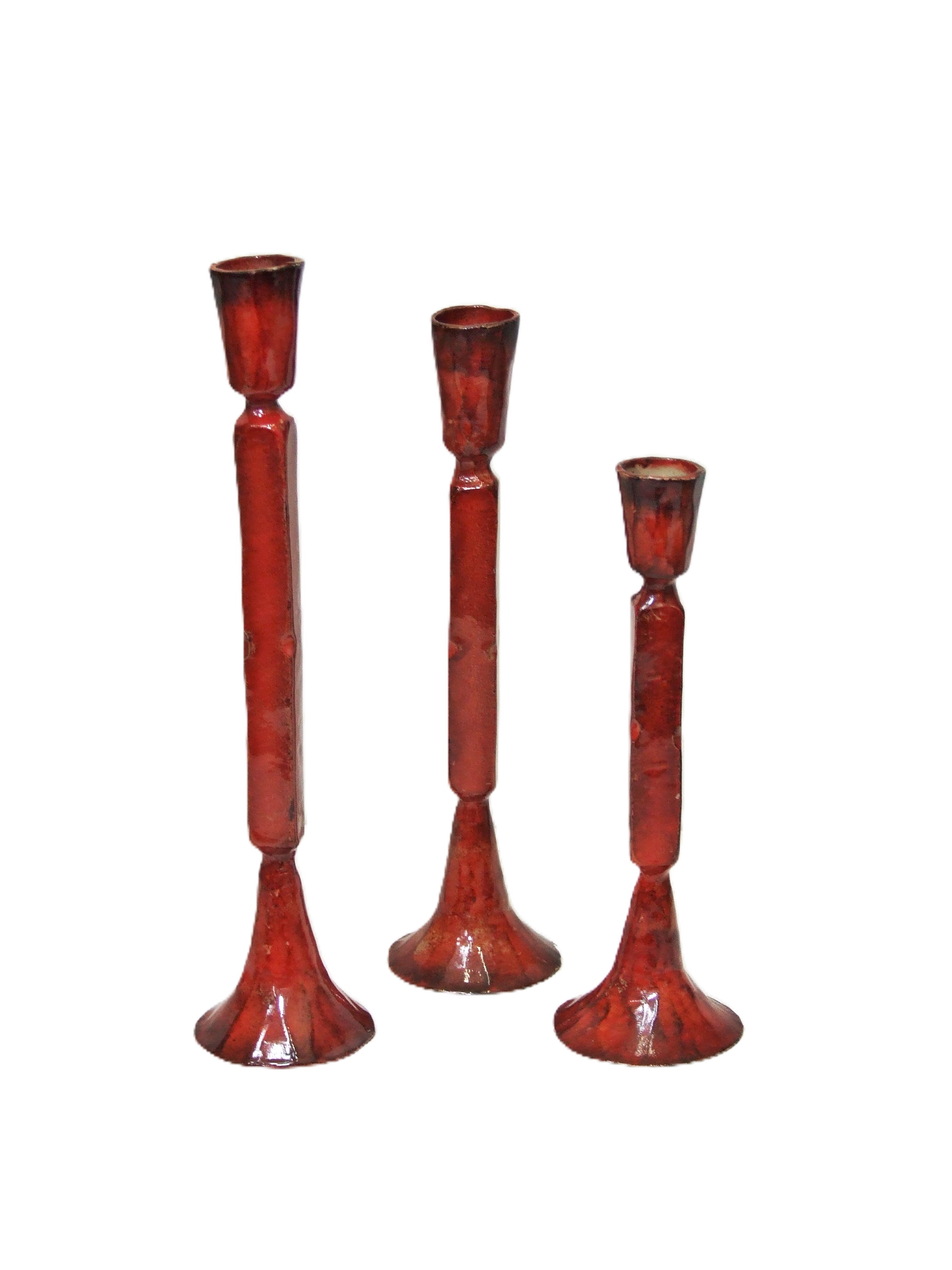 Świecznik z metalu w kolorze czerwonym