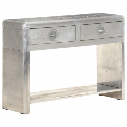 Szafka do przedpokoju jest wykonana z metalu i ozdobiona zaakcentowanymi śrubami, dzięki czemu jest solidna i stabilna. Dodatkowo mebel aviator ma dwie szuflady i jedną półkę, zapewniając miejsce do przechowywania różnych niezbędnych rzeczy w sposób uporządkowany.