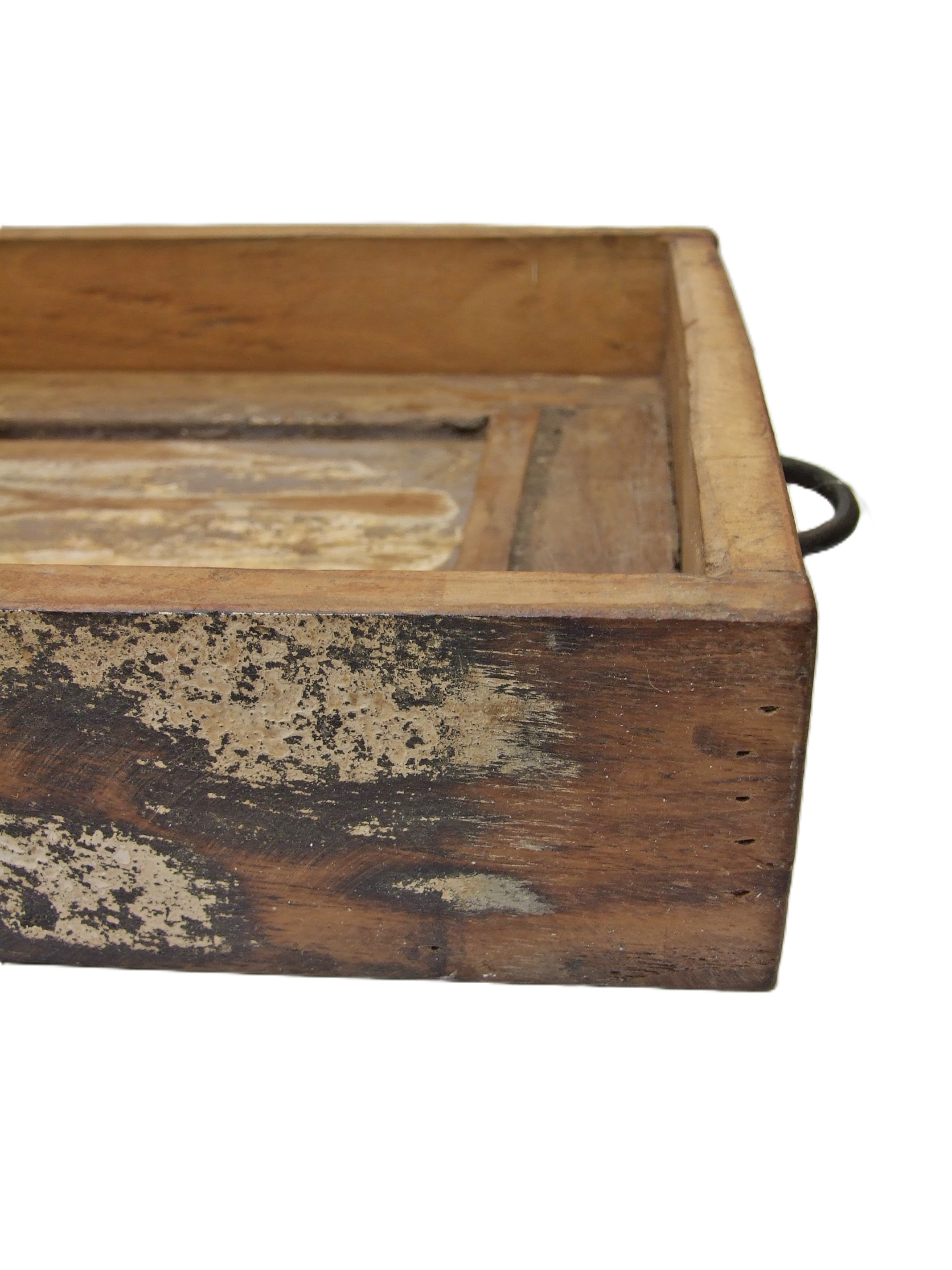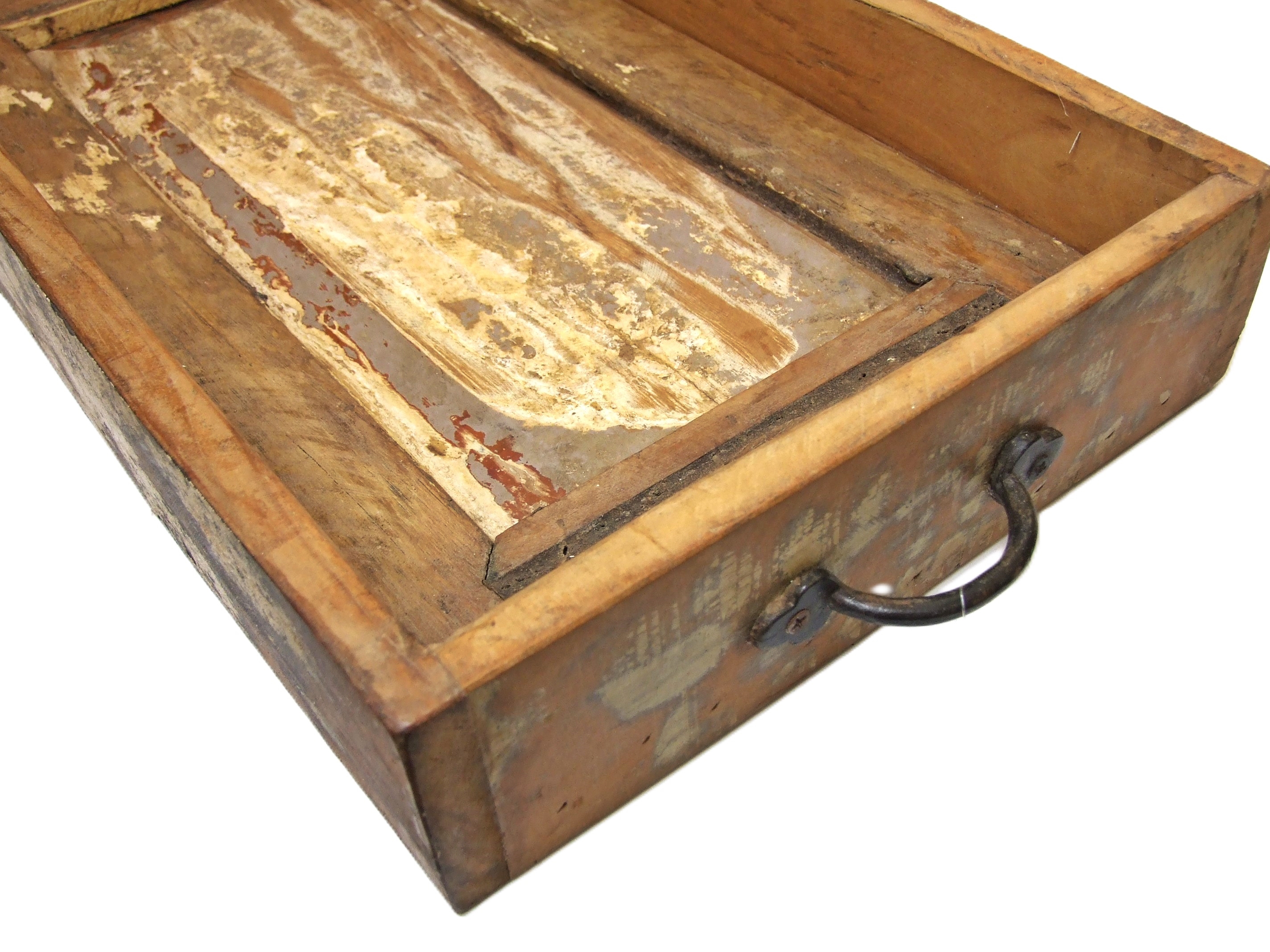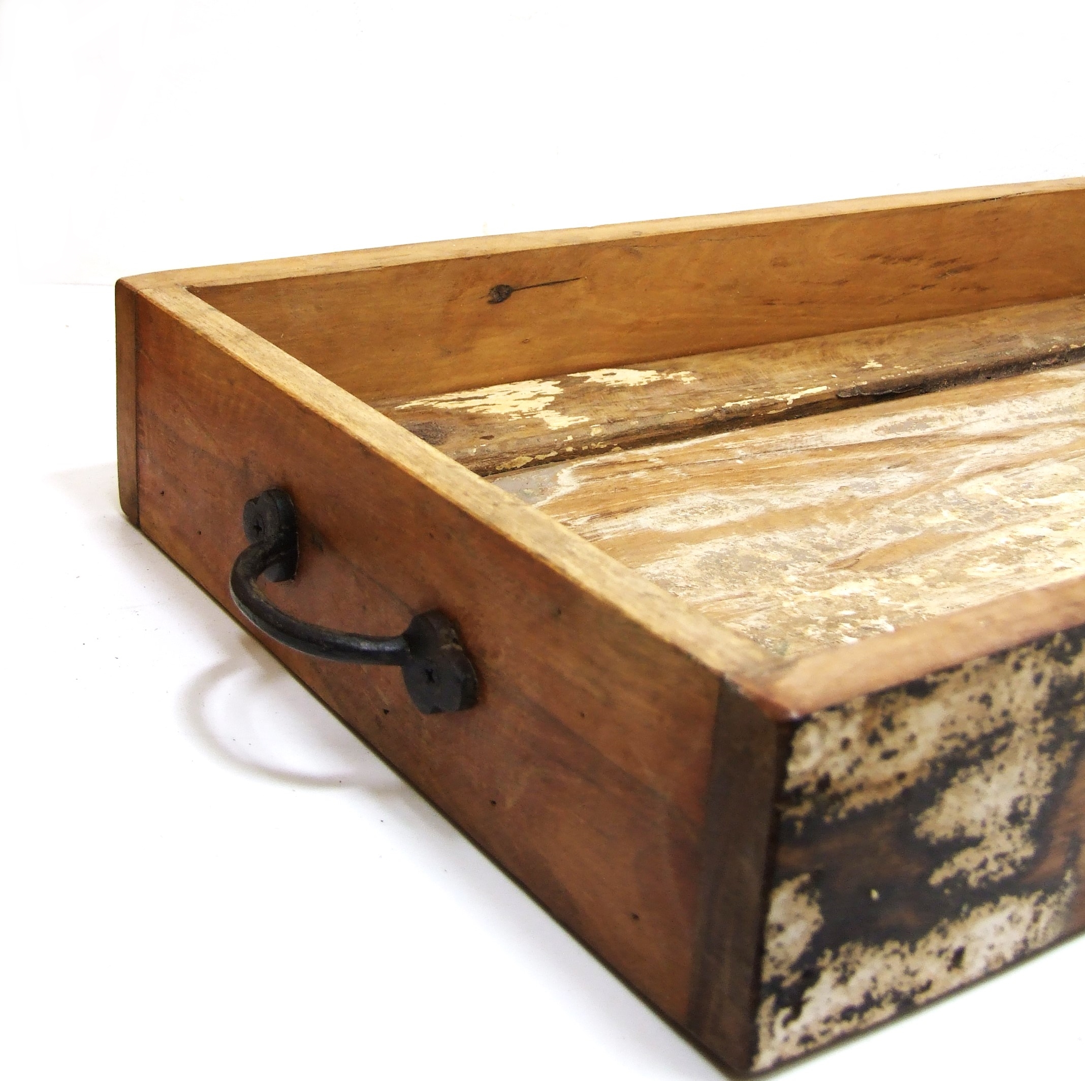 Wykończona metalowymi, postarzanymi elementami. Drewno w starej surowej wersji, zachowane elementy starej farby które nadają skrzyneczce charakter.