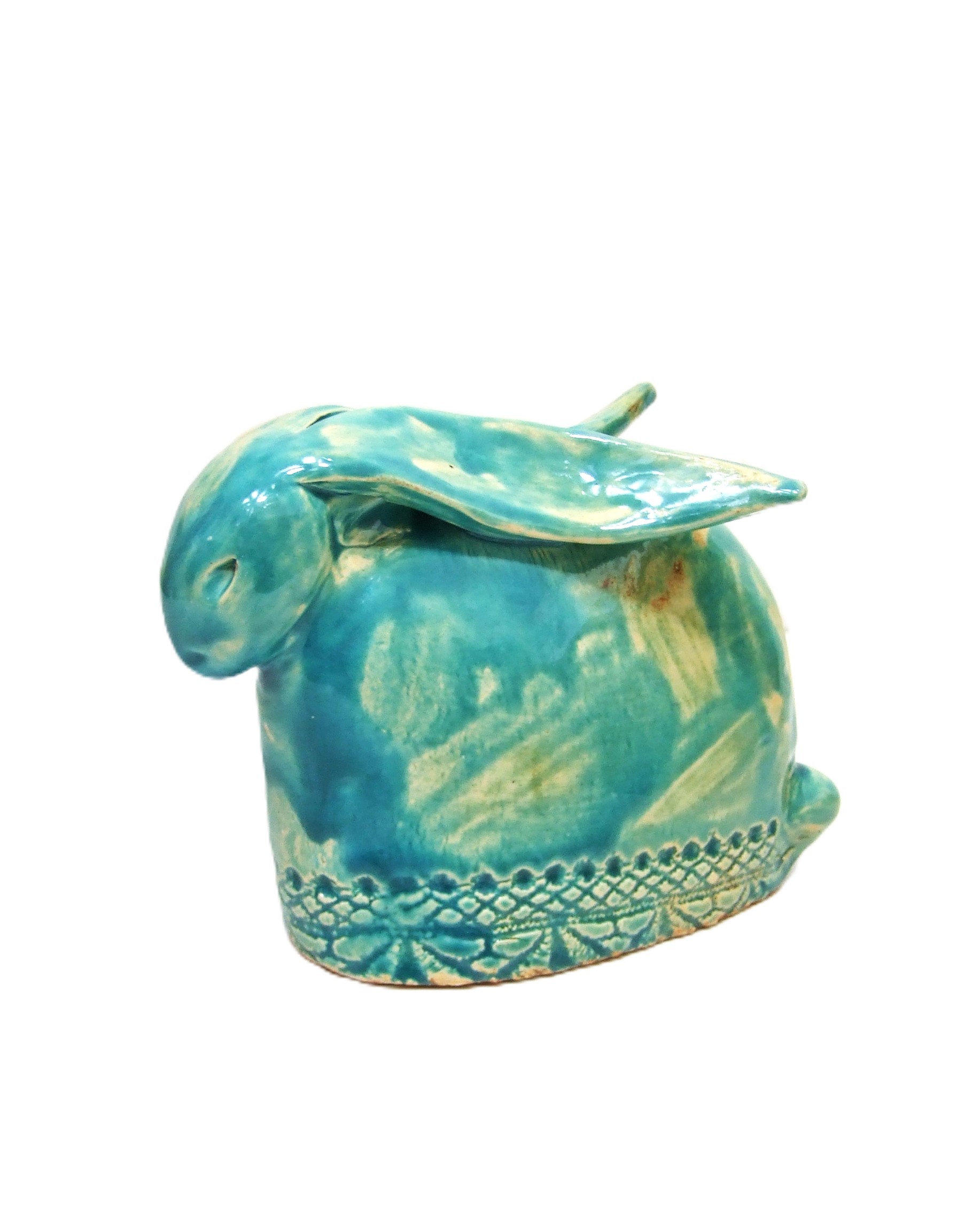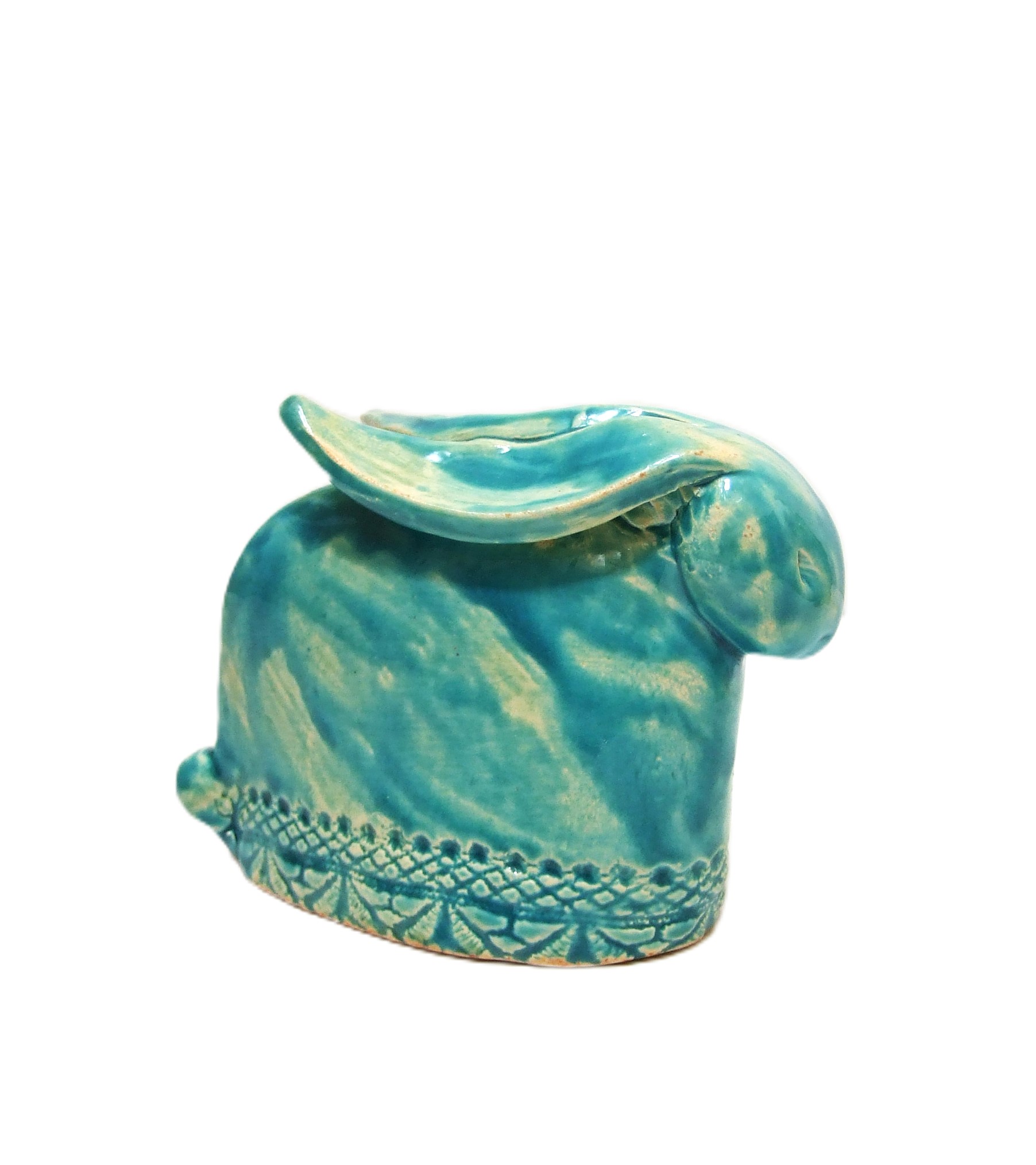 Wykonana z ceramiki z dbałością o każdy szczegół. Szkliwiona, w kolorach błękitu.