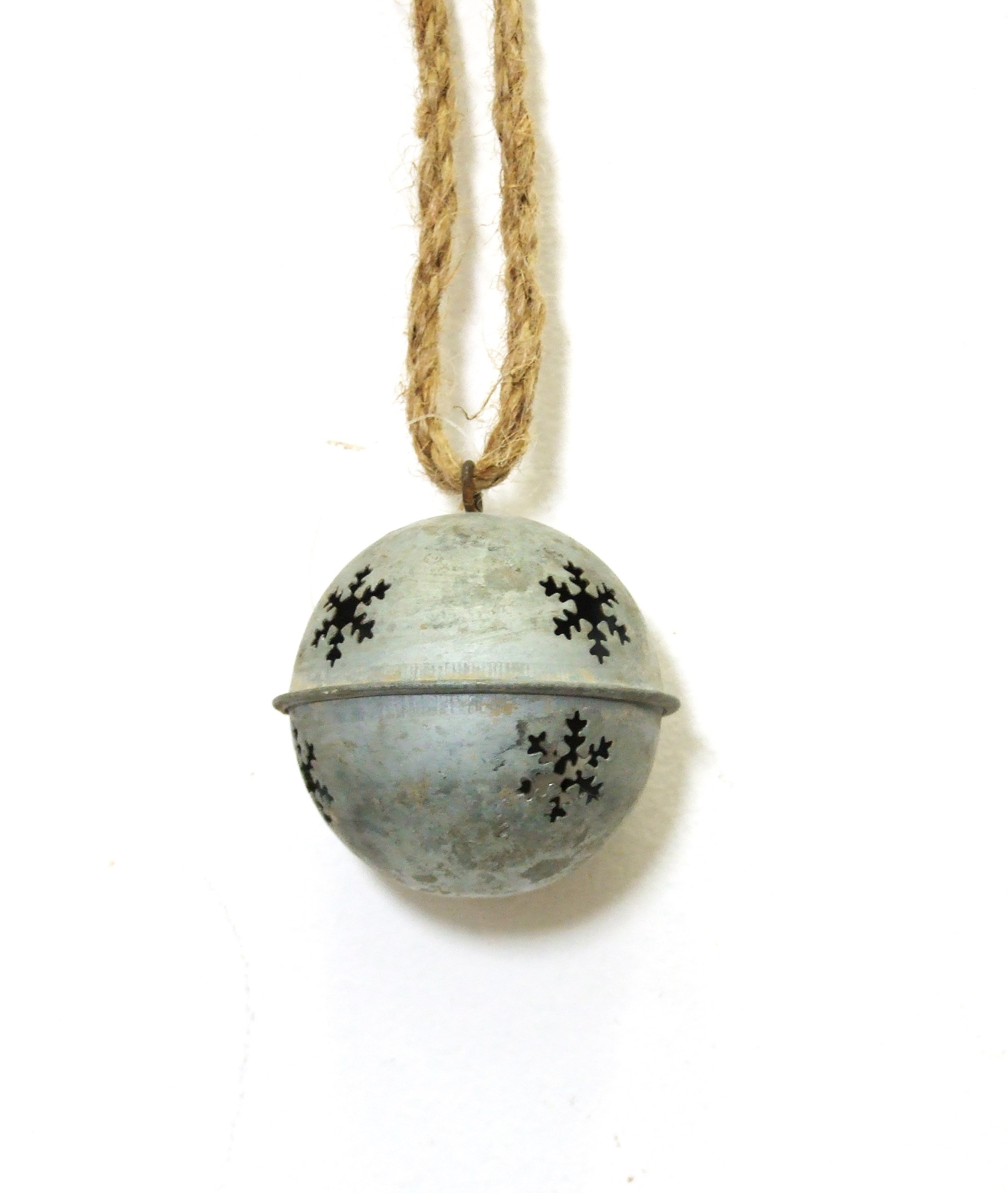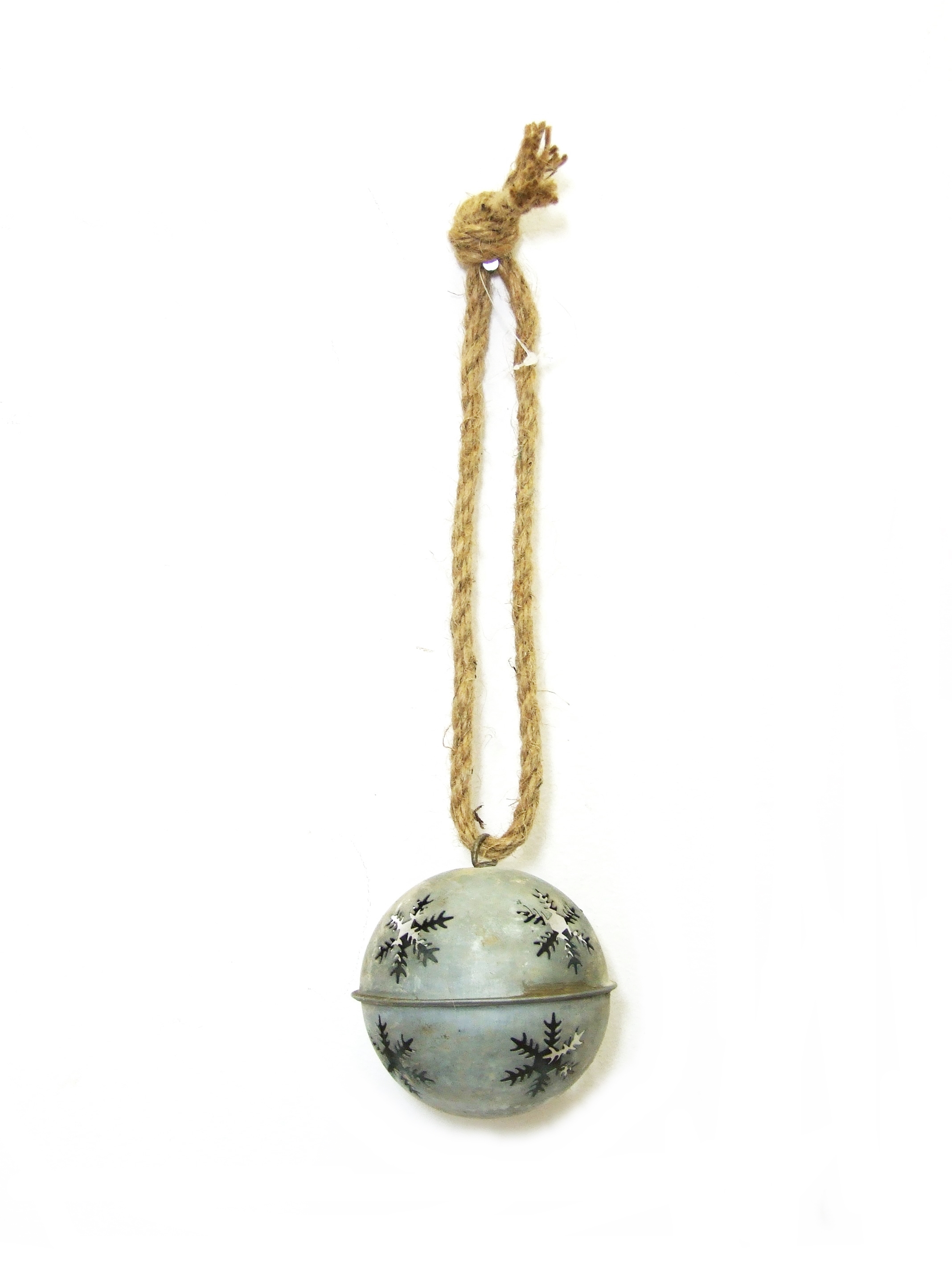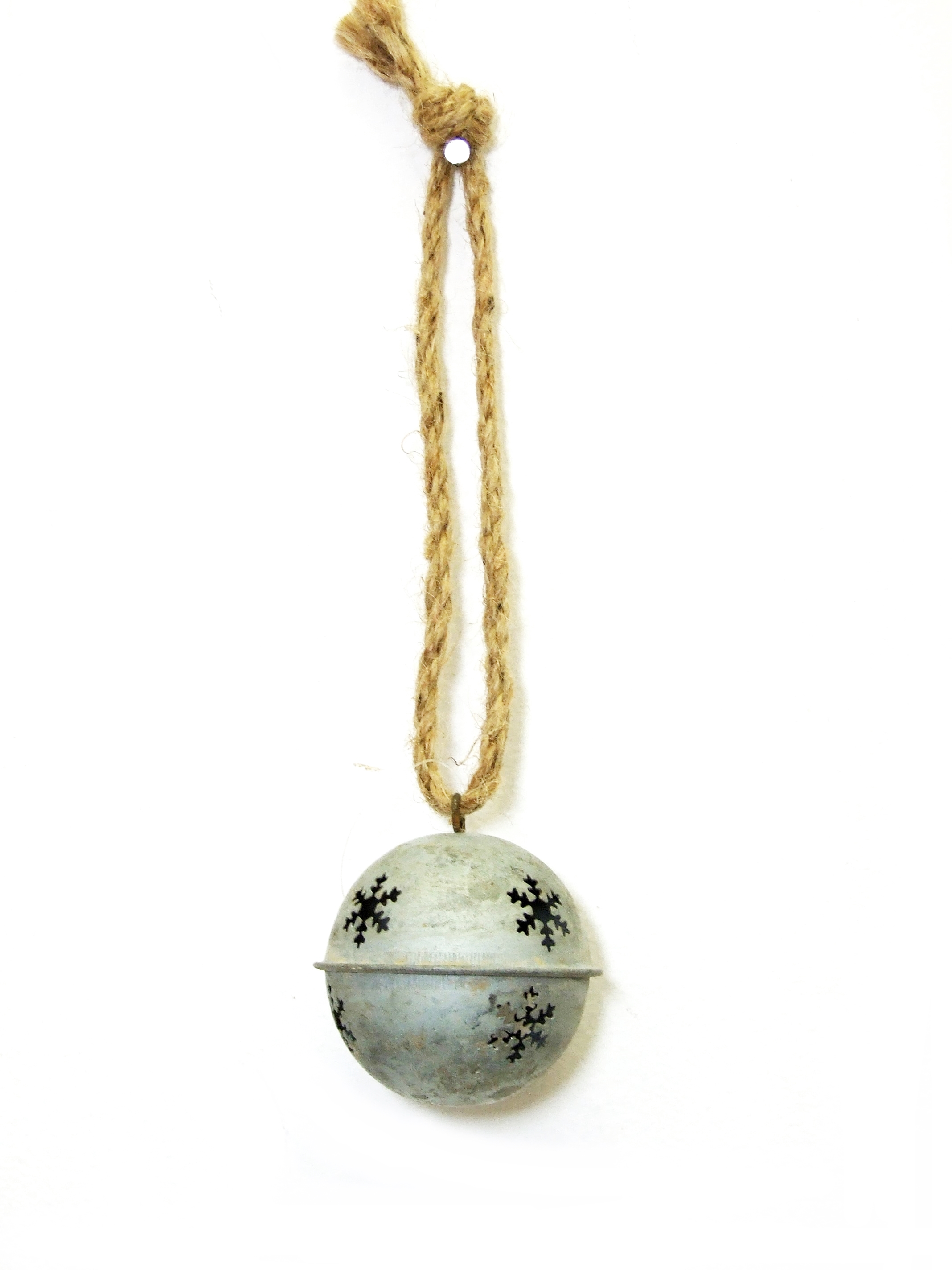 Zawieszka Bombka w wersji rustykalnej. Metalowa kula z motywem śnieżynki w środku posiada metalową kuleczkę- który sprawi ze bombka może być także dzwonkiem!