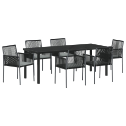 Ten zestaw nowoczesnych krzeseł ogrodowych jest zaprojektowany z myślą o estetyce, wygodzie i trwałości. Są idealne do relaksu na świeżym powietrzu lub na spotkania. Klasyczne czarne wykończenie z polirattanu pasuje do każdego ogrodu czy tarasu, a poduszki dodają komfortu.